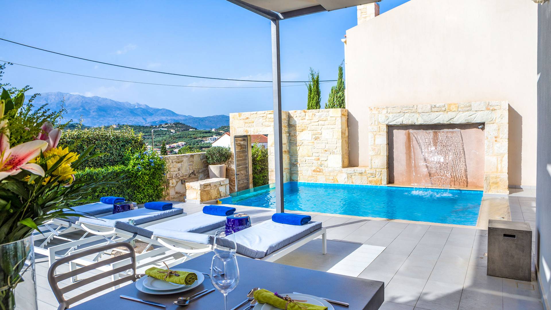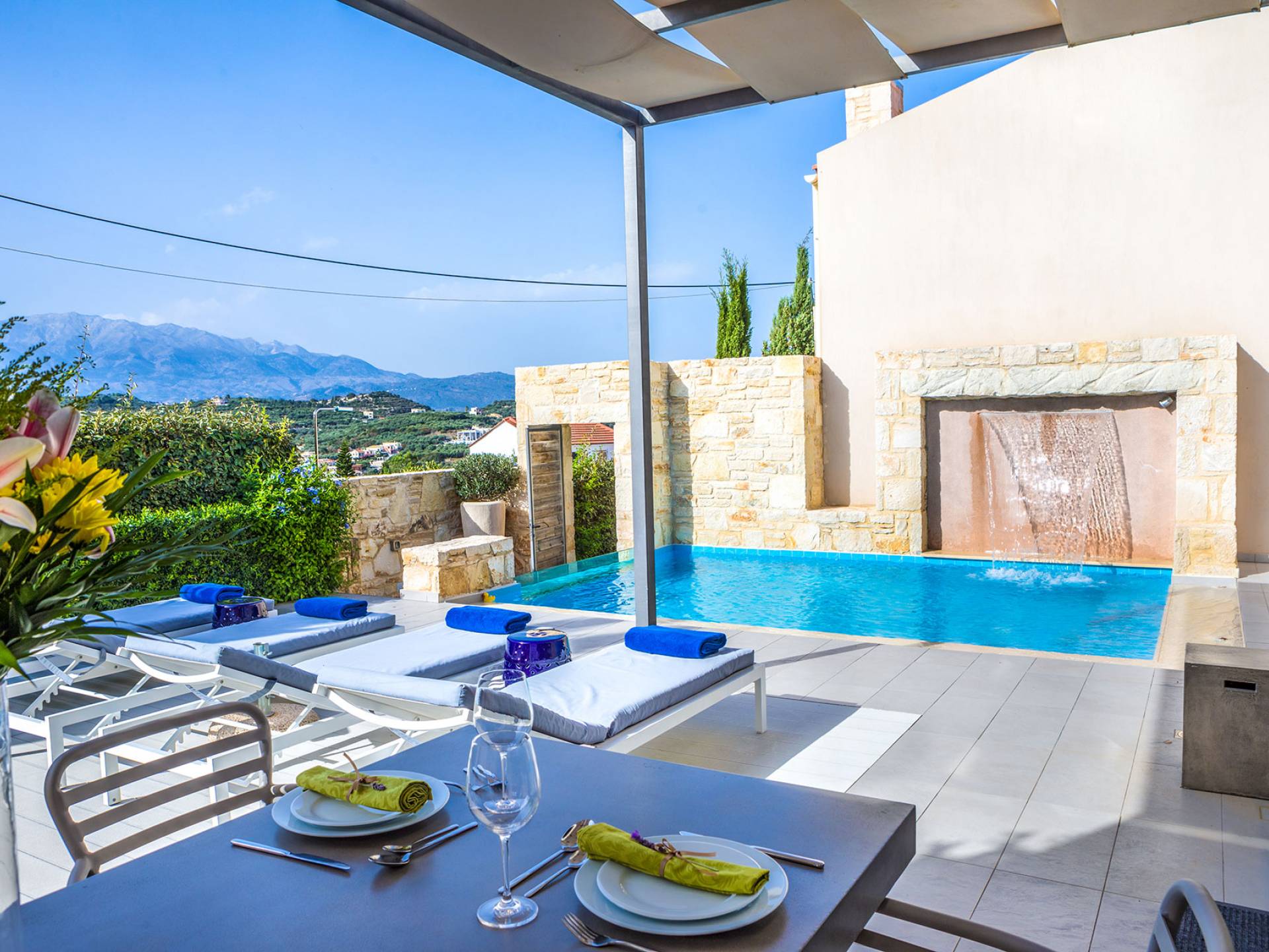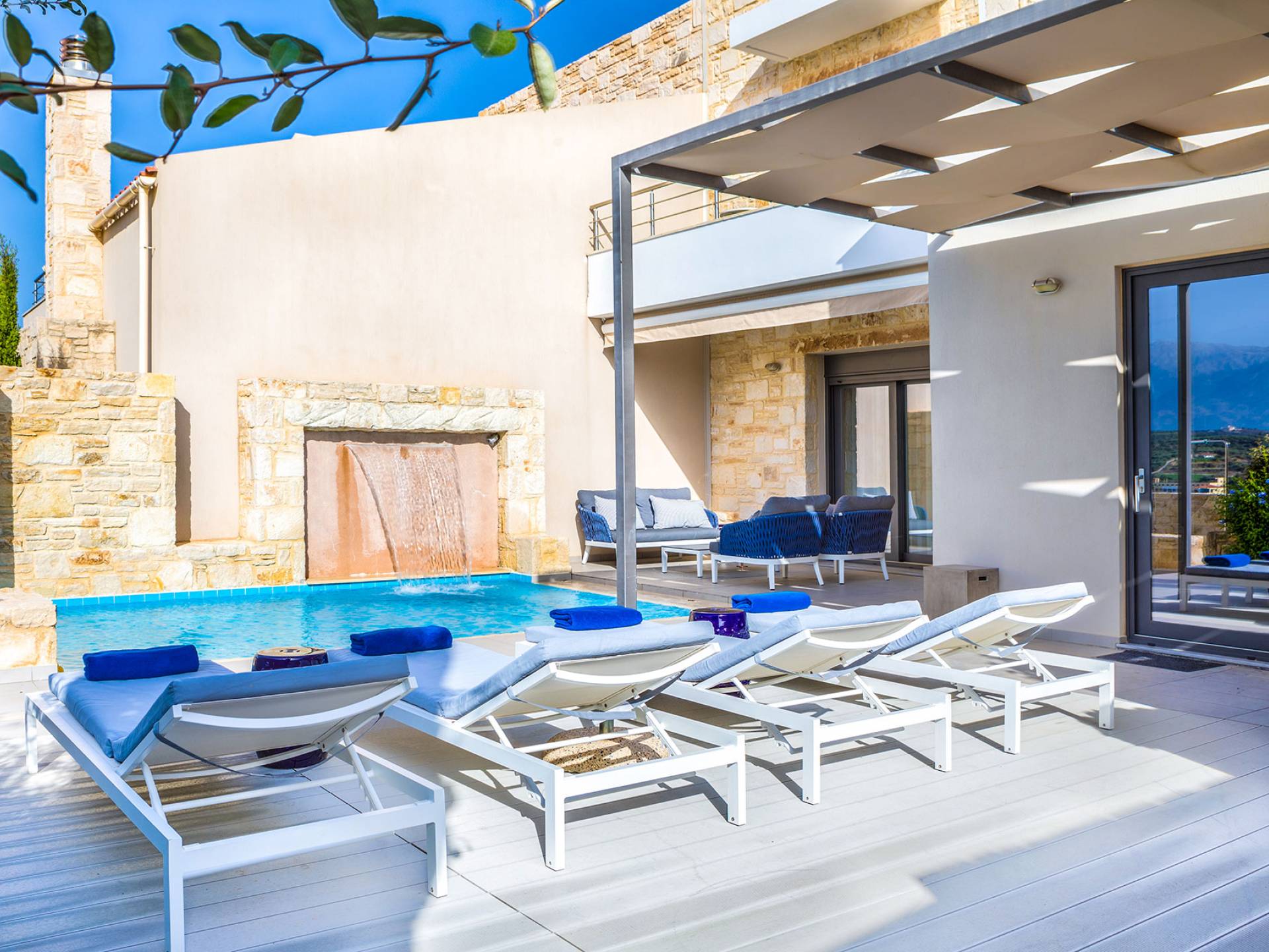 Nova Villa Chania ist der ideale Rückzugsort für eine kleine Familie oder Paare, die eine Villa in Griechenland in totalem Luxus, Ruhe und Privatsphäre mieten möchten. Die Villa verfügt über 2 Schlafzimmer, 2 Badezimmer, eine voll ausgestattete Küche, ein Wohnzimmer mit Kamin und einen eigenen kleinen Pool mit Wasserfall. Die integrierte Sitzbank im Pool lädt an heißen Sommertagen zum Verweilen und Entspannen unter der Sonne ein. Wer sich lieber erfrischen möchte, kann im Wasserfall eine erfrischende Dusche nehmen.
