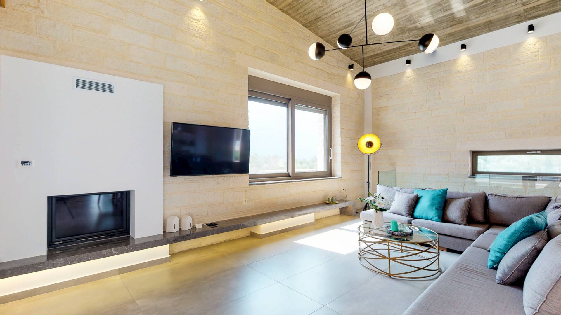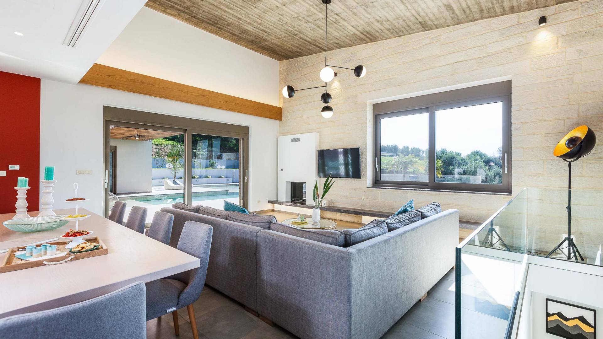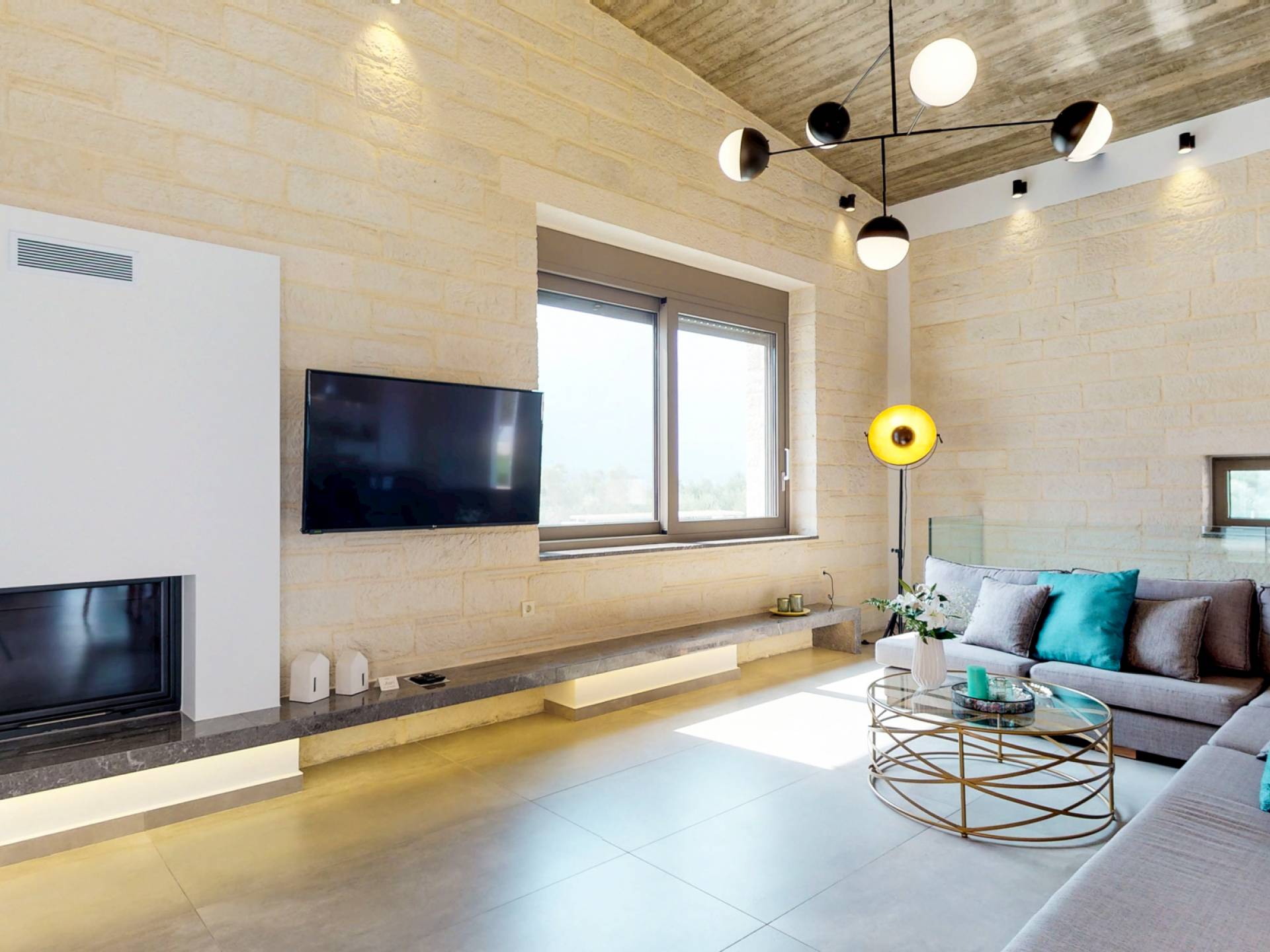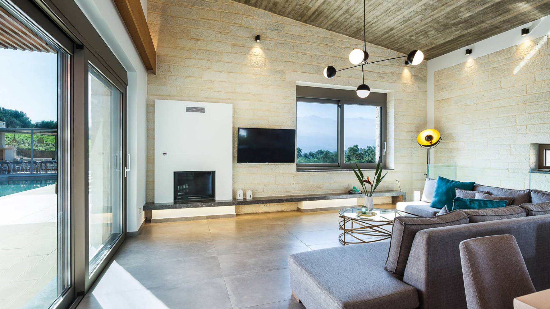 Outdoors, Oros Luxe Villa Chania will take your breath away. Olive trees, grapes, and orange trees give you a sense of relaxation near nature. Relax in the infinity swimming pool of 80m2 while your children play safely in the children pool which is 37sq.m. Cook your meal preparing it with organic products that you collected from the garden enjoying it in the dining table. The outdoor living areas offer you romantic moments day and night. The villa has secure parking suitable for two vehicles. Relax and enjoy the legacy of nature, near the beach and all amenities.