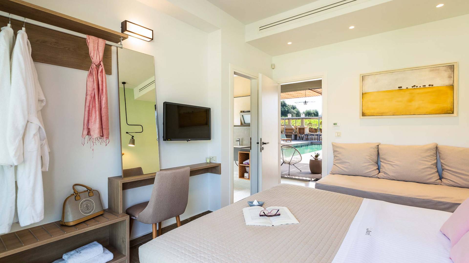 - Bedroom 4 – Double bed, ensuite bathroom, 32’’ Smart TV, direct pool access