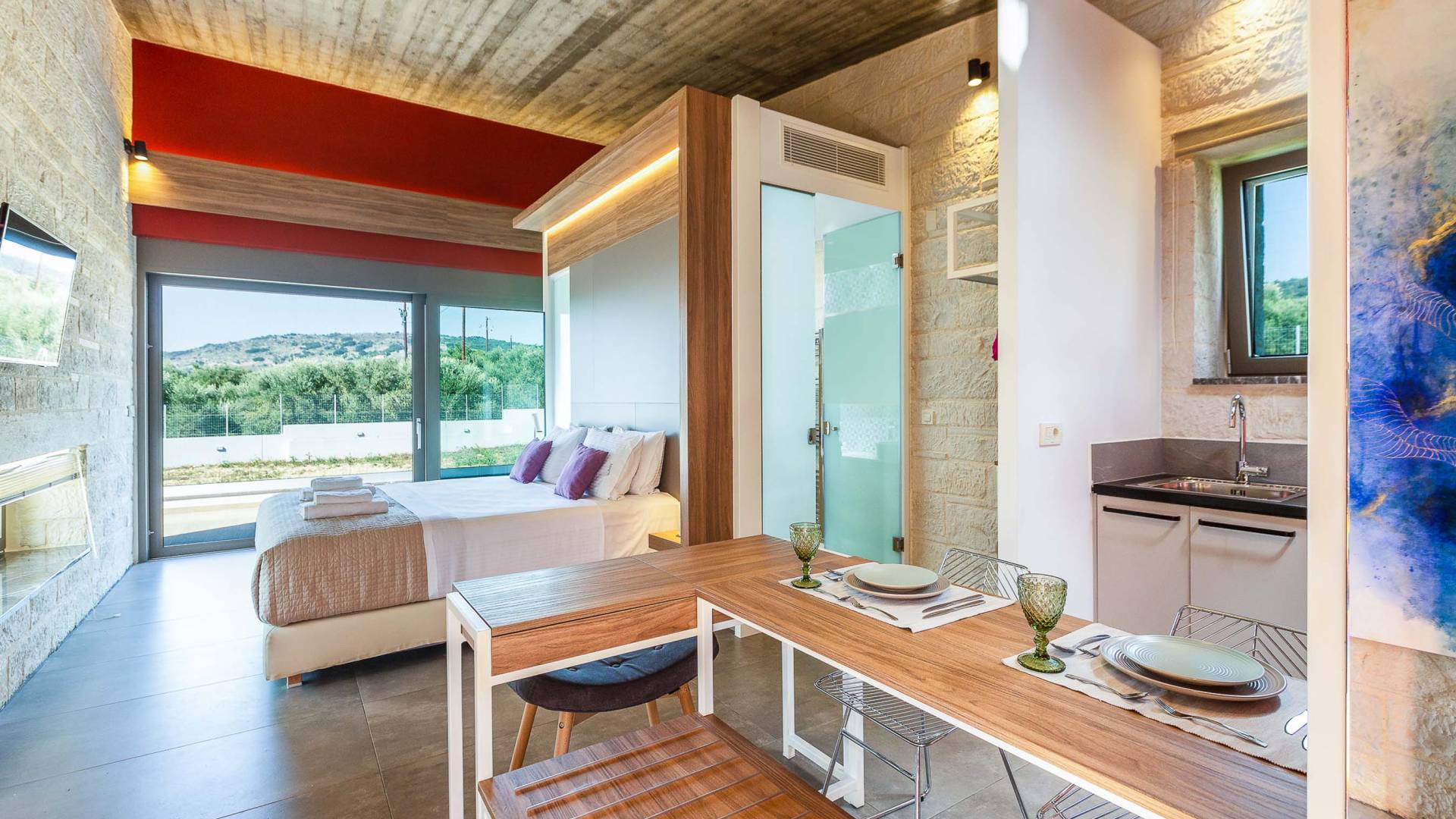 Apokoronas, one of Crete’s greenest and most authentic regions, Oros Luxe Villa Chania is surrounded by olive groves, wildflowers, and vineyards, framed by the dramatic White Mountains. Here, you’ll experience both peaceful seclusion and easy access to the best of West Crete.
