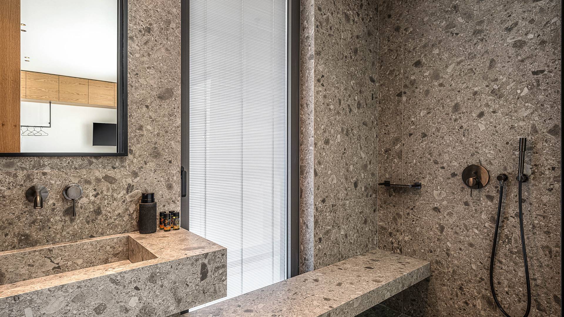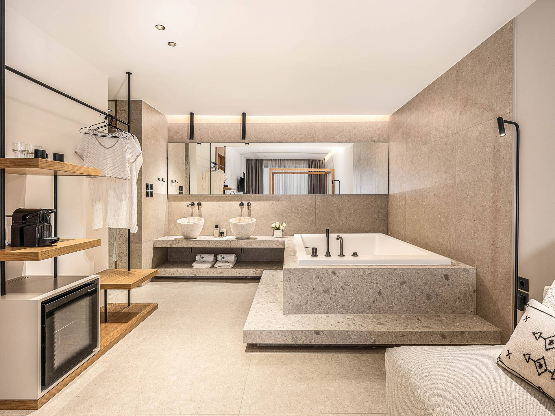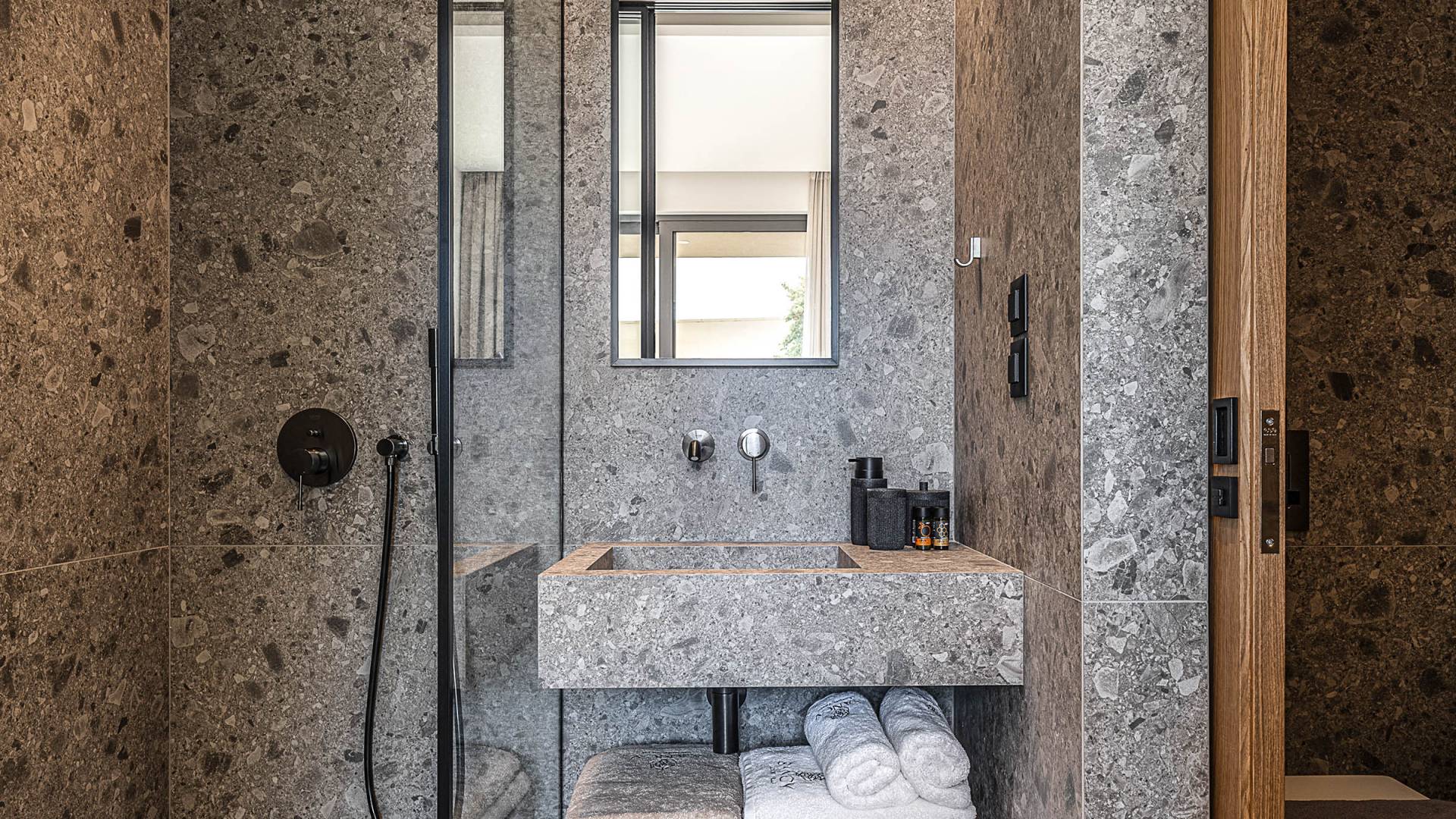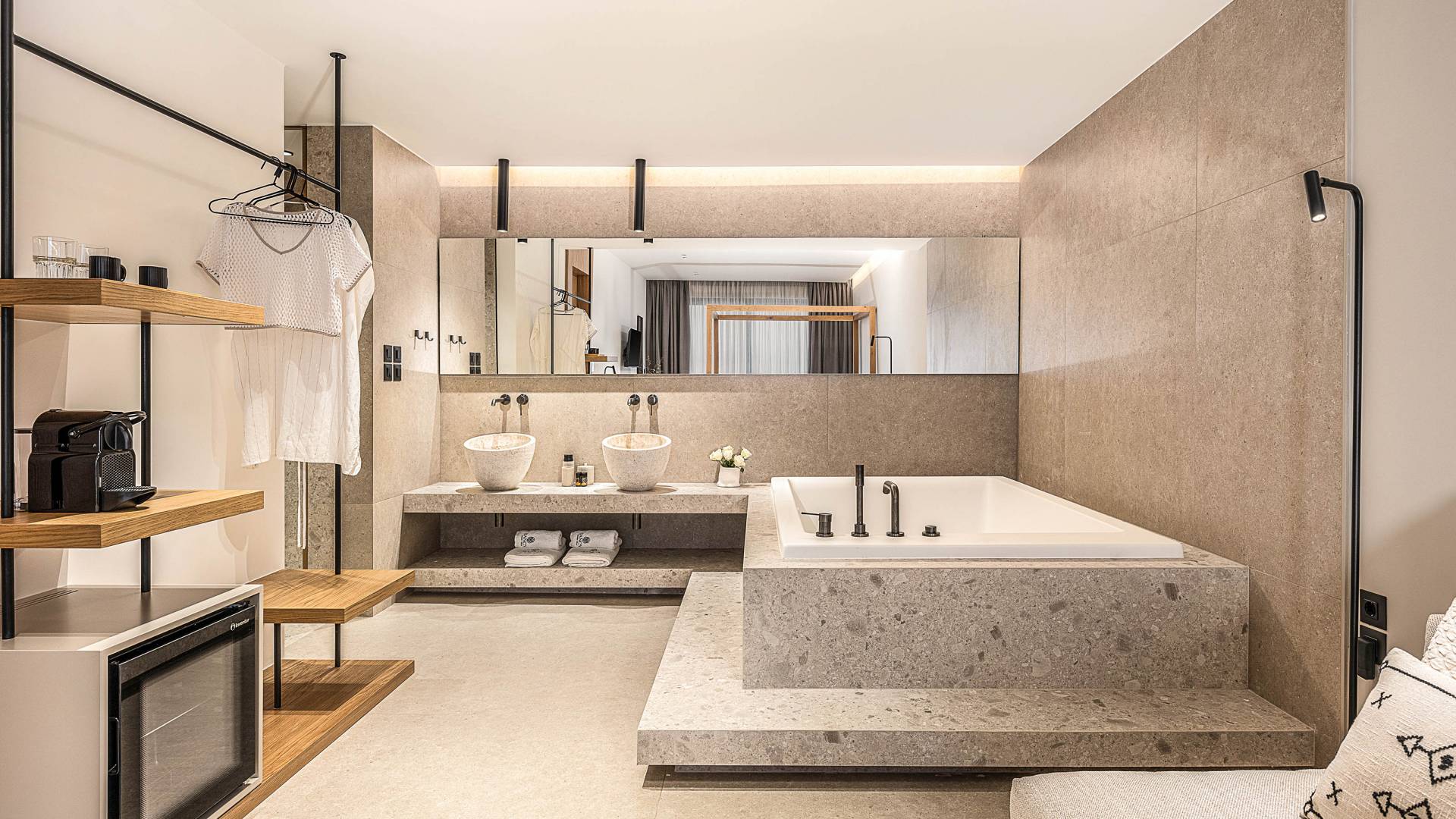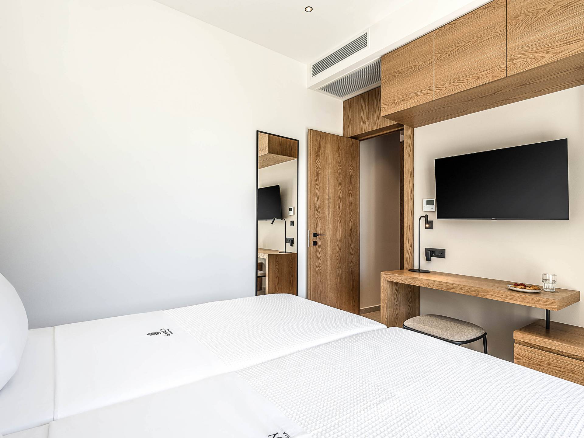 Auf der unteren Ebene gibt es ein weiteres Schlafzimmer mit Dusche und Doppelbett. Auf derselben Etage befindet sich ein Fitnessstudio mit allen notwendigen Geräten, um Sie im Urlaub fit zu halten. Darüber hinaus gibt es ein Spielzimmer mit einer PlayStation 5-Konsole, in dem Ihre Kinder die Spiele genießen können, während Sie den Creta-Himmel voller Sterne genießen. Die minimalistische Einrichtung des Hauses, die neutrale Farbpalette und die Verwendung von Holz schaffen den perfekten Rückzugsort für Sie, um sich vom hektischen Alltag zu erholen und zu entspannen. Jedes kleine Detail in dieser Residenz wurde speziell ausgewählt und gestaltet, um unseren Gästen eine sehr freundliche, aber gleichzeitig komfortable und luxuriöse Umgebung zu bieten.