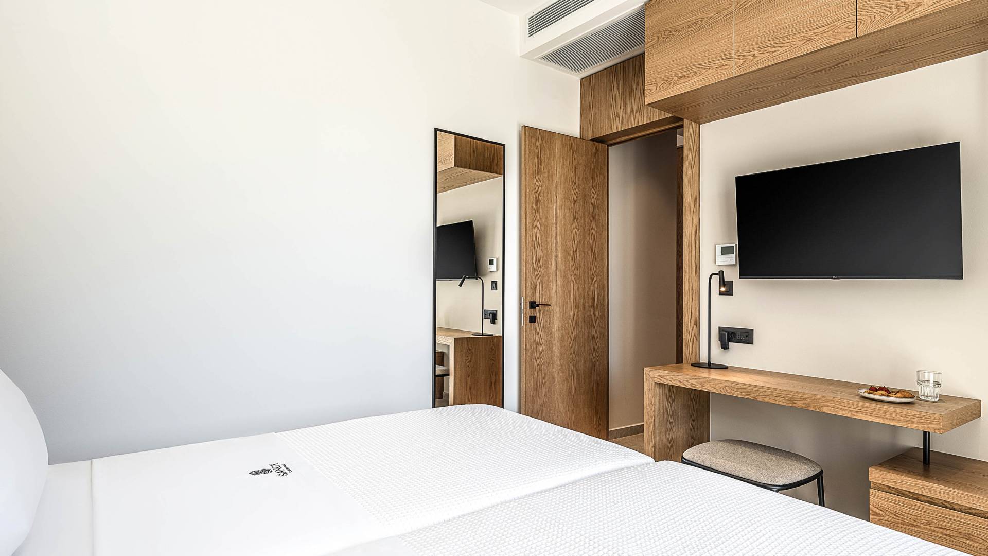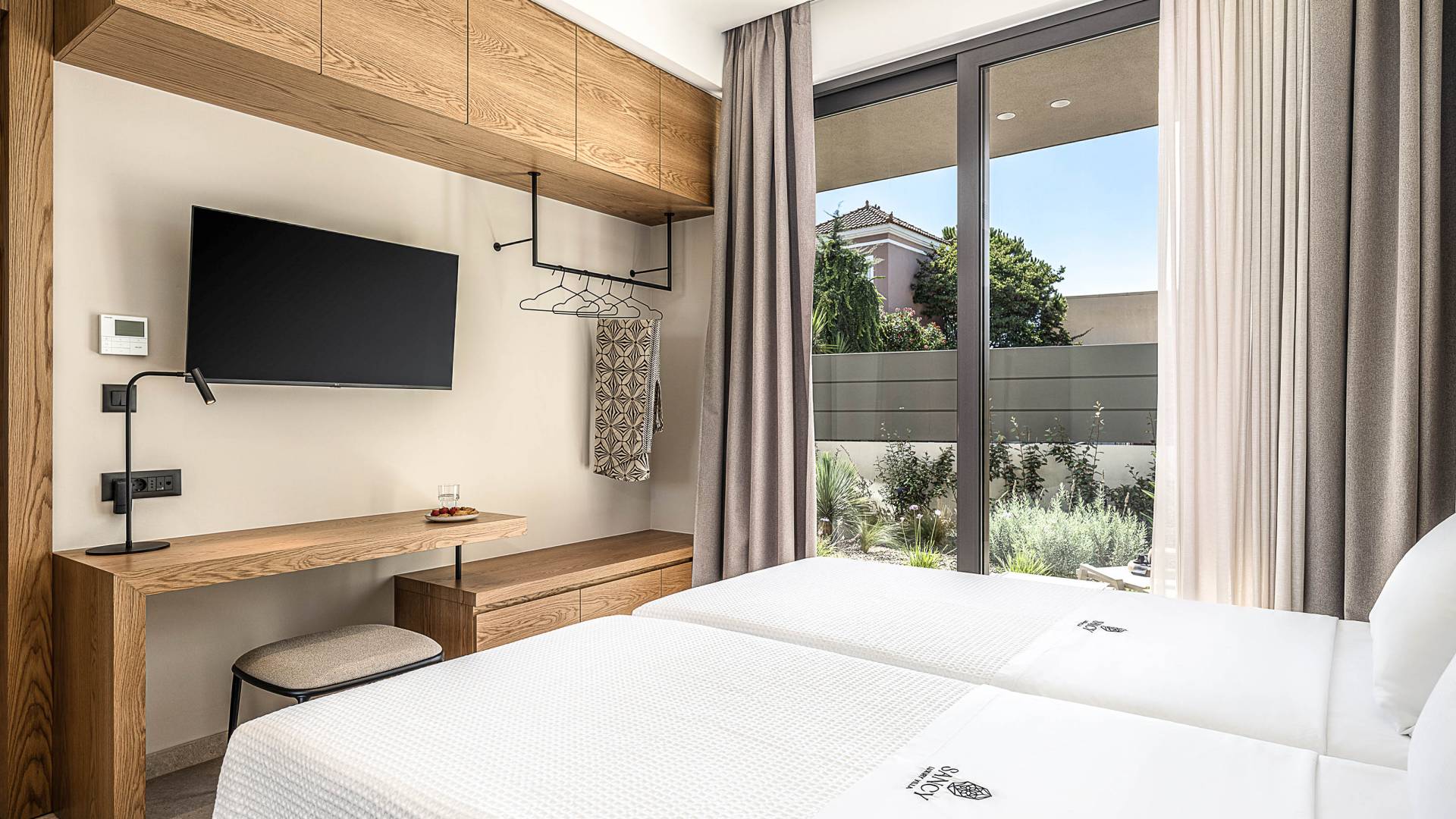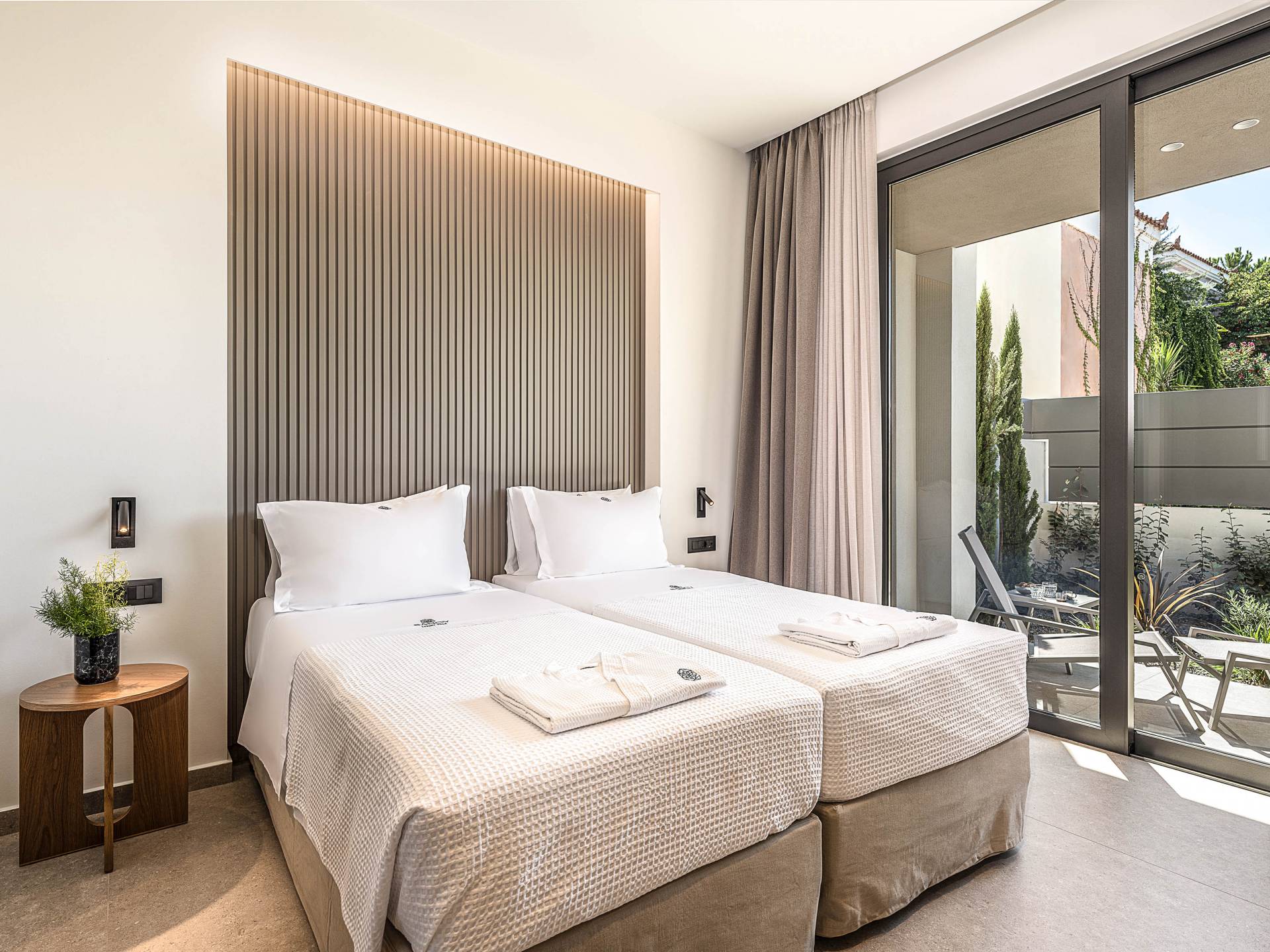 Direkt neben der Küche befindet sich ein luftiges Wohnzimmer mit einem Flachbildfernseher und einem atemberaubenden Blick auf den Außenbereich der Villa. Die großen Fenster erzeugen die Illusion von Transparenz und sorgen für einen nahtlosen Übergang zwischen Innen- und Außenbereich. Die Villa hat vom Wohnzimmer aus direkten Zugang zum Pool. Auf derselben Etage befinden sich zwei geräumige Schlafzimmer mit Twin-Size-Betten, die in ein Doppelbett umgewandelt werden können. Diese beiden Schlafzimmer bieten unseren Gästen Ruhe. Eines der Schlafzimmer verfügt über ein eigenes Badezimmer mit Dusche. Auf der gleichen Etage gibt es ein Gemeinschaftsbad für alle Gäste mit Dusche.