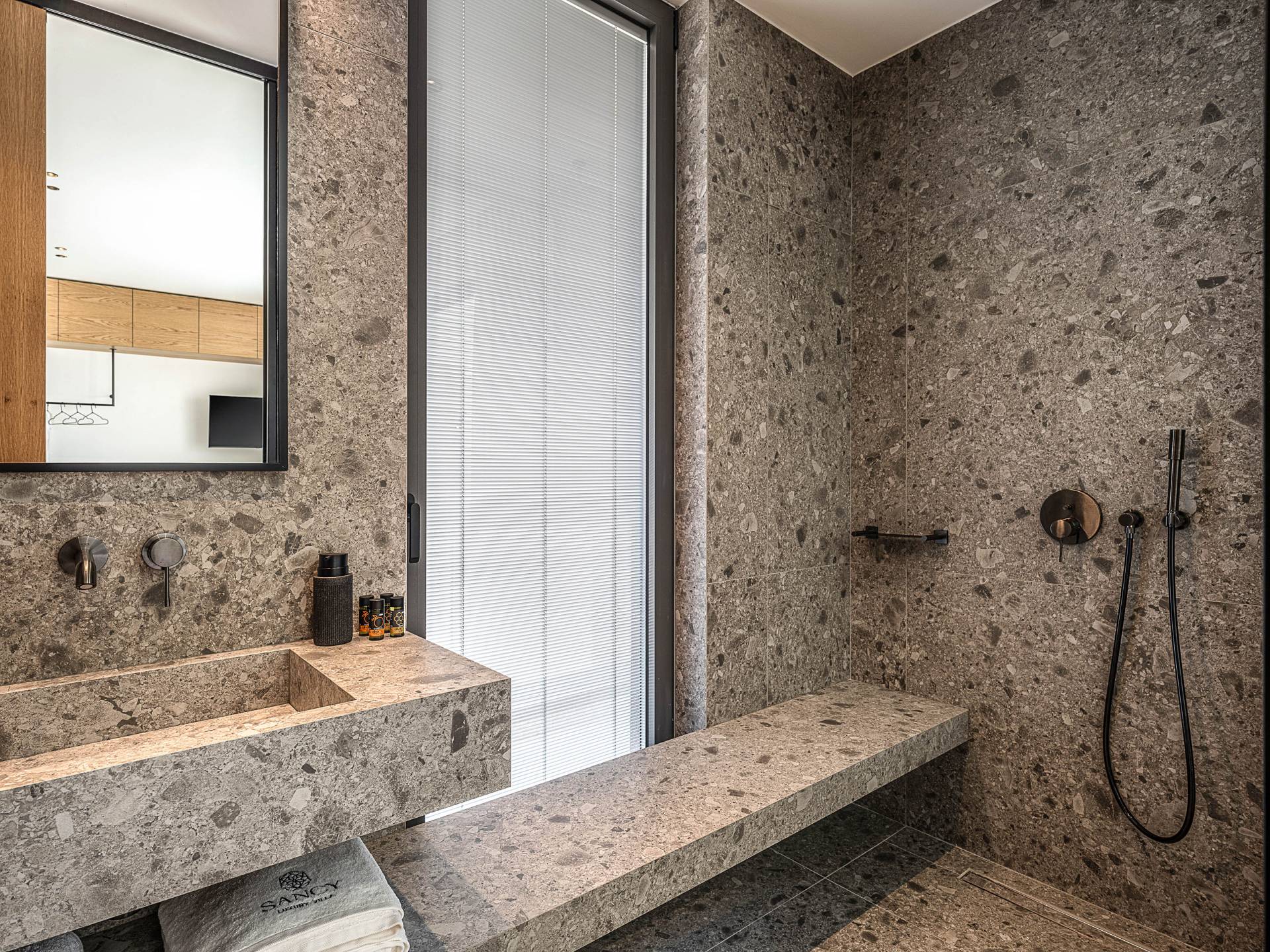 Sancy Villa ist ein dreistöckiges Gebäude mit einer Fläche von 300 m², das Platz für bis zu 12 Personen bietet und sich ideal für Familien oder Freunde eignet. Das wahre Herzstück des Hauses ist die offene Küche im Erdgeschoss, die komplett mit Markengeräten und -einrichtungen ausgestattet ist und das Kochen im Urlaub zu einem äußerst angenehmen Erlebnis macht. und ein Esstisch für 12 Personen.