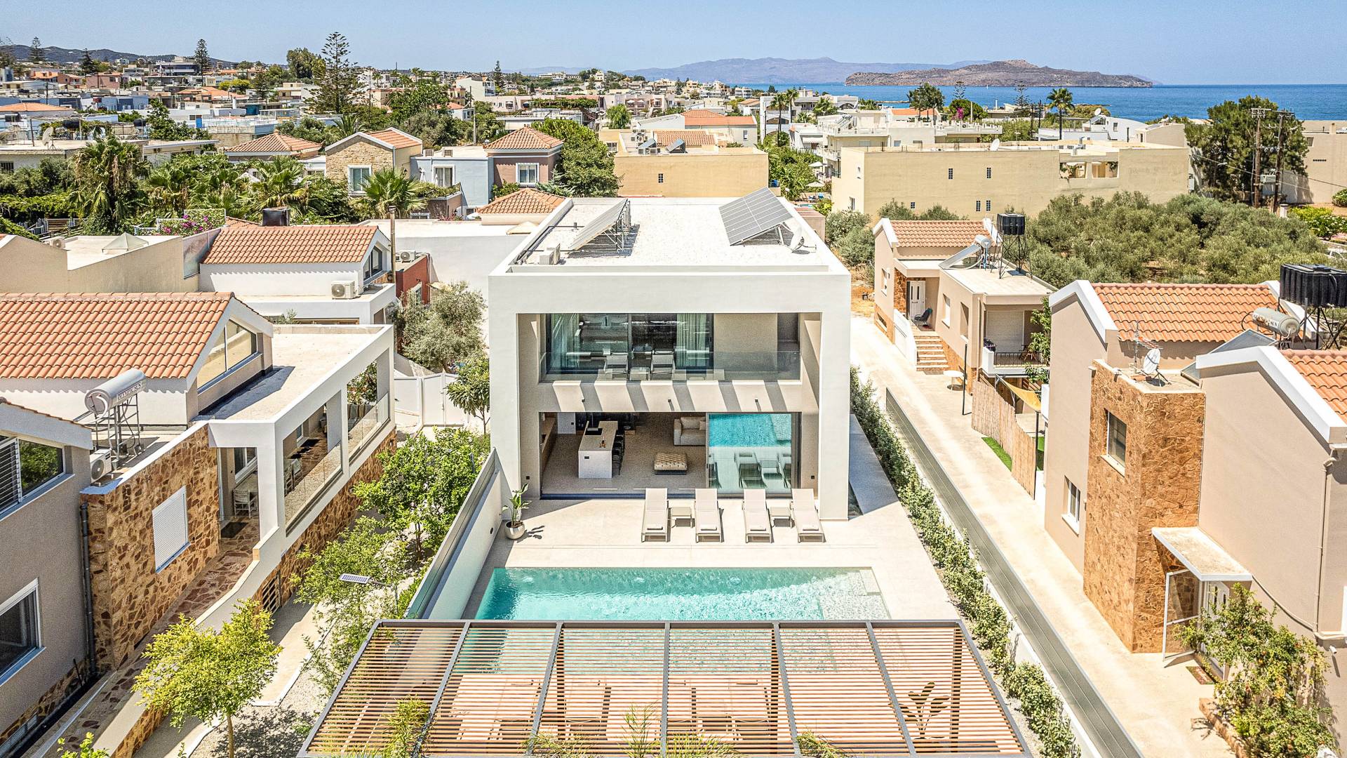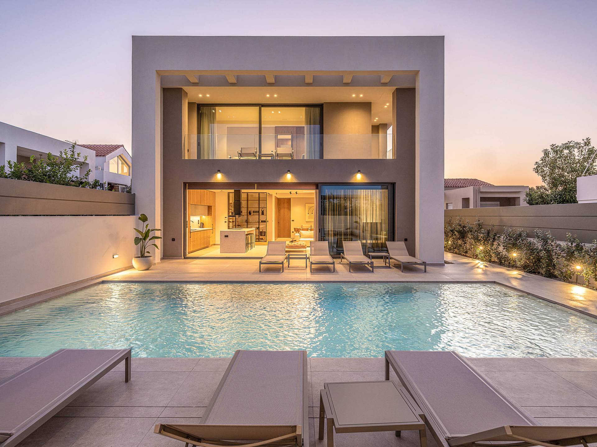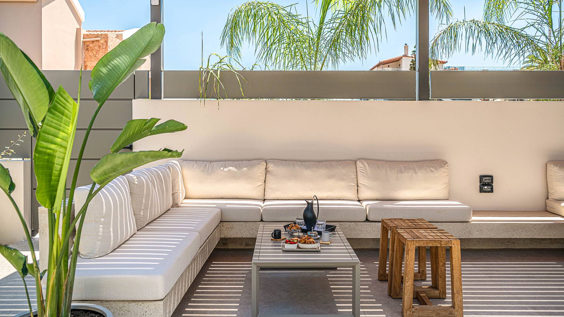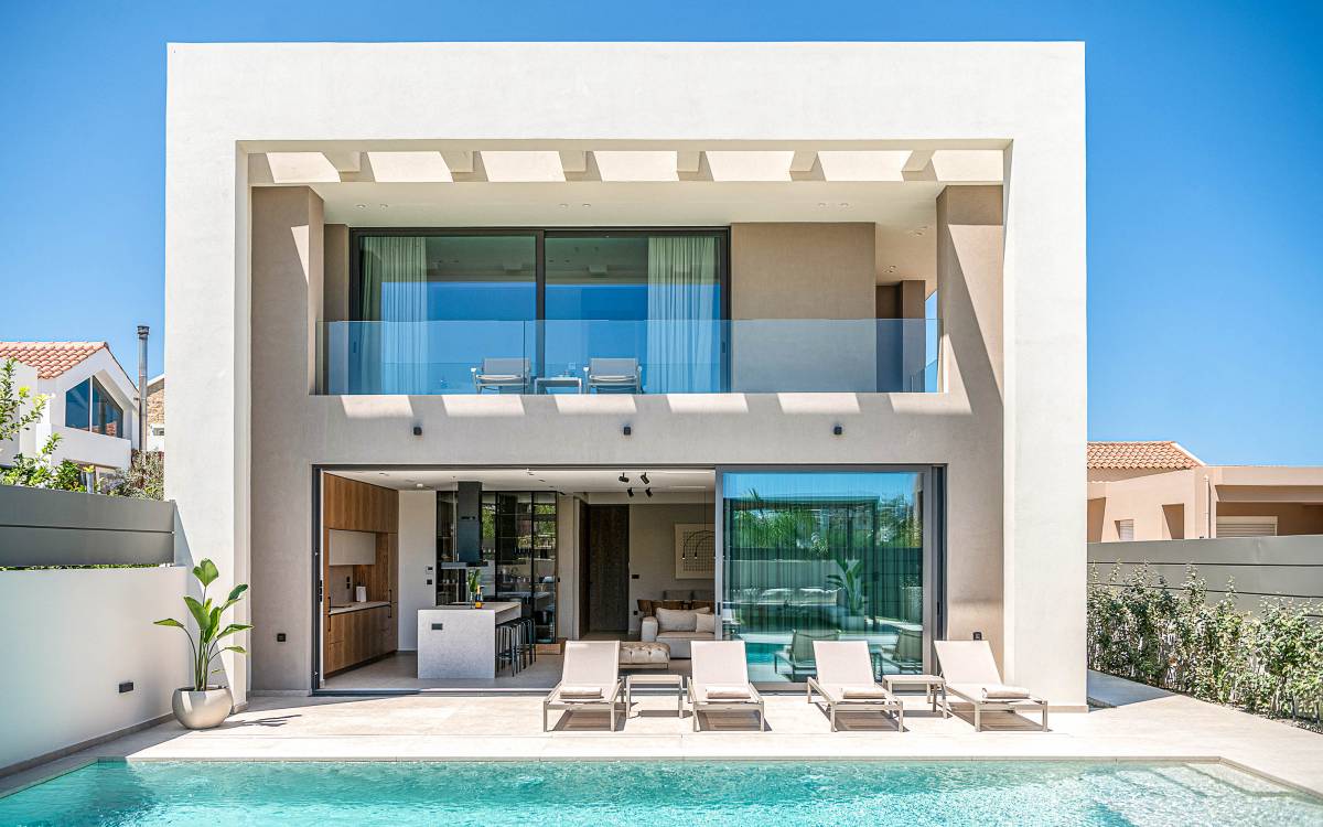 Im Gegensatz zu überlaufenen Ferienorten bewahrt Agioi Apostoloi eine entspannte, dörfliche Atmosphäre, die sich perfekt für einen Urlaub in einer Villa eignet. Ob romantischer Rückzugsort oder großzügige Villa für die ganze Familie – hier finden Sie komfortable, voll ausgestattete Unterkünfte nur wenige Schritte vom Strand entfernt.