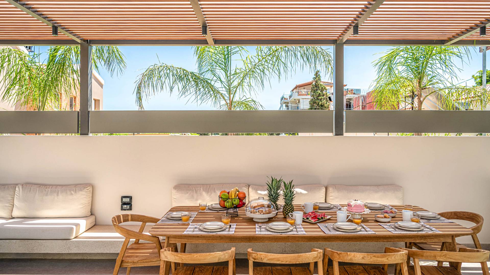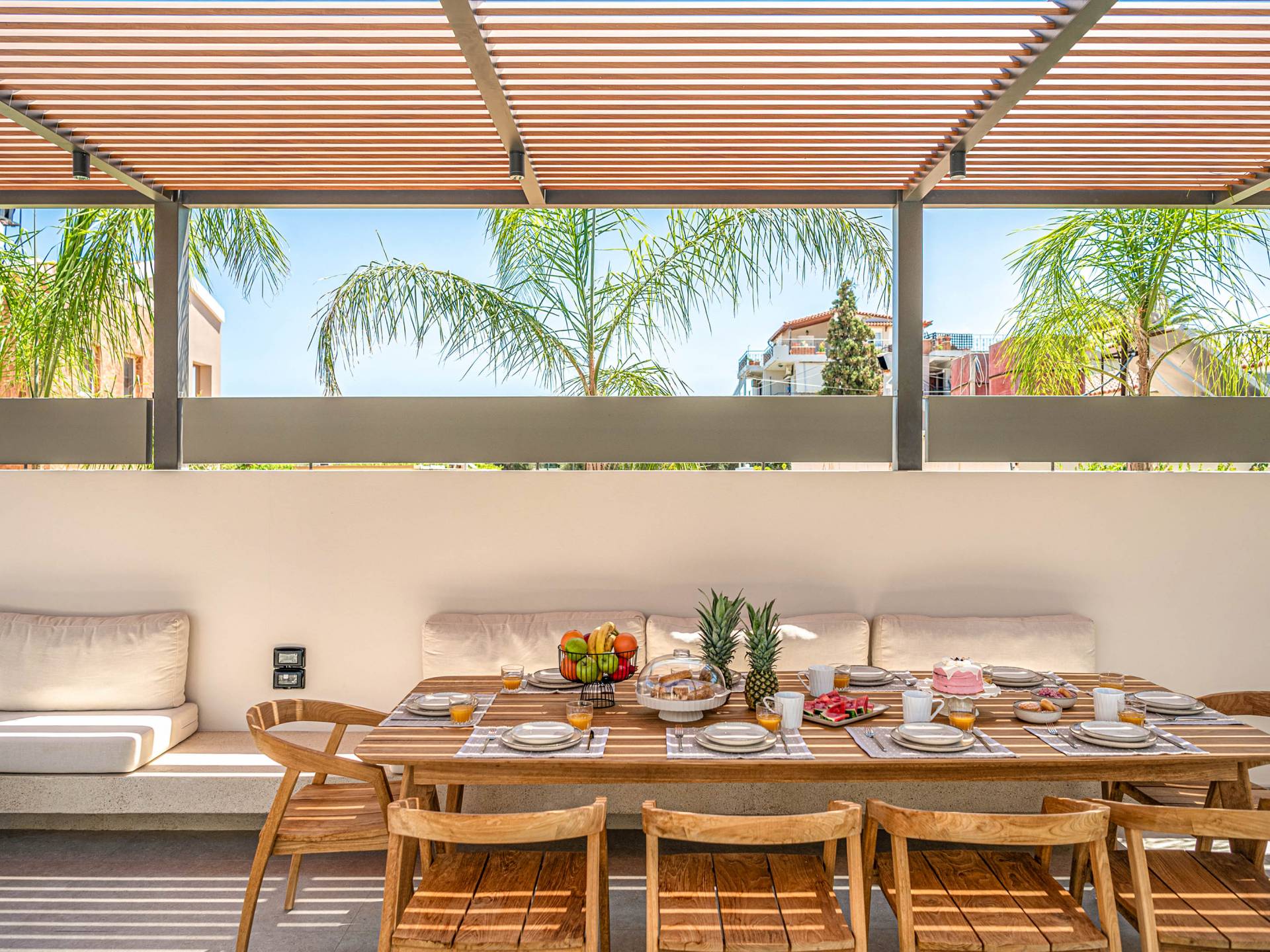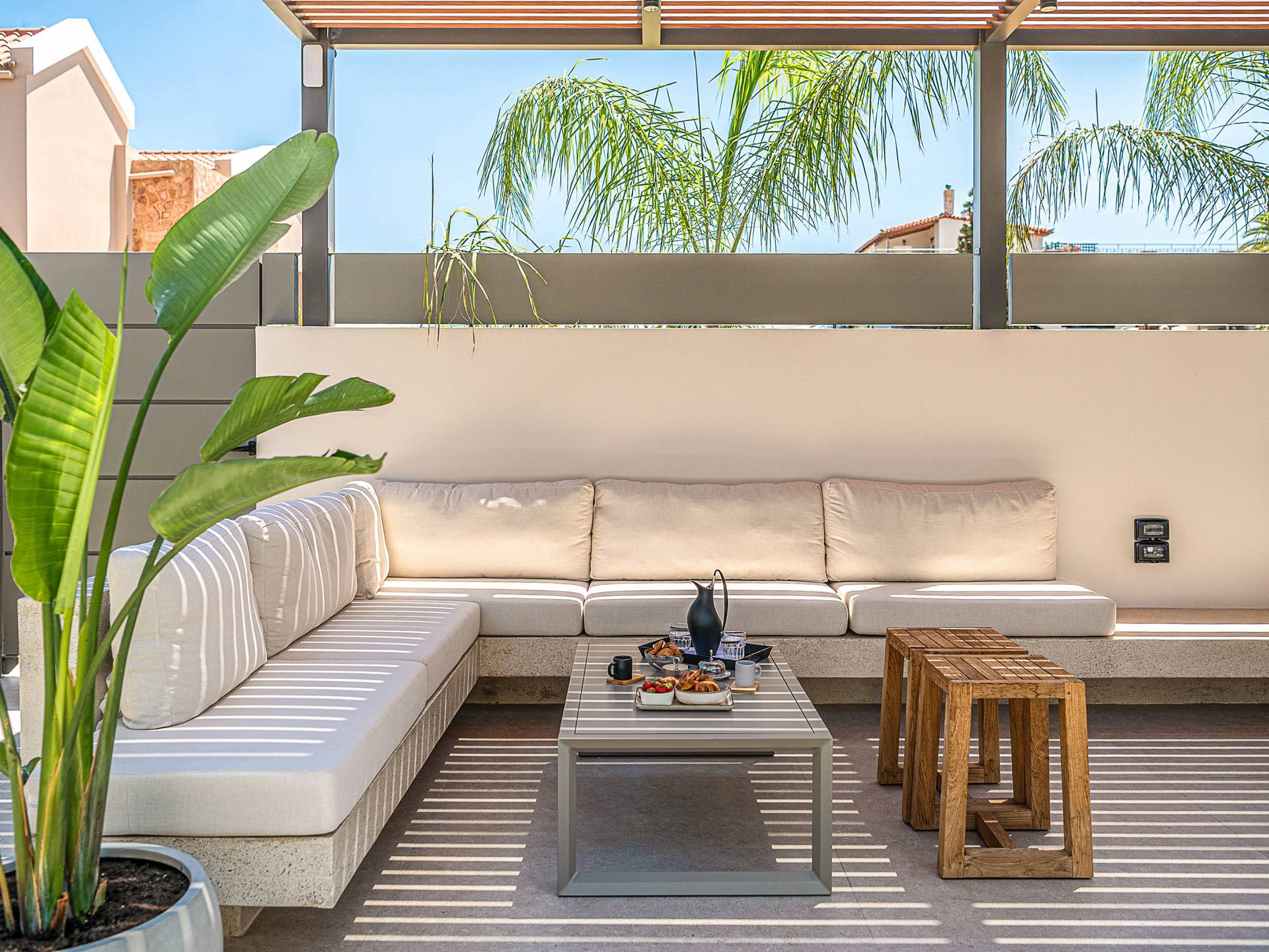 Im Gegensatz zu überlaufenen Ferienorten bewahrt Agioi Apostoloi eine entspannte, dörfliche Atmosphäre, die sich perfekt für einen Urlaub in einer Villa eignet. Ob romantischer Rückzugsort oder großzügige Villa für die ganze Familie – hier finden Sie komfortable, voll ausgestattete Unterkünfte nur wenige Schritte vom Strand entfernt.