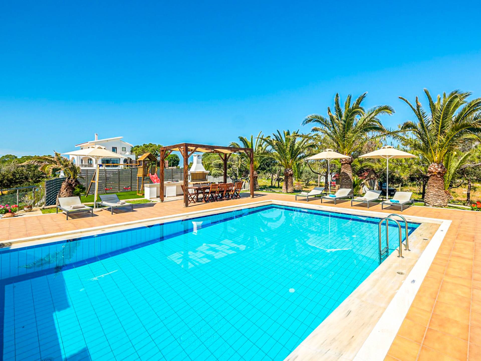 Immerse yourself in the essence of Cretan living with a private garden and poolside haven designed for both relaxation and play: