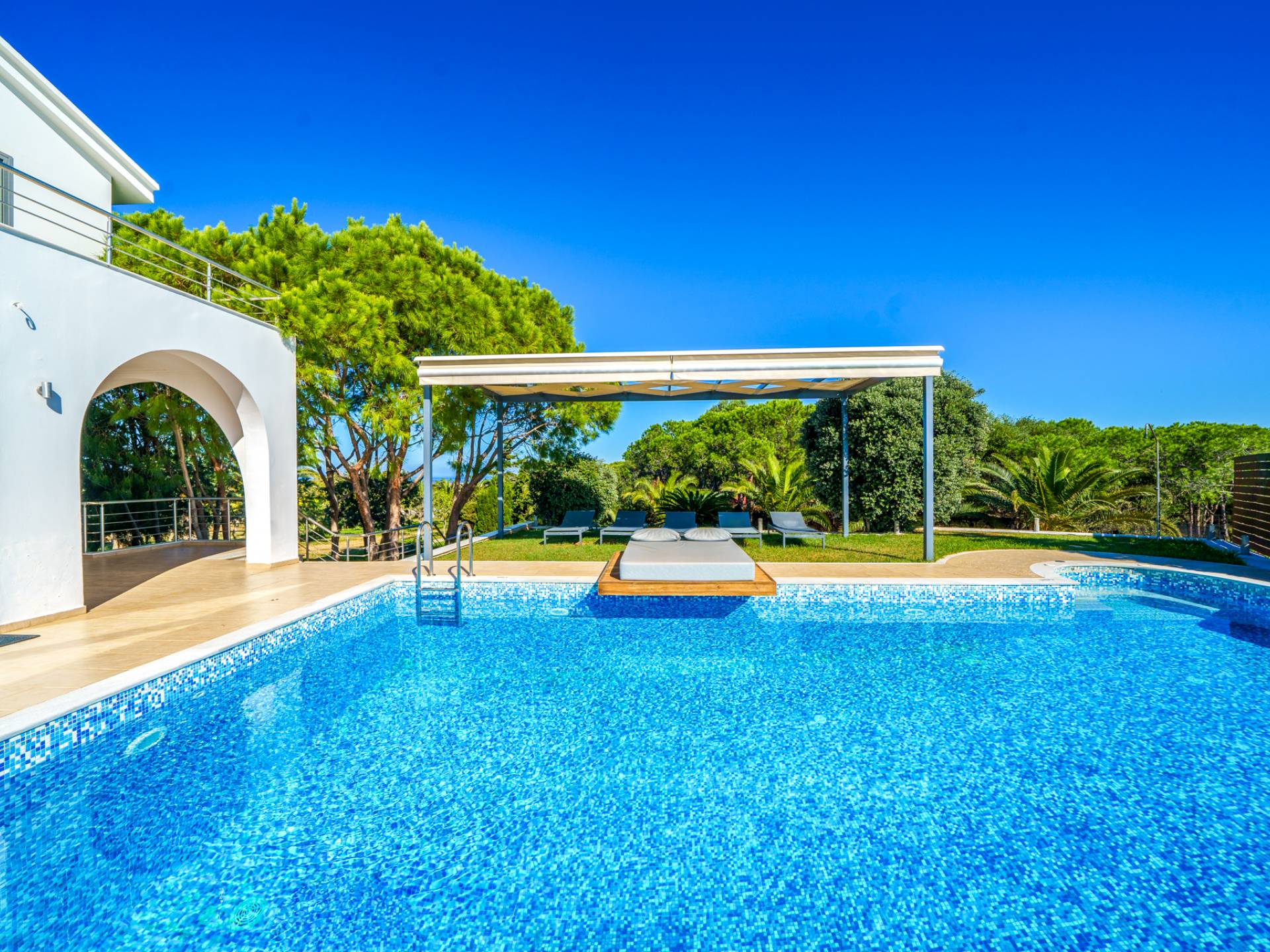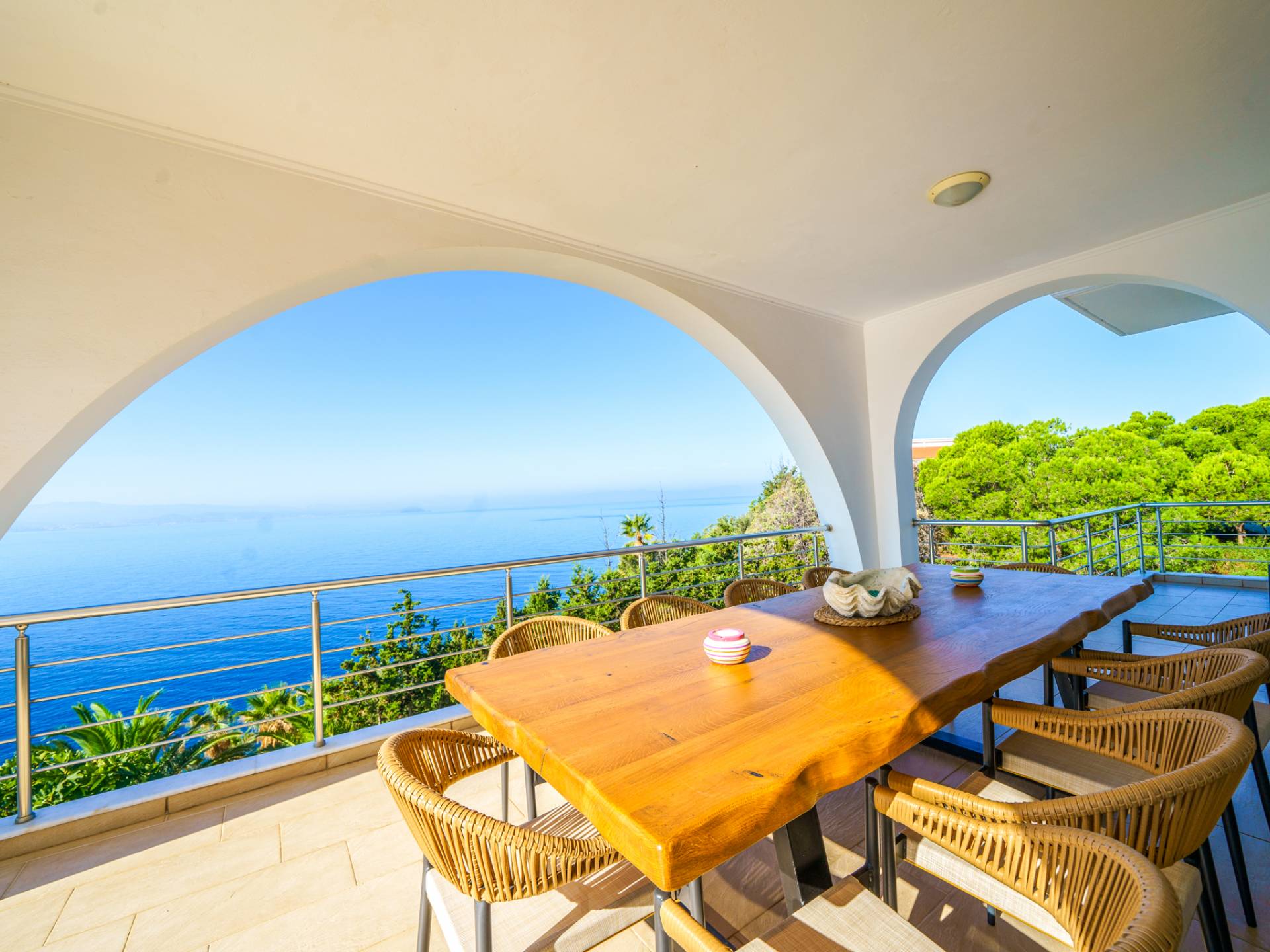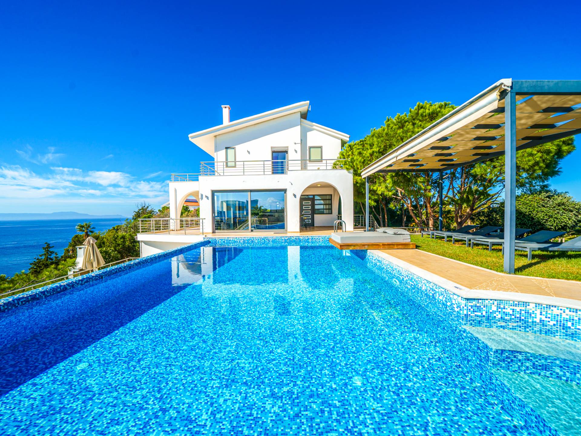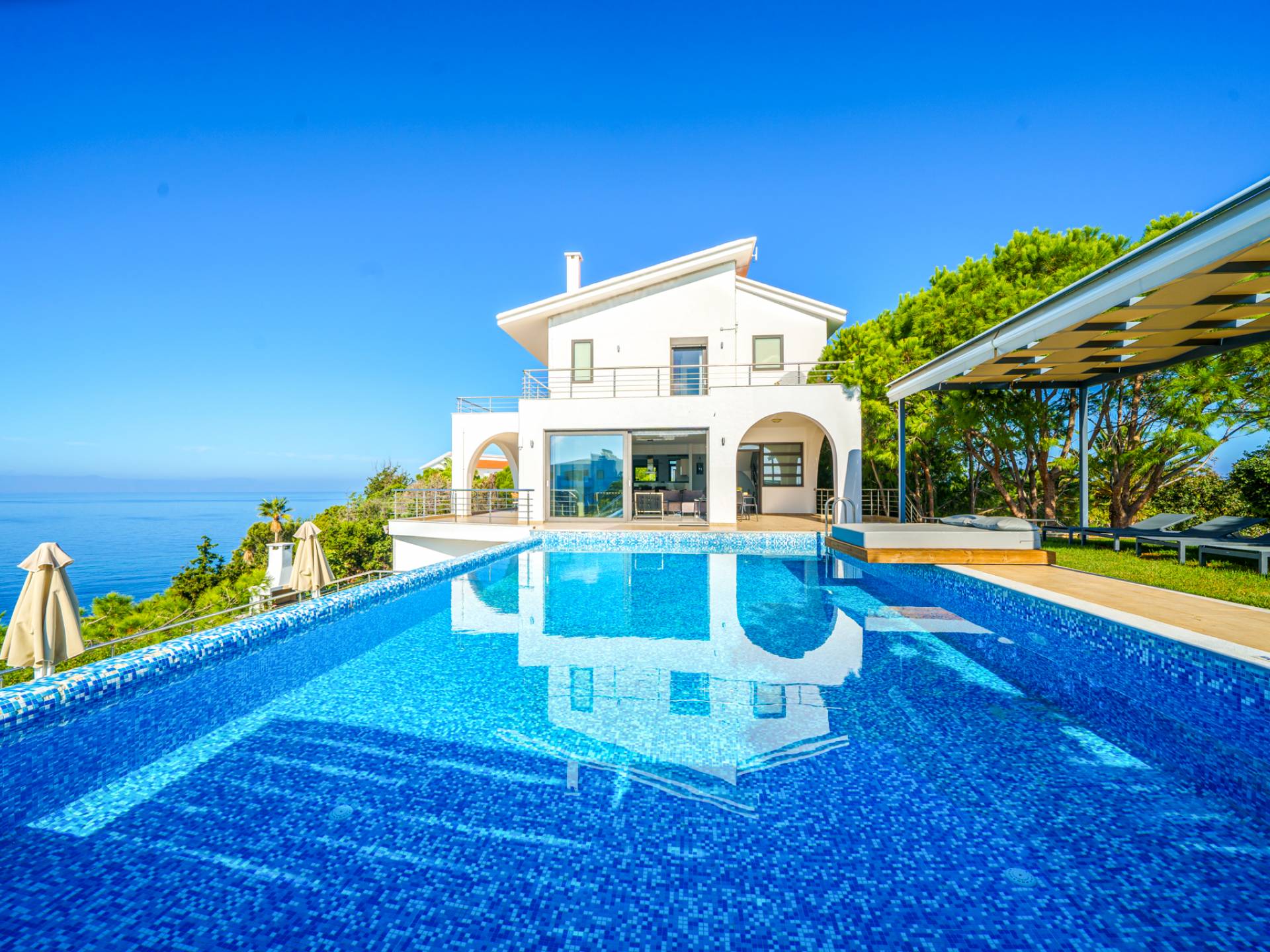 Surrounded by pine trees and natural beauty, the estate offers a relaxing atmosphere with sea views.