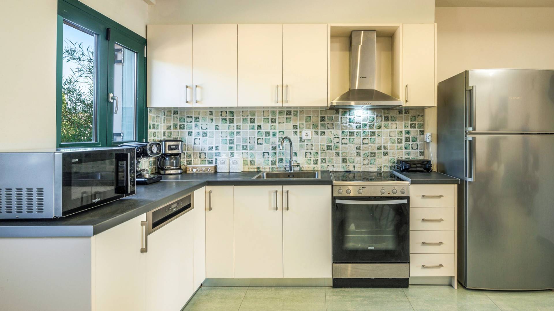 Im Erdgeschoss befindet sich neben dem Hauptwohnzimmer eine offene, voll ausgestattete Küche. Es gibt auch eine zweite Küche auf der Poolebene, die sich als äußerst nützlich für die Zubereitung von Mahlzeiten erweisen kann, wenn die Bewohner am Pool entspannen oder einen Grillabend verbringen möchten. Die Umgebung der Seafront Villa Althea Blu Chania und ihre Außenbereiche werden die Besucher mit ihren wundervollen Blumen und Kräutern, der Rasenfläche neben dem großen eingebauten Grill und dem großen Essbereich sicherlich in Erstaunen versetzen. Aber das Beste von allem ist der Pool, der genau über dem Meer liegt und den Sonnenuntergang von der Villa Faidra aus so magisch macht, dass man ihn nur schwer mit Worten beschreiben kann. Der Hauptvorteil der Villa besteht darin, dass sie auf drei Ebenen liegt und genau aus diesem Grund den Gästen Privatsphäre bietet, während sie ihren Urlaub mit Familie und Freunden genießen. Kinder und Erwachsene werden gleichermaßen von ihrem Aufenthalt und dem Gefühl der Freiheit, das ihnen die Villa bietet, begeistert sein.