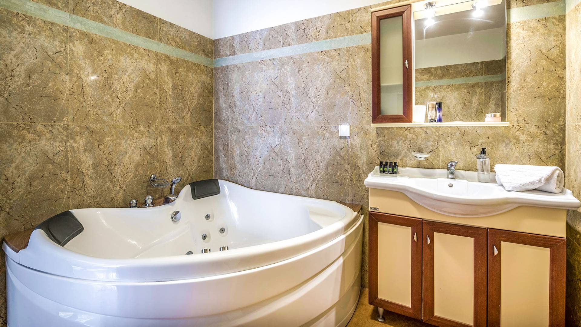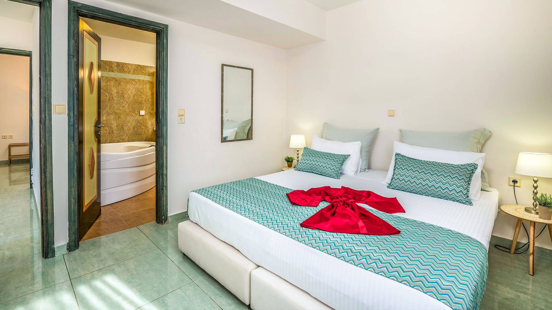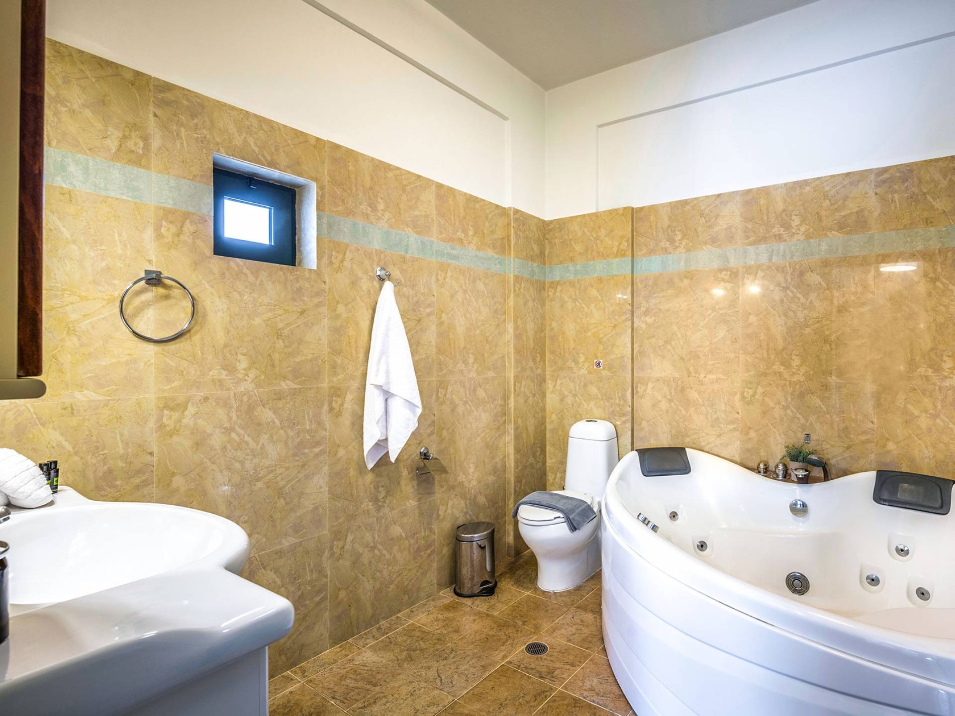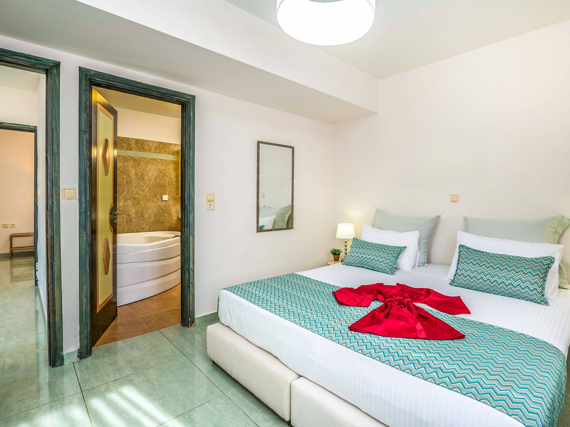 Jedes Schlafzimmer verfügt über ein eigenes Badezimmer mit Whirlpool-Badewanne oder Whirlpool-Dusche, Sat-TV und Klimaanlage.