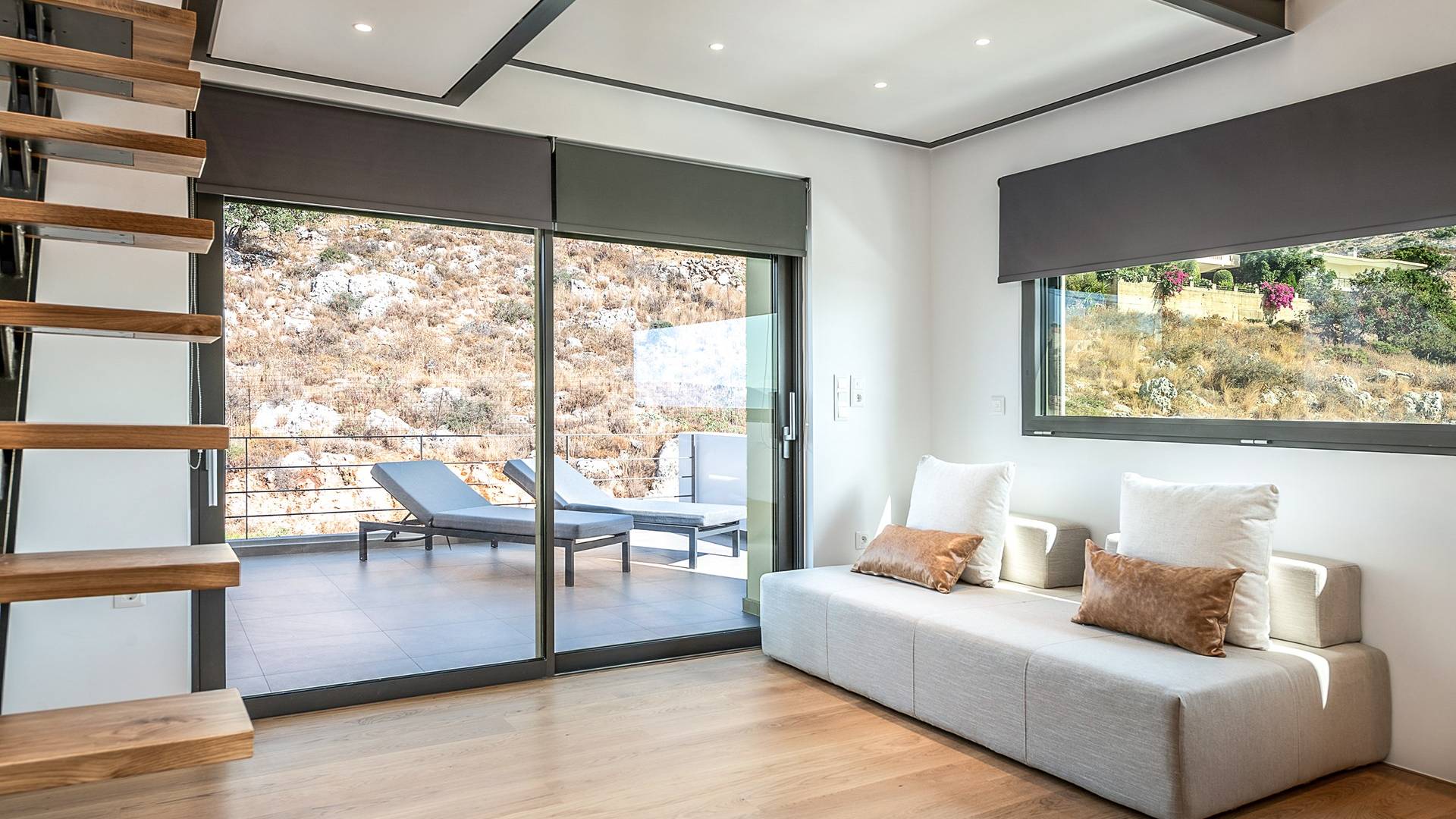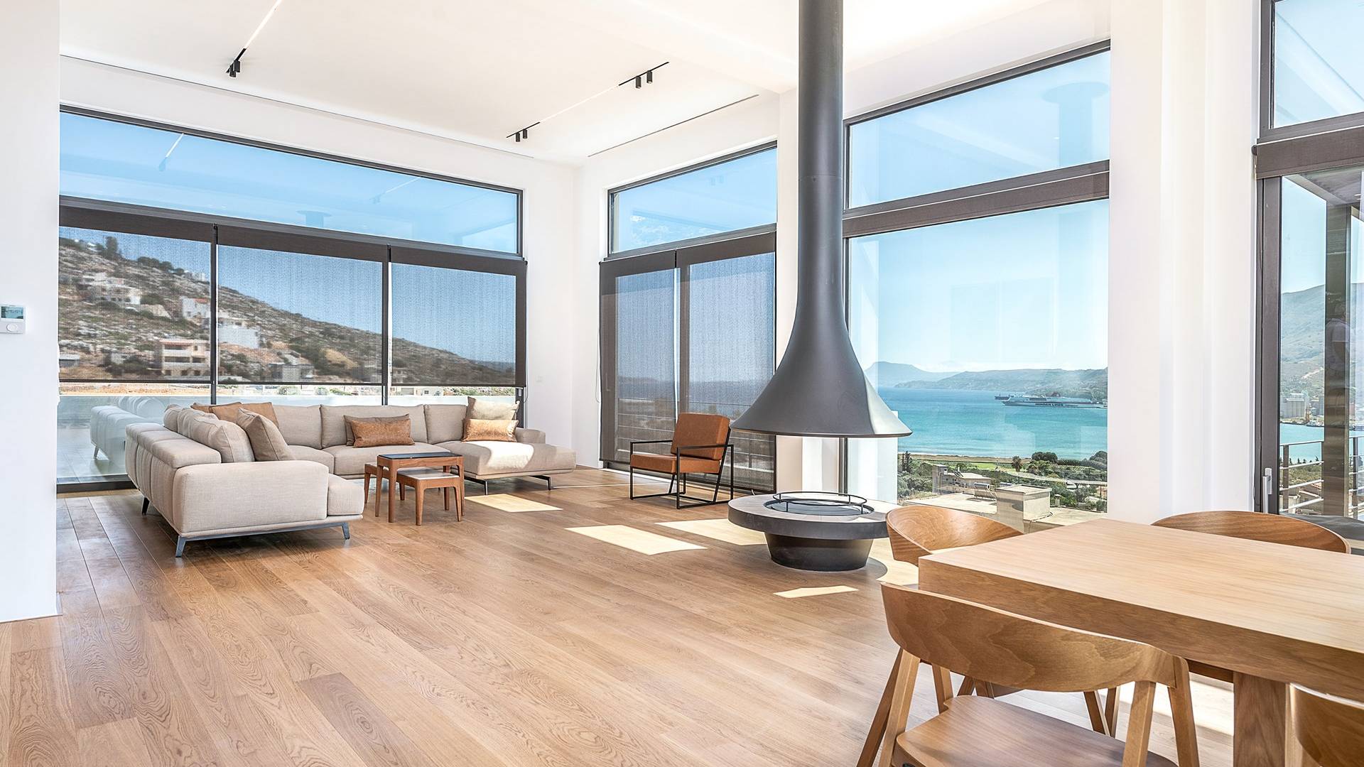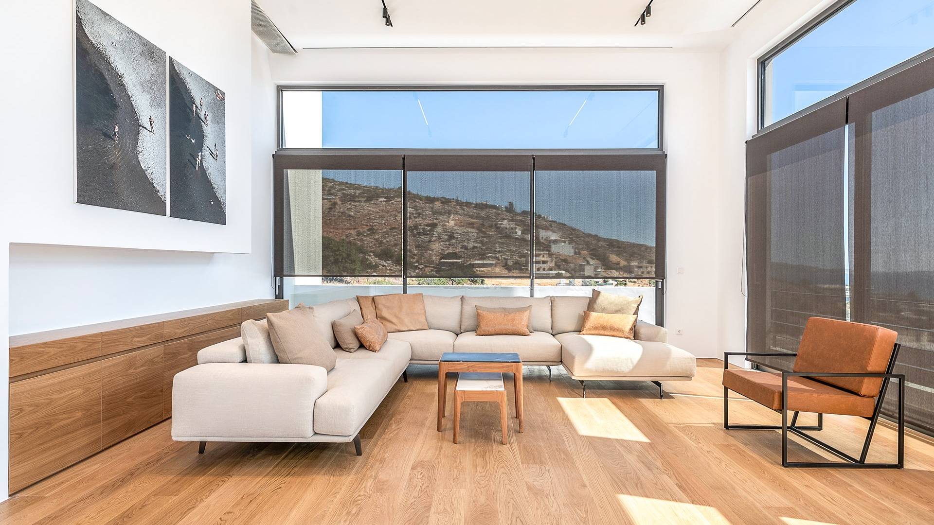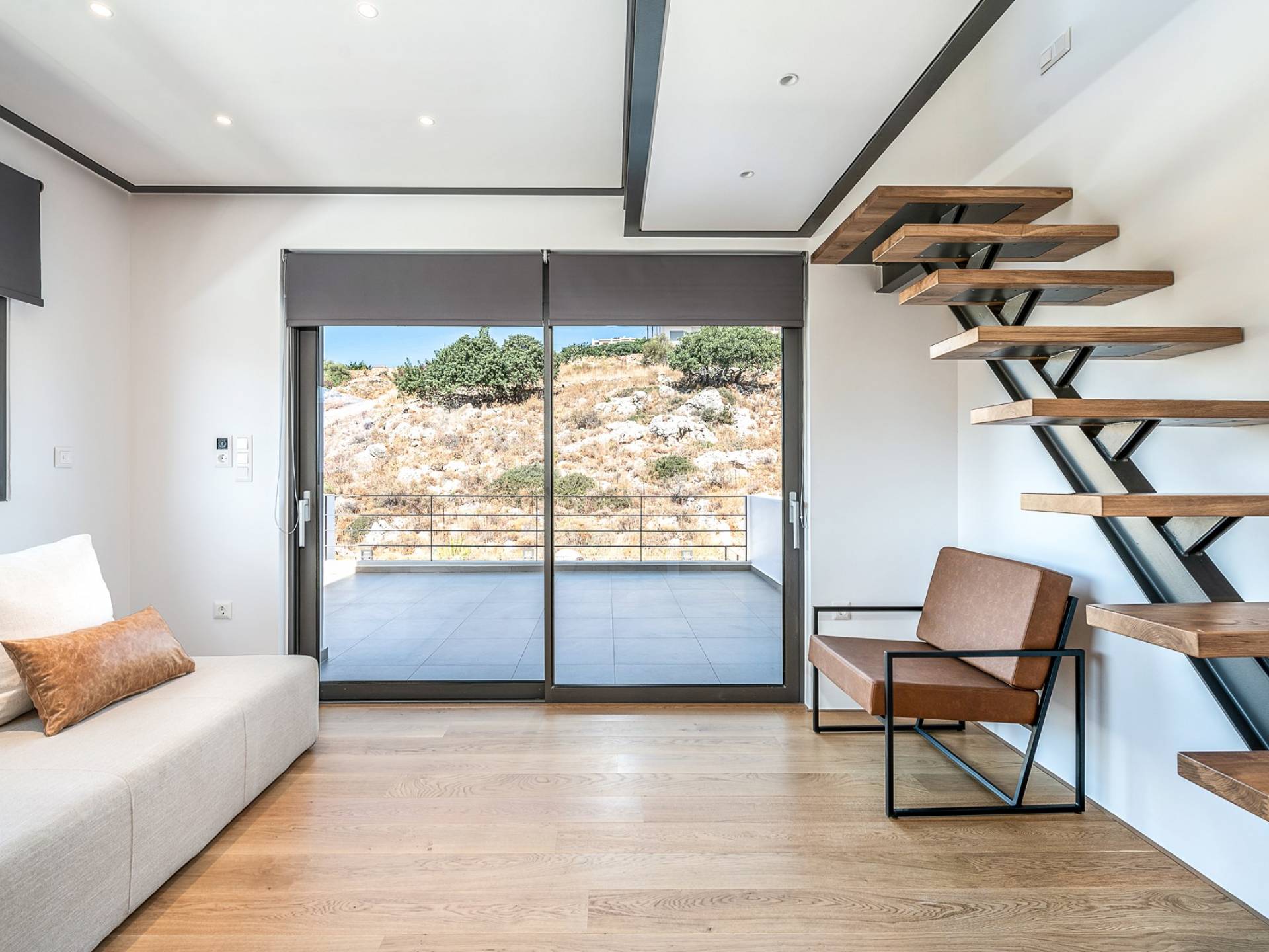 Seametry Loft ist hell und geräumig, was seine entspannende, minimalistische Dekoration betont. Das Seametry Loft bietet dank seiner majestätischen hohen Glaswände im Wohnzimmer einen hervorragenden Panoramablick auf die Berge und das Meer und vermittelt ein Gefühl von Luxus und Überlegenheit.