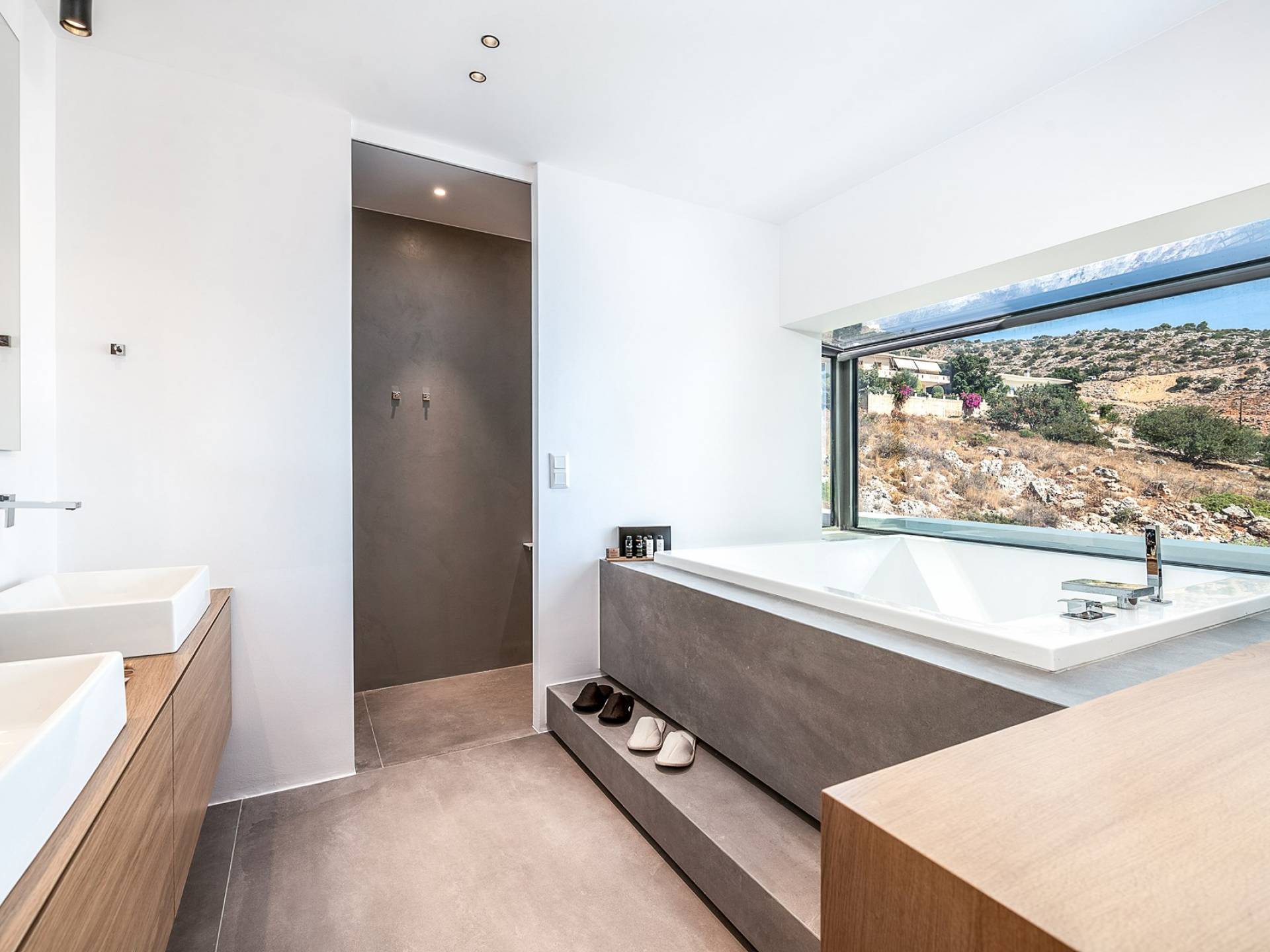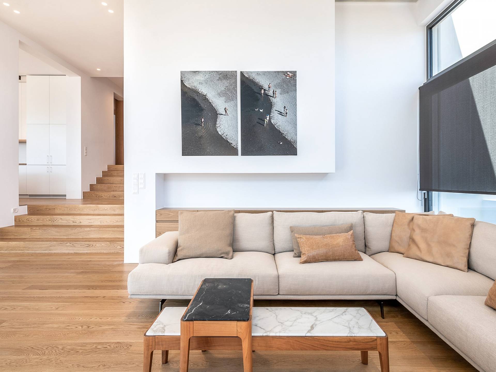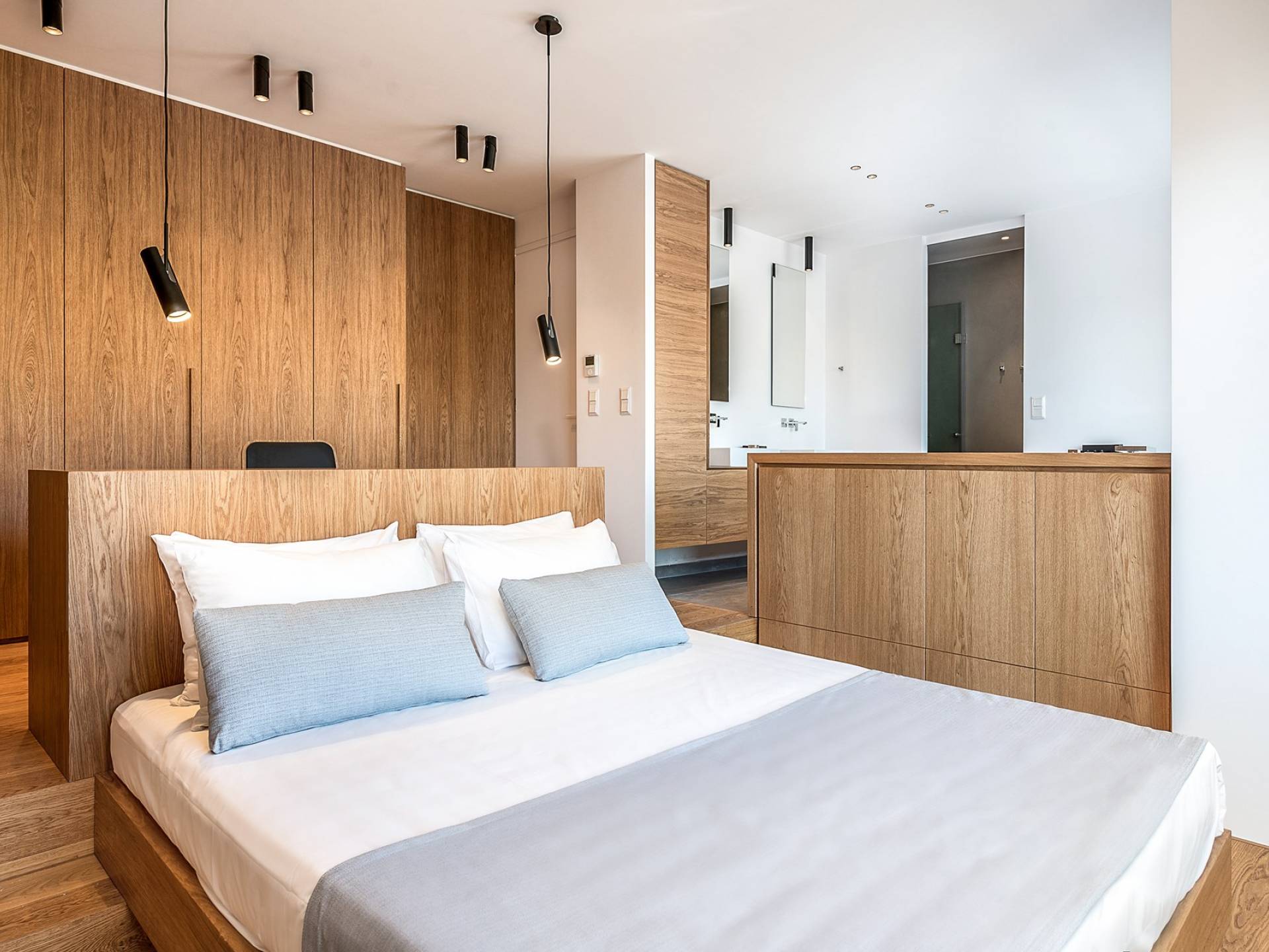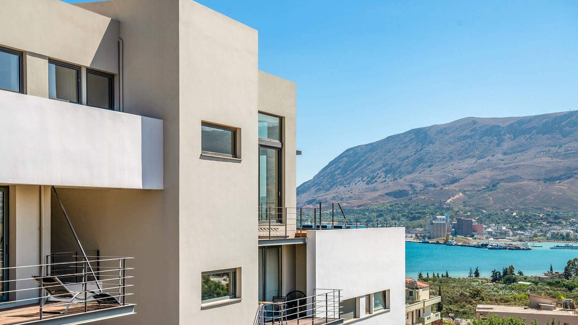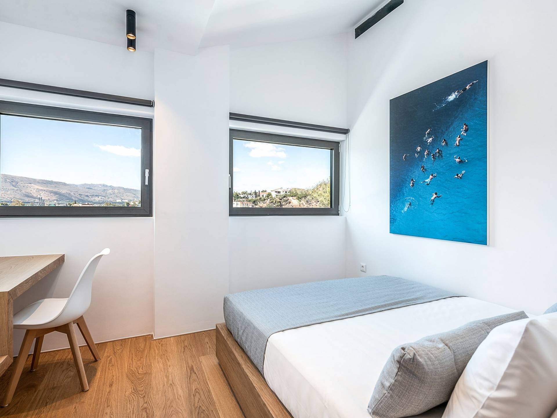 Seametry Loft ist hell und geräumig, was seine entspannende, minimalistische Dekoration betont. Das Seametry Loft bietet dank seiner majestätischen hohen Glaswände im Wohnzimmer einen hervorragenden Panoramablick auf die Berge und das Meer und vermittelt ein Gefühl von Luxus und Überlegenheit.