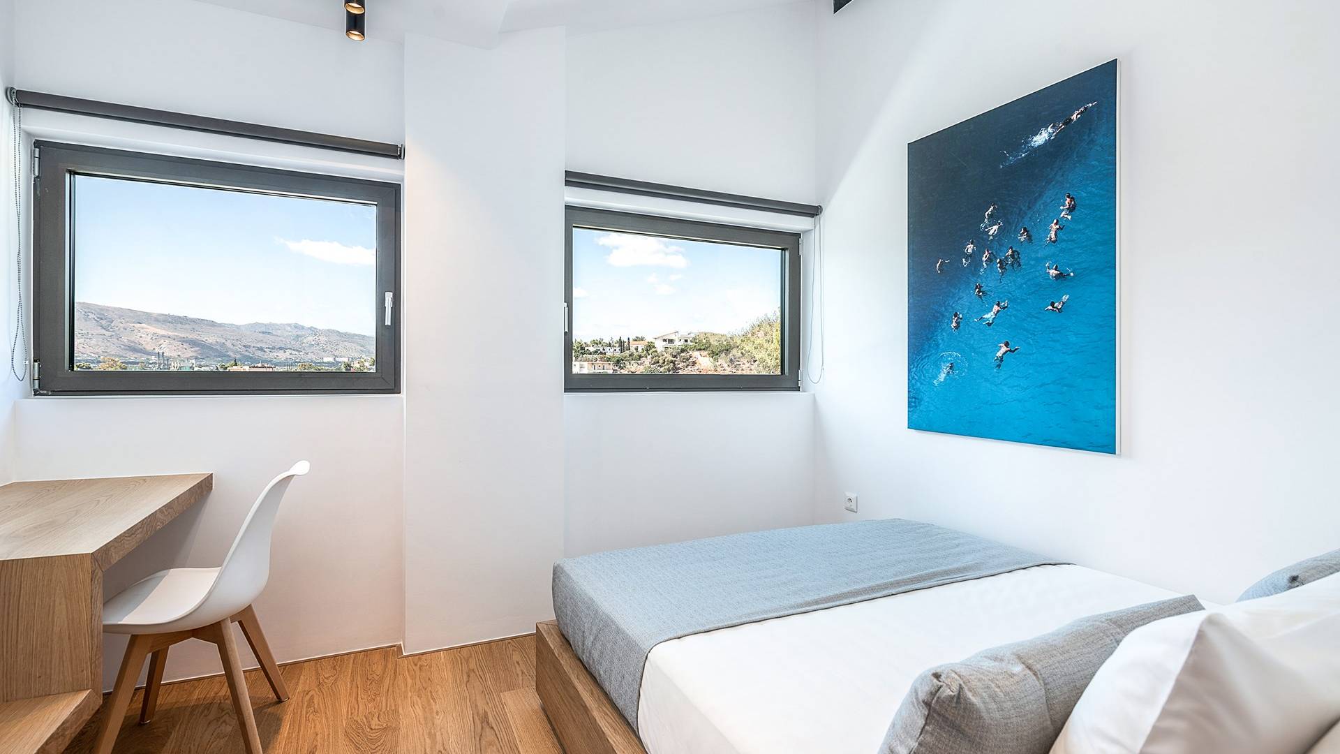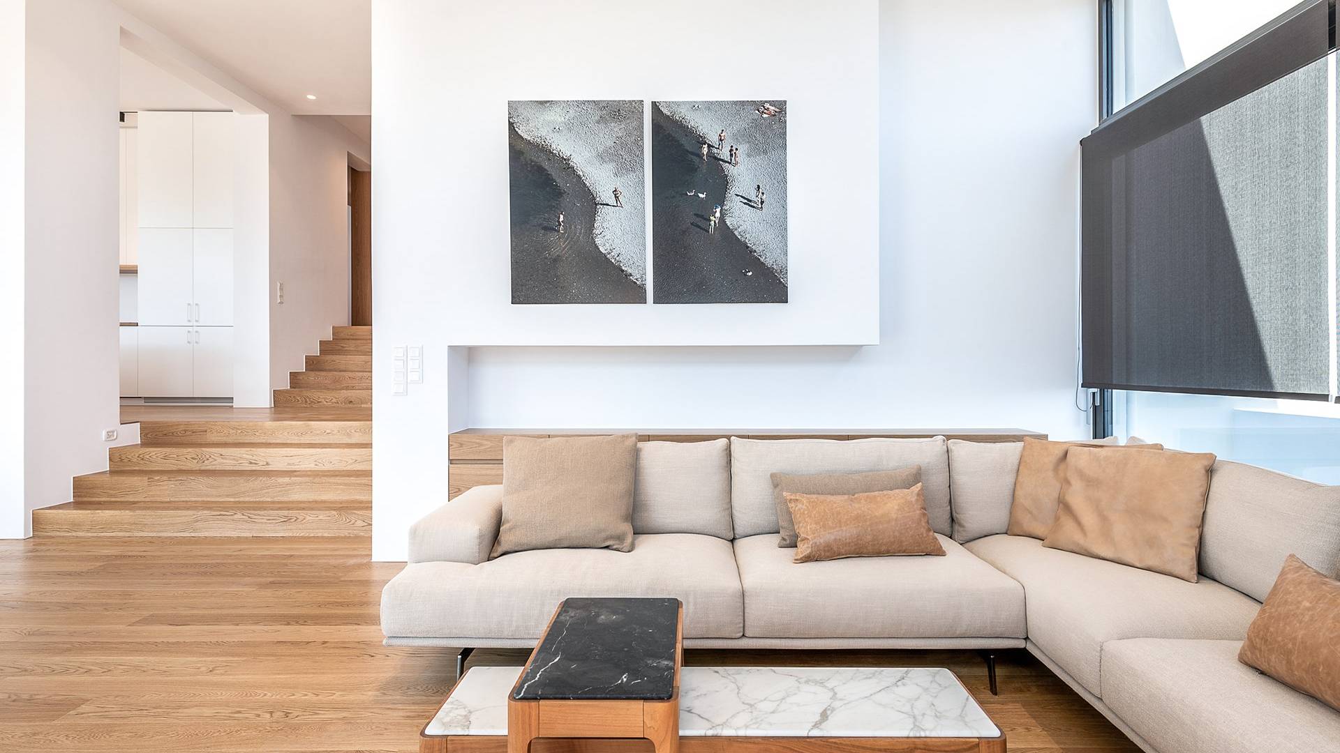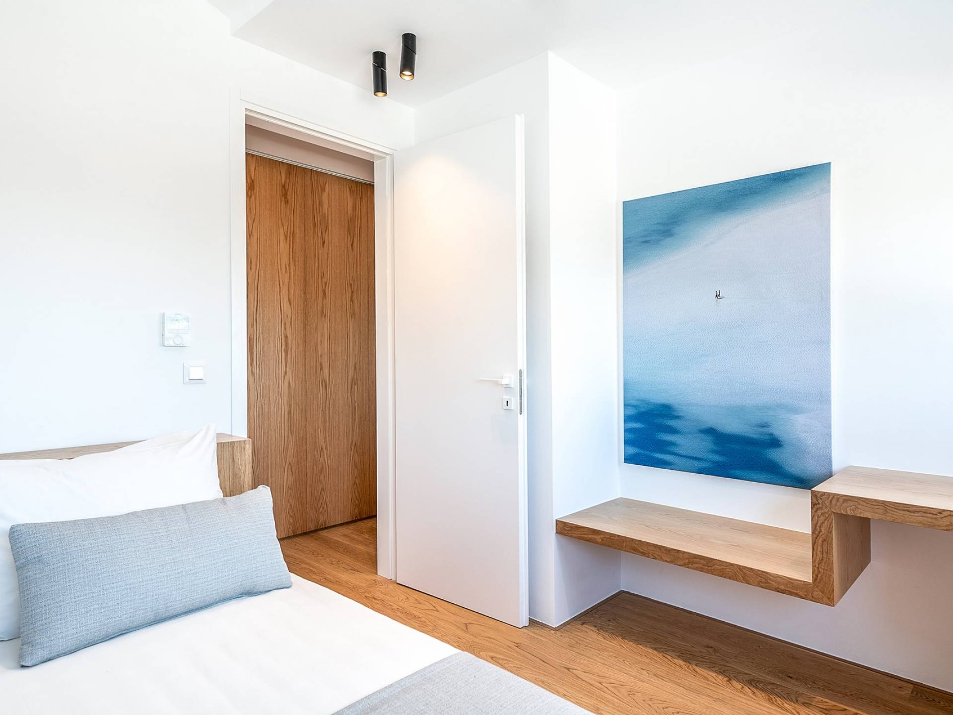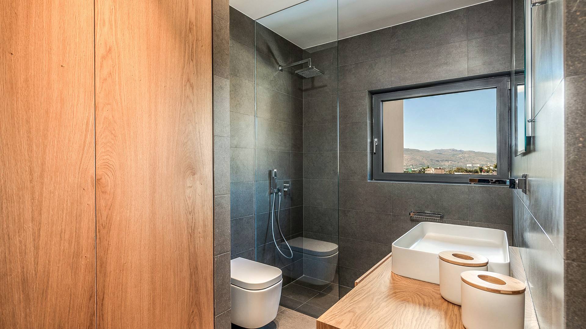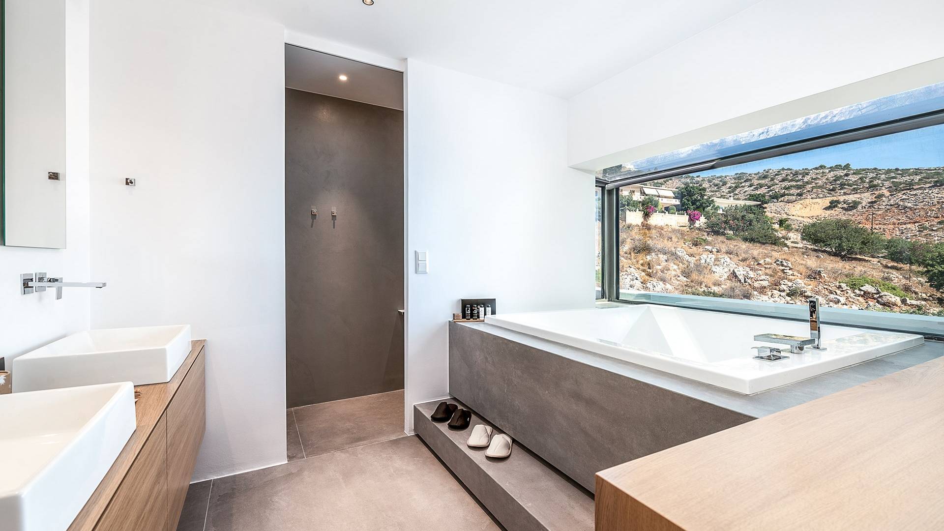 Seametry Loft ist hell und geräumig, was seine entspannende, minimalistische Dekoration betont. Das Seametry Loft bietet dank seiner majestätischen hohen Glaswände im Wohnzimmer einen hervorragenden Panoramablick auf die Berge und das Meer und vermittelt ein Gefühl von Luxus und Überlegenheit.