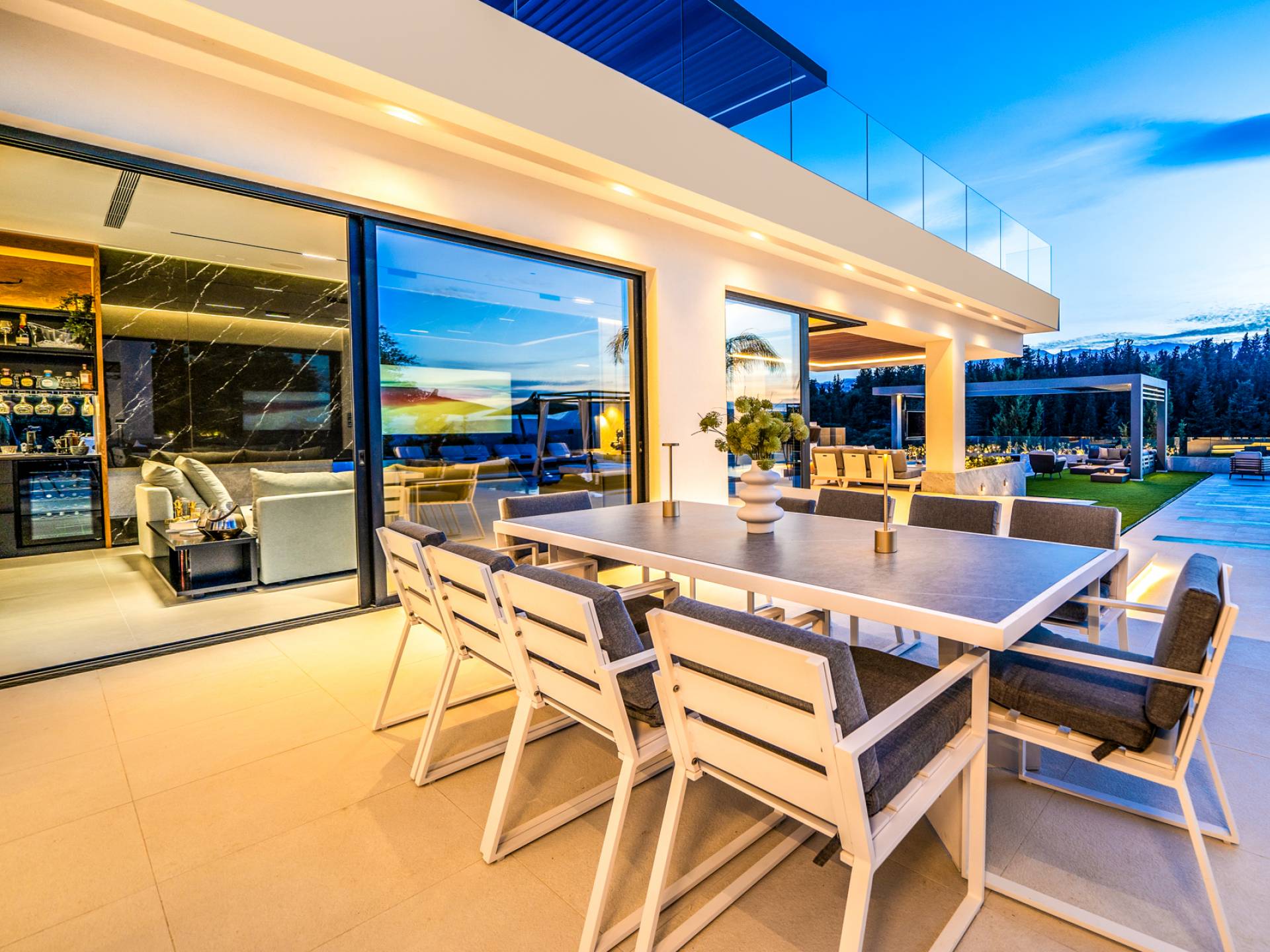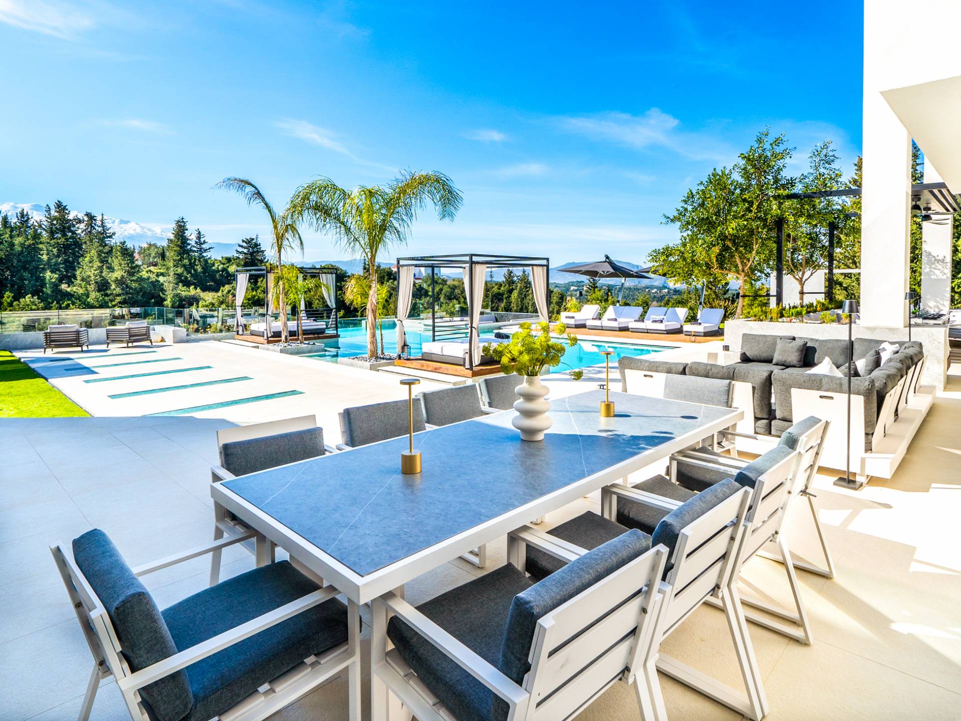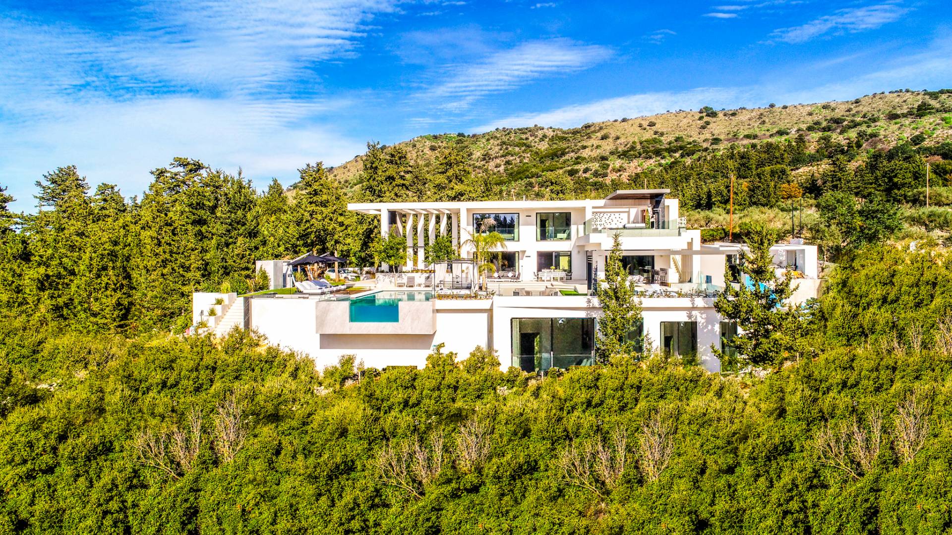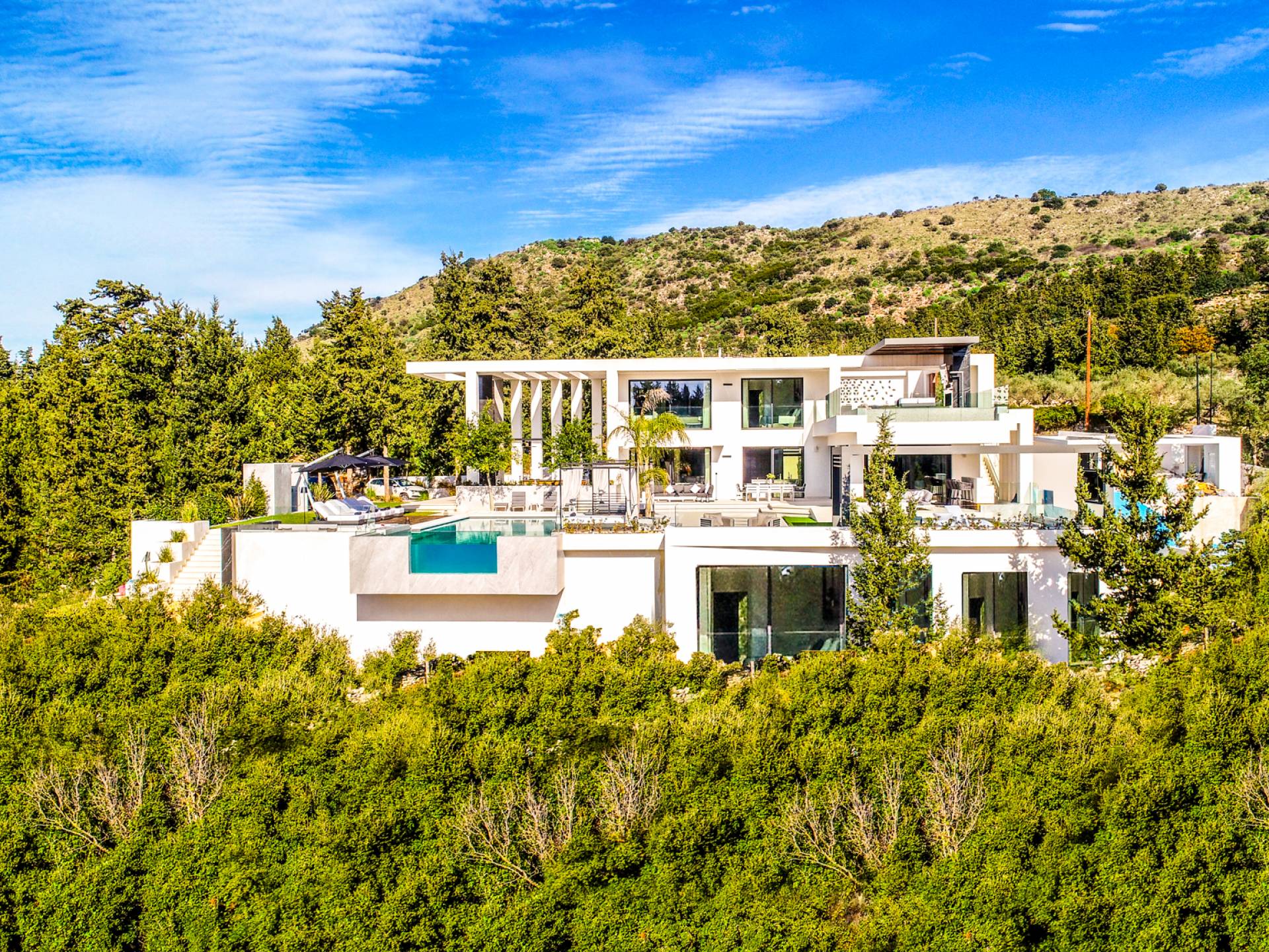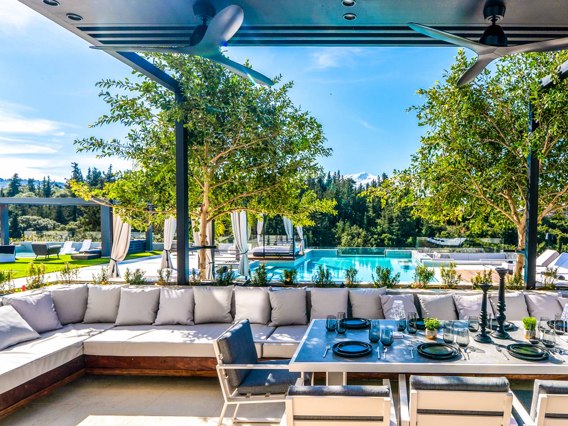 Außen: Die One Villa verfügt über eine Vielzahl großzügiger Terrassen, auf denen die Gäste speisen, faulenzen, sich sonnen und den sensationellen Blick auf das Meer und die Landschaft genießen können.