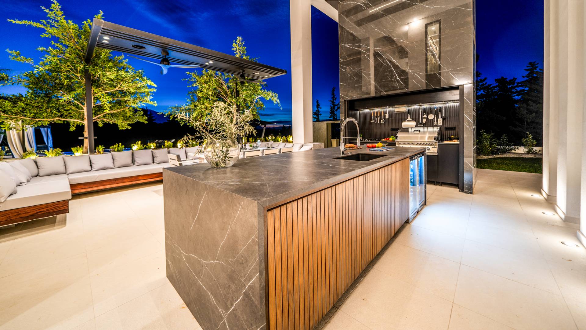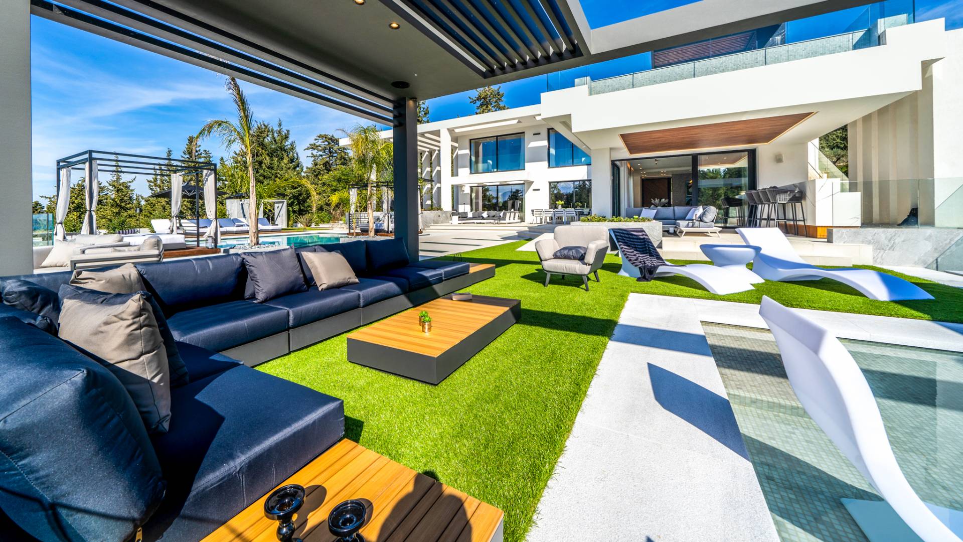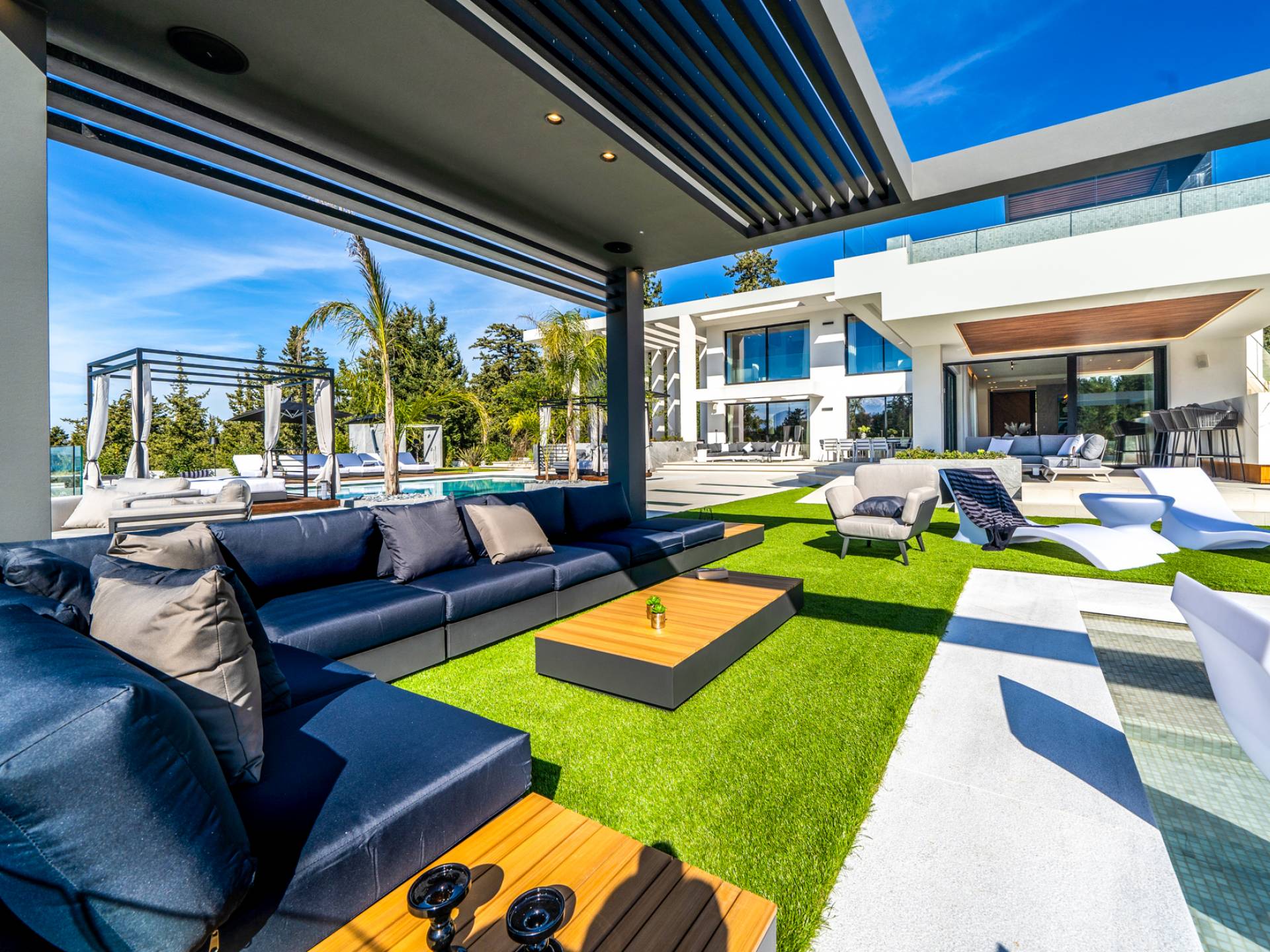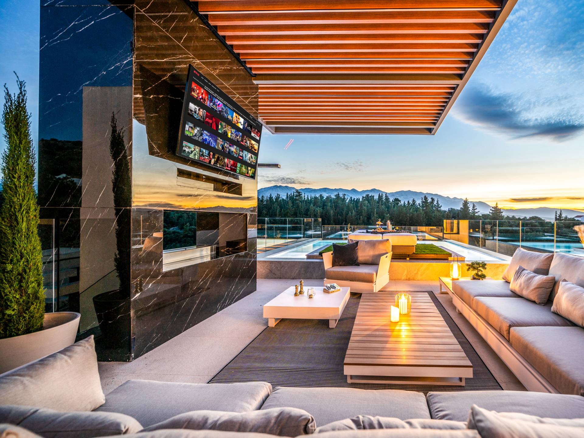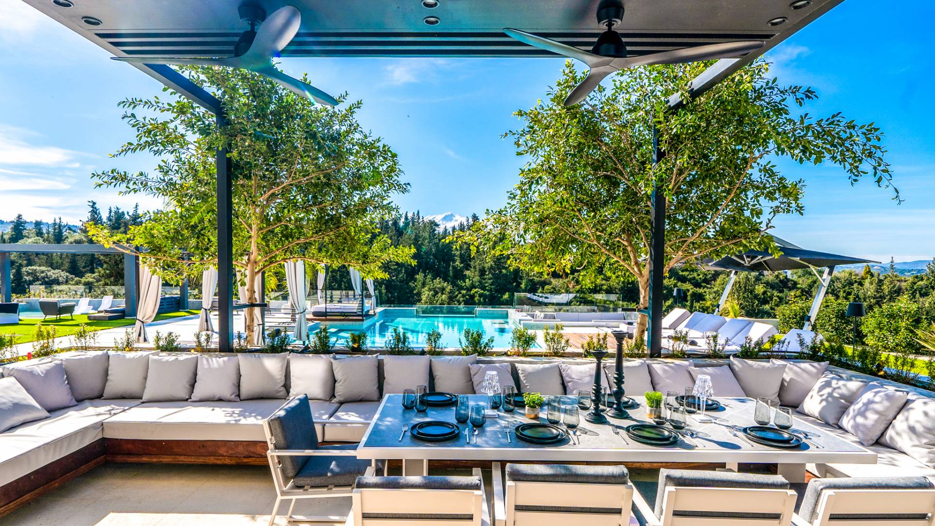 Außen: Die One Villa verfügt über eine Vielzahl großzügiger Terrassen, auf denen die Gäste speisen, faulenzen, sich sonnen und den sensationellen Blick auf das Meer und die Landschaft genießen können.