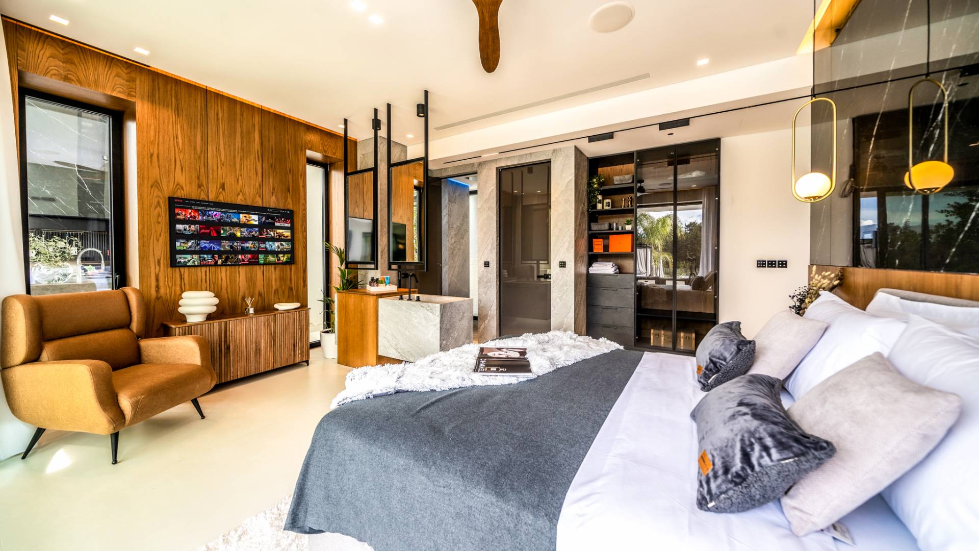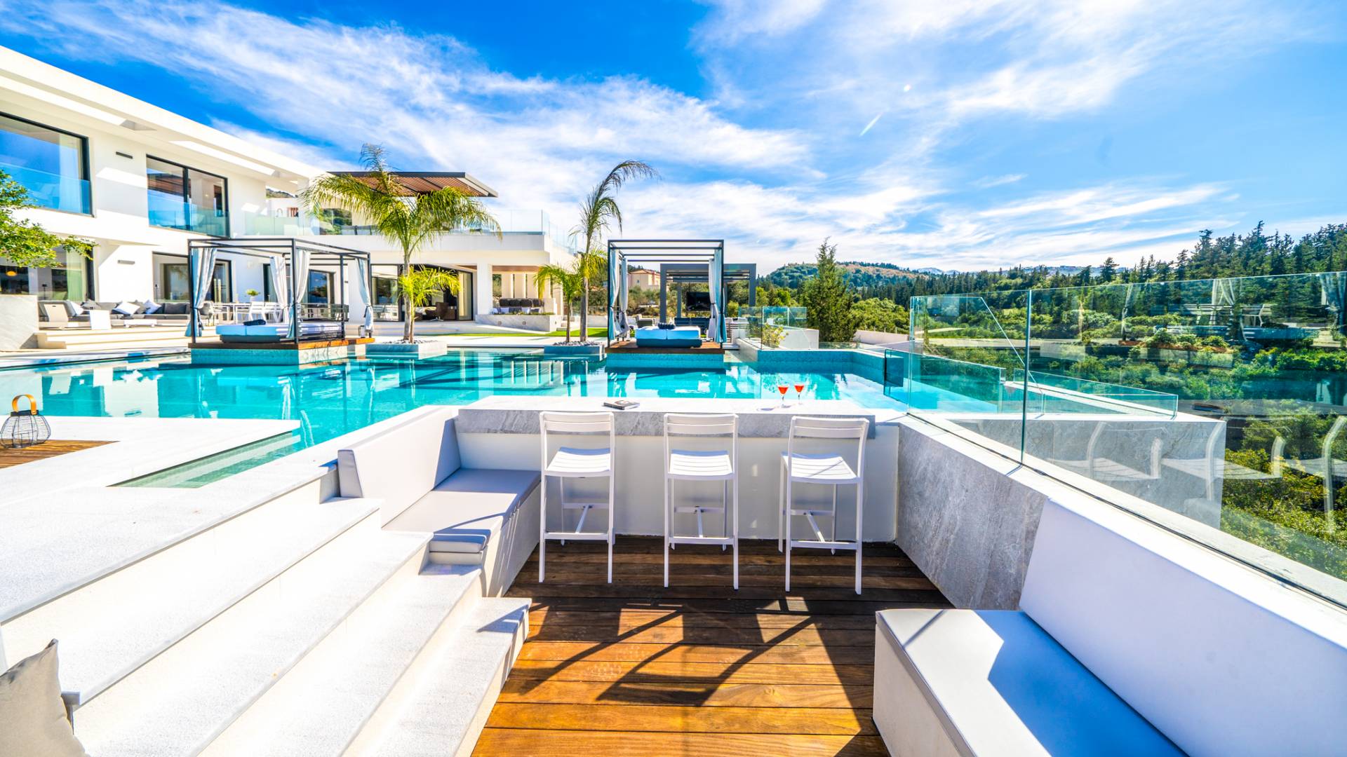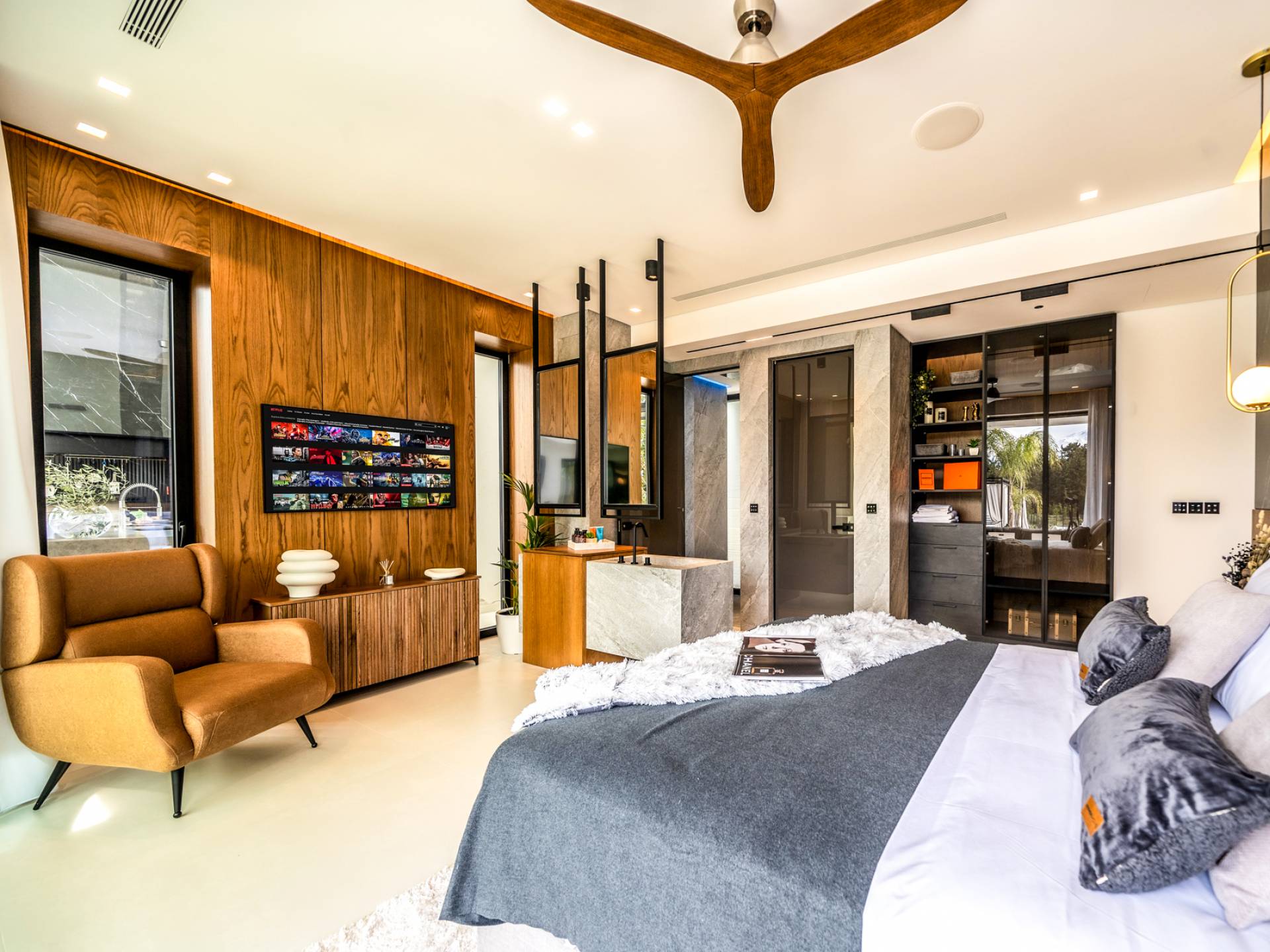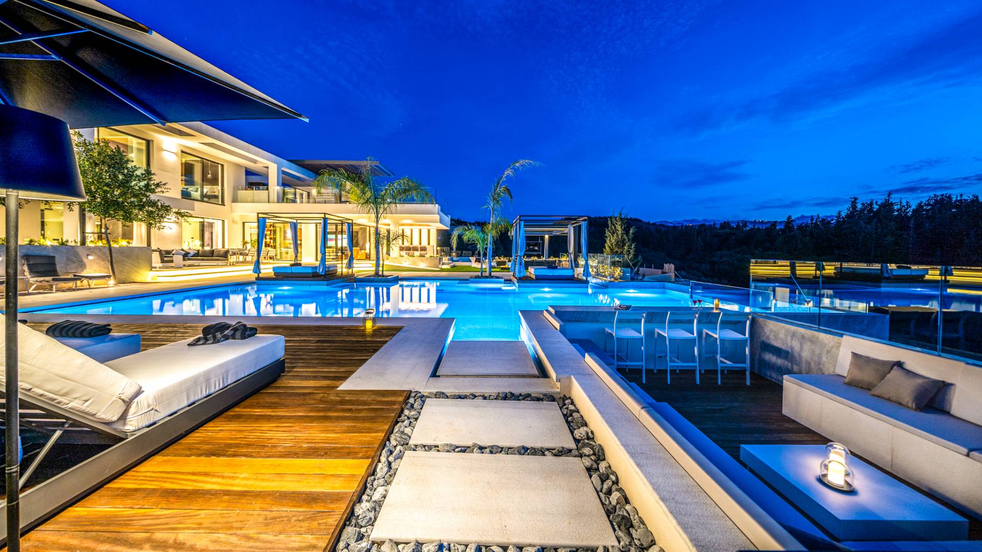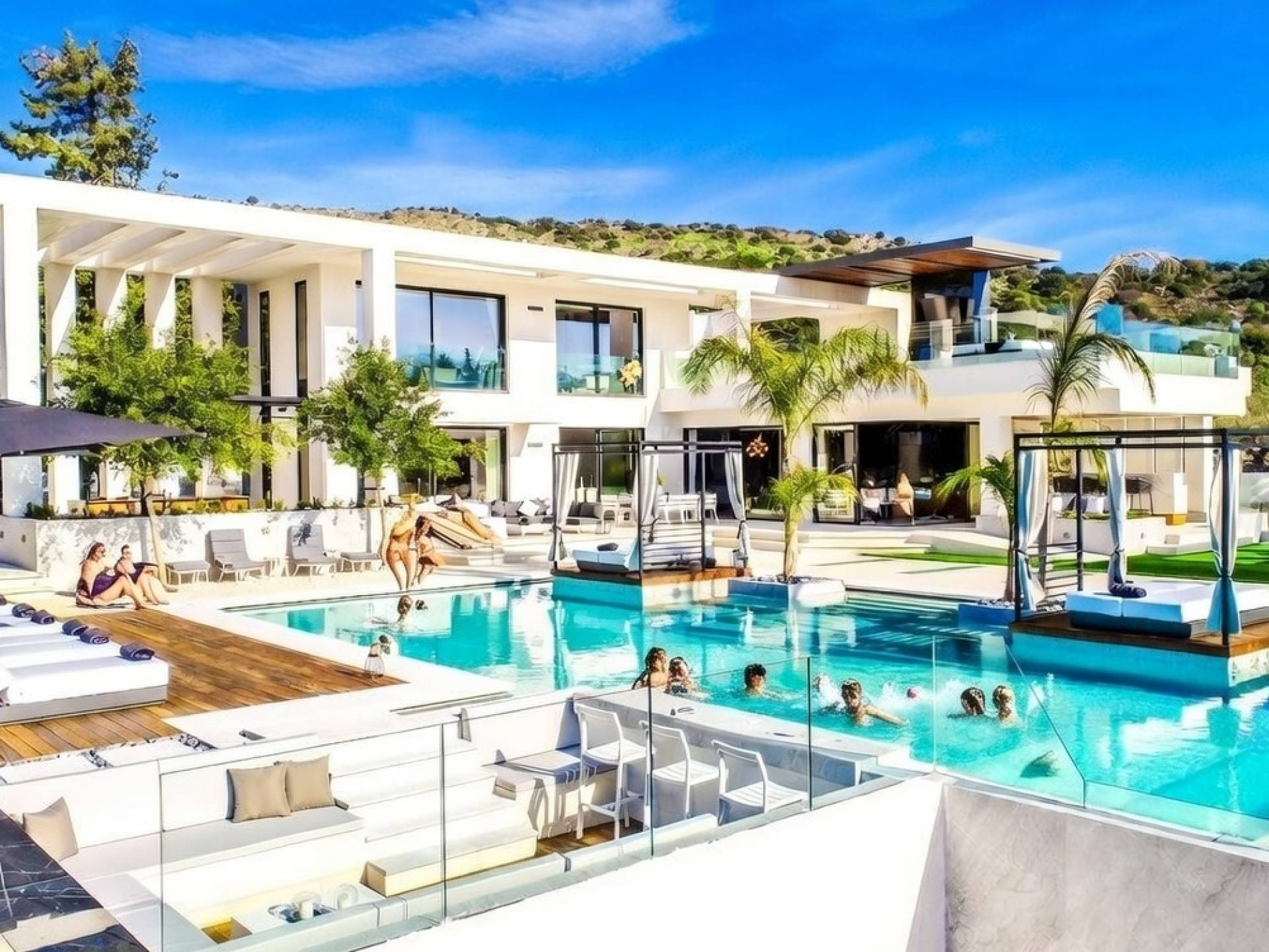 Diese exquisite Unterkunft auf 3 Ebenen verkörpert die Essenz stilvollen Wohnens und verfügt über 3 luxuriöse Schlafzimmer mit eigenem Bad sowie 3 Swimmingpools mit Whirlpool und Heimkino im Freien und sorgt für einen unvergesslichen Aufenthalt für bis zu 6 Gäste. Die Annehmlichkeiten der Luxusmiete decken selbst den anspruchsvollsten Besucher ab und bieten allen Komfort, den man von einer modernen Luxusresidenz erwarten würde, und noch mehr. Alles wurde entworfen und gefertigt, um Ihnen ein luxuriöses und unvergessliches Aufenthaltserlebnis zu bieten.