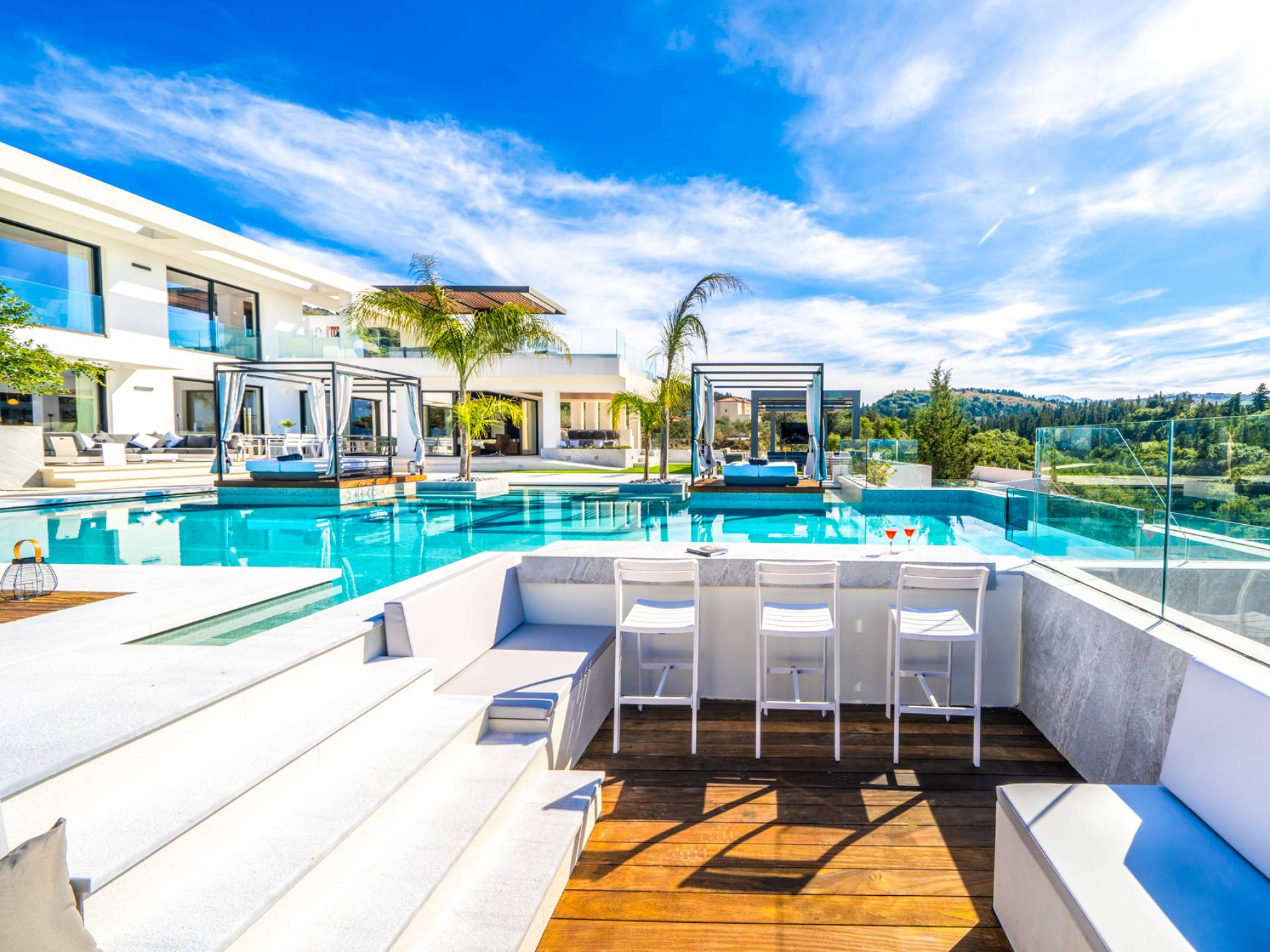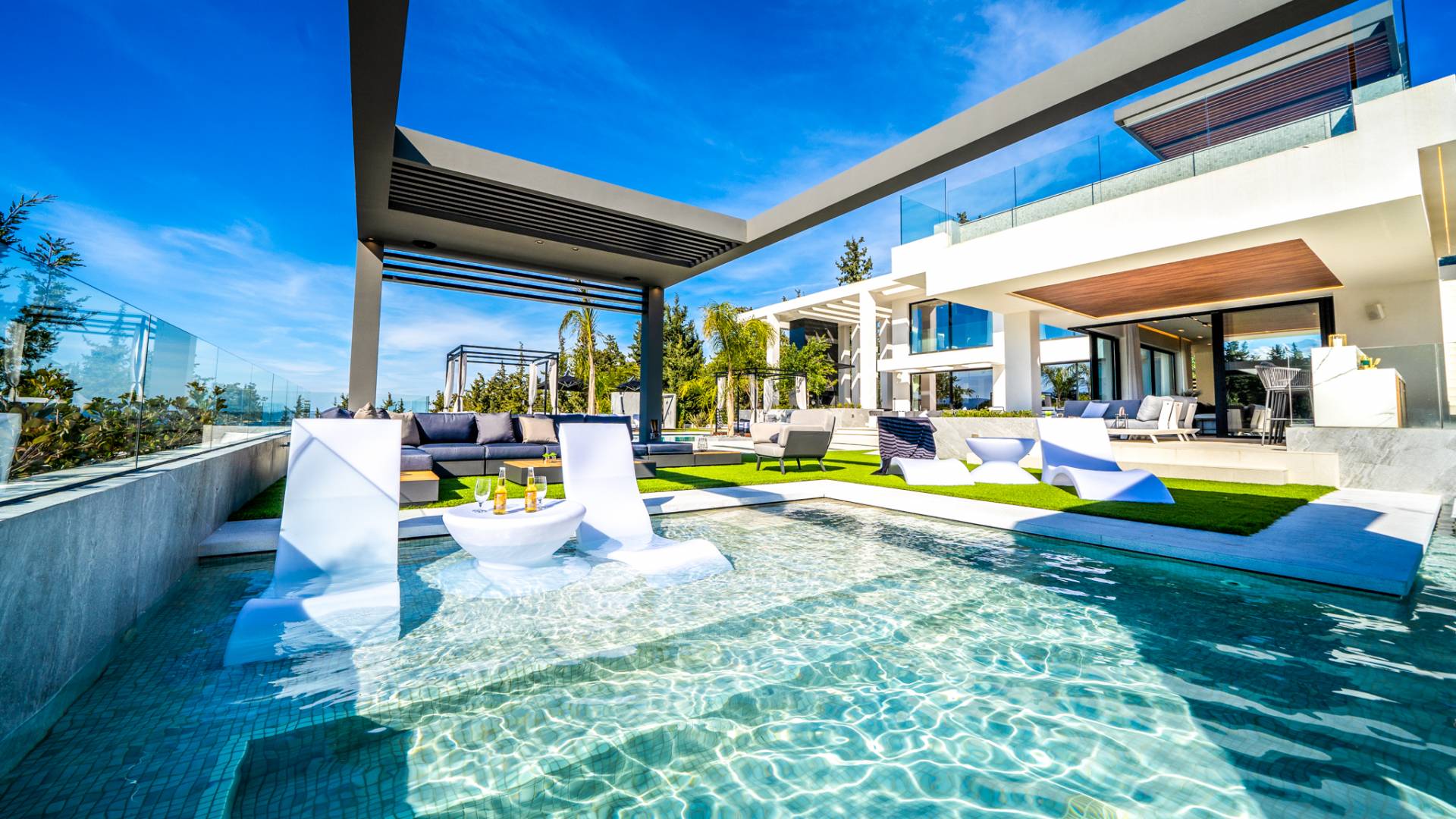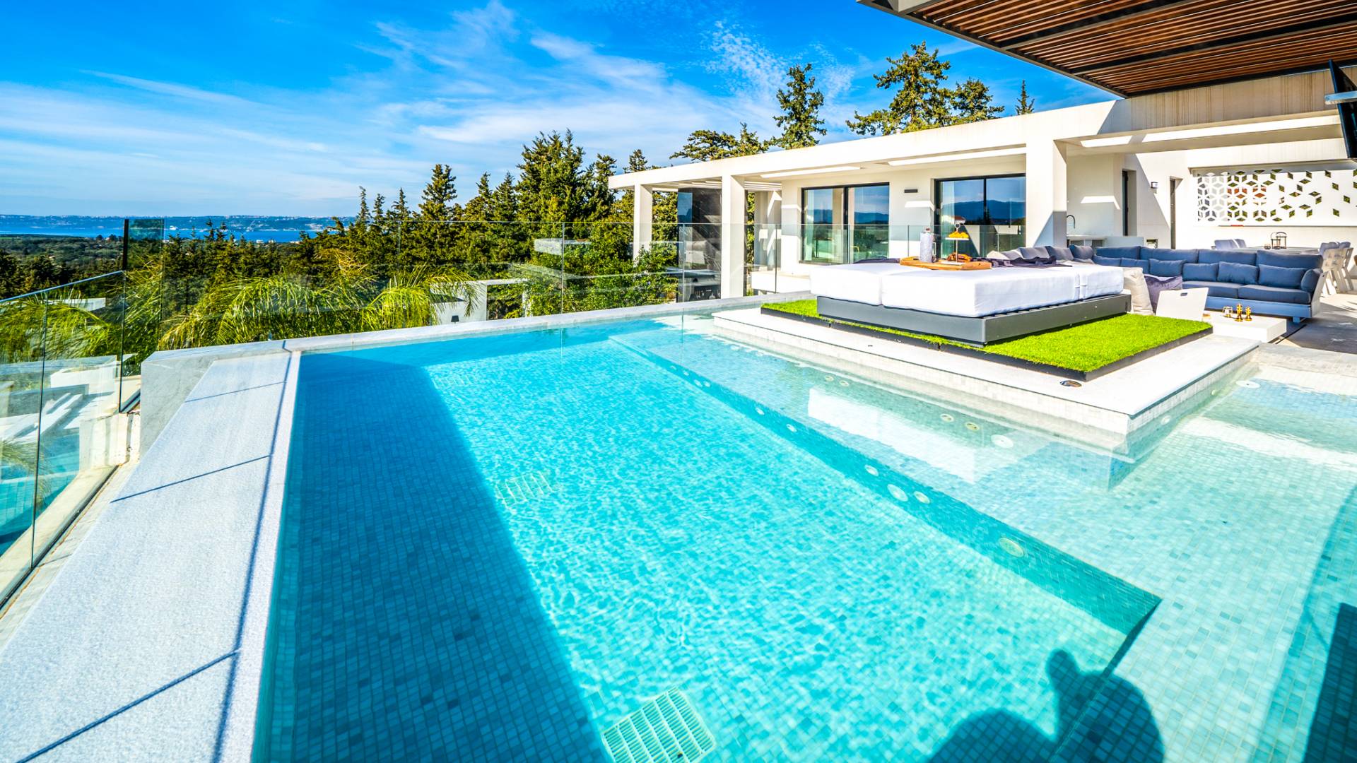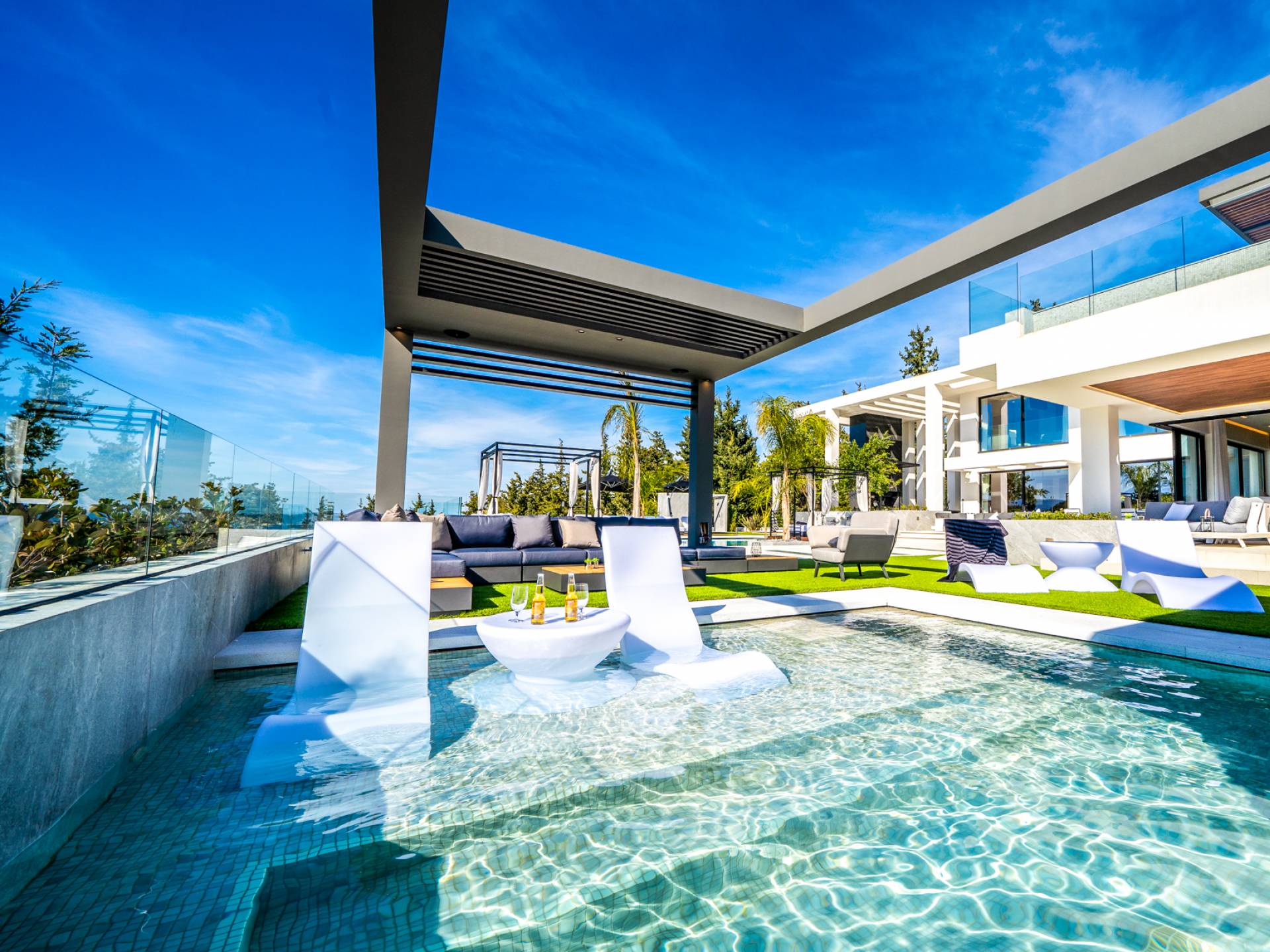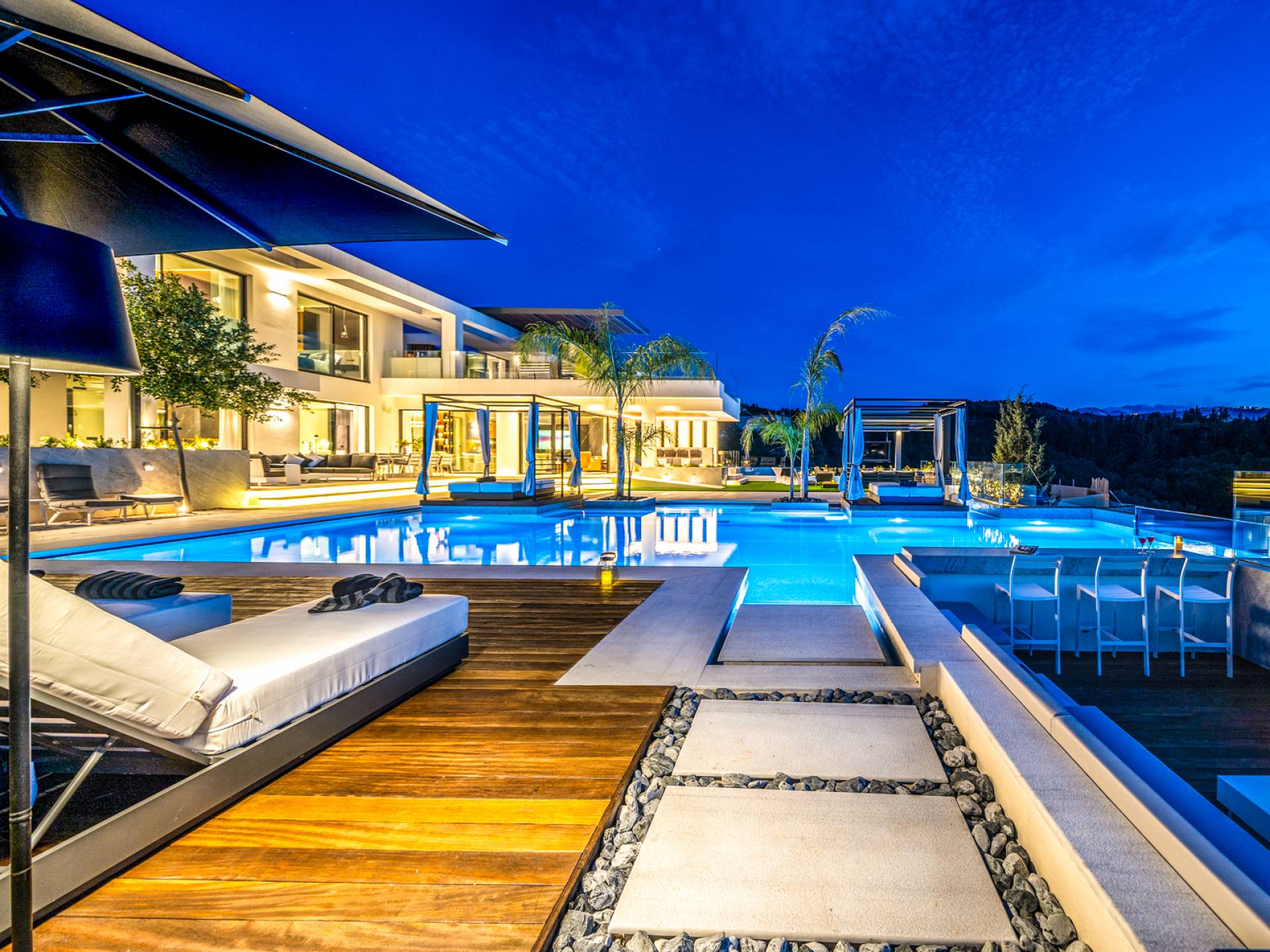 Diese exquisite Unterkunft auf 3 Ebenen verkörpert die Essenz stilvollen Wohnens und verfügt über 3 luxuriöse Schlafzimmer mit eigenem Bad sowie 3 Swimmingpools mit Whirlpool und Heimkino im Freien und sorgt für einen unvergesslichen Aufenthalt für bis zu 6 Gäste. Die Annehmlichkeiten der Luxusmiete decken selbst den anspruchsvollsten Besucher ab und bieten allen Komfort, den man von einer modernen Luxusresidenz erwarten würde, und noch mehr. Alles wurde entworfen und gefertigt, um Ihnen ein luxuriöses und unvergessliches Aufenthaltserlebnis zu bieten.