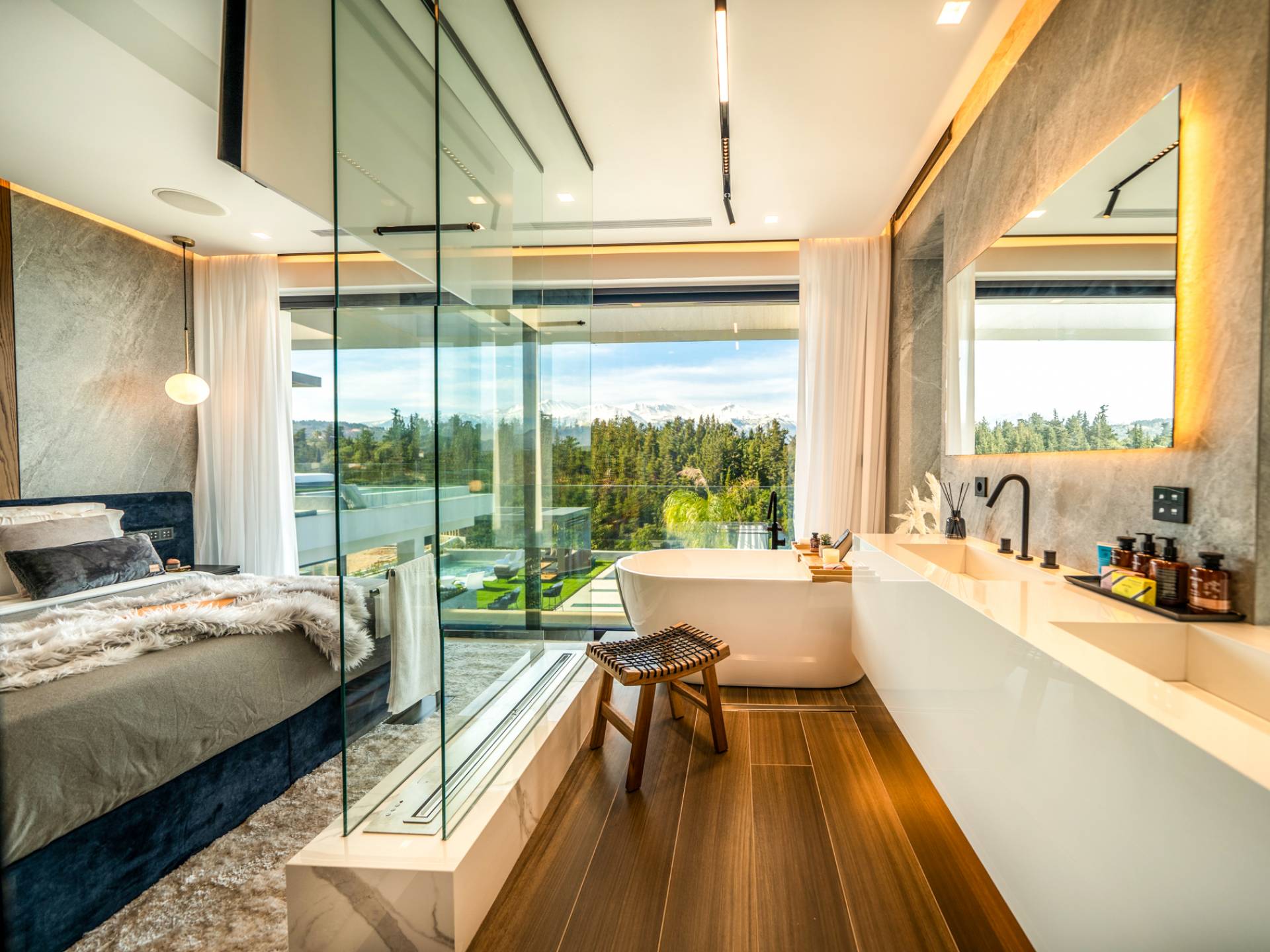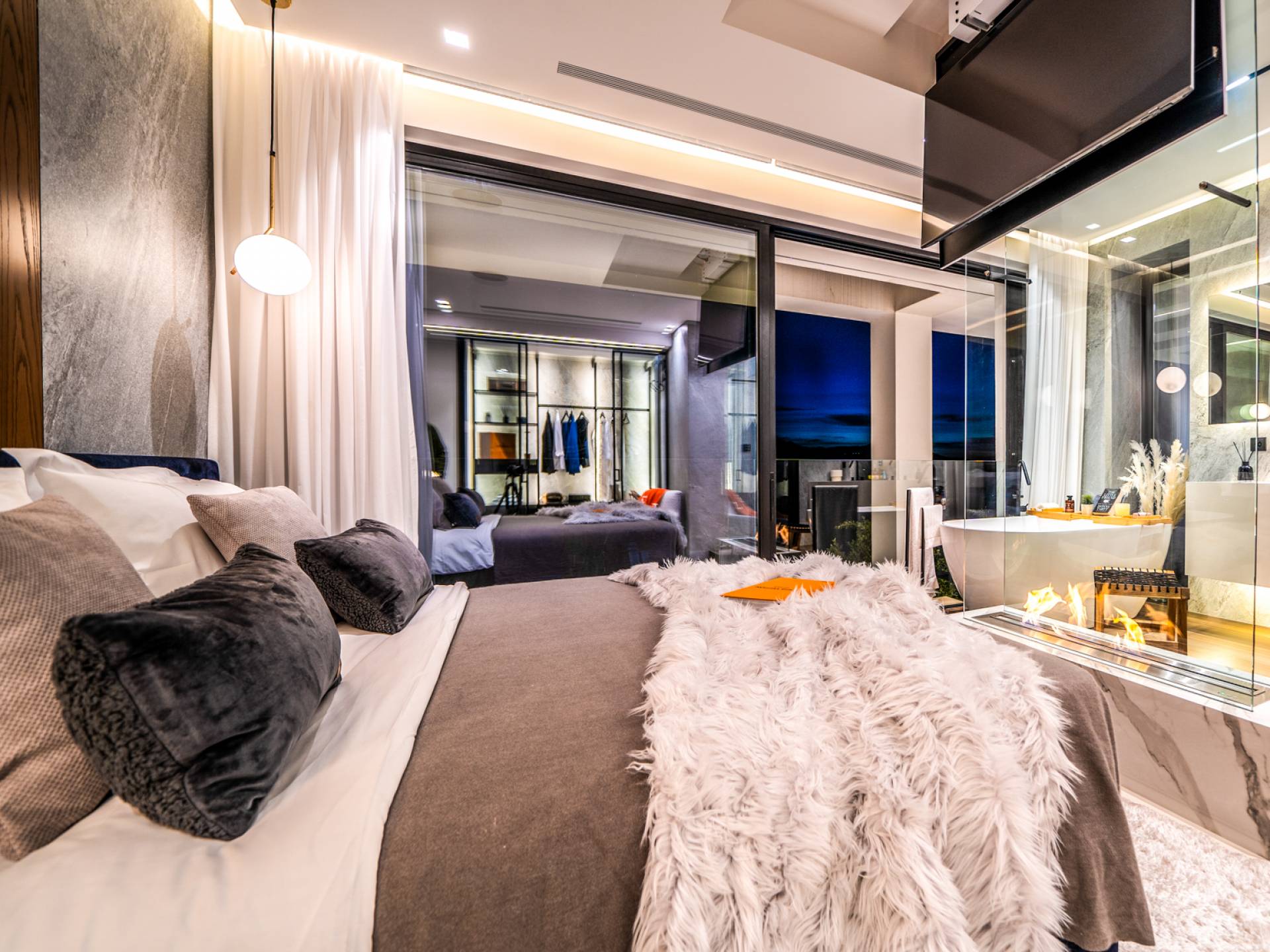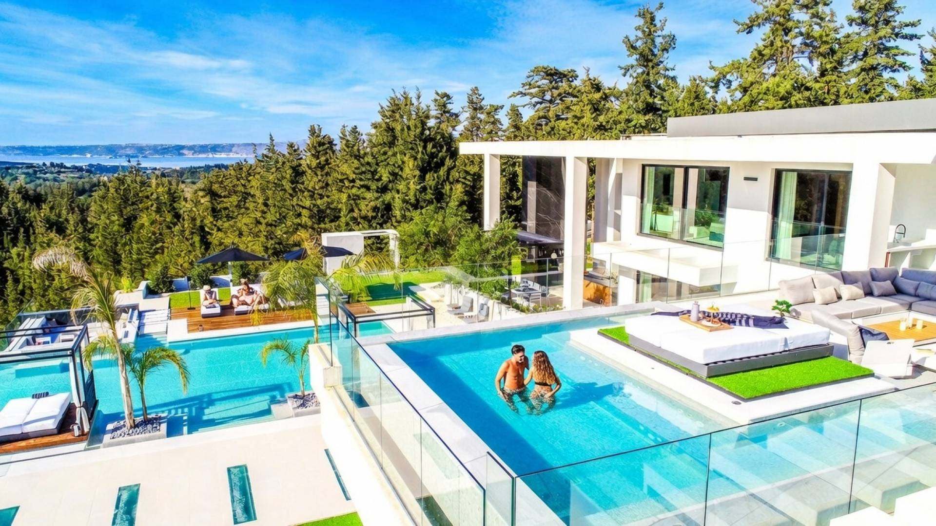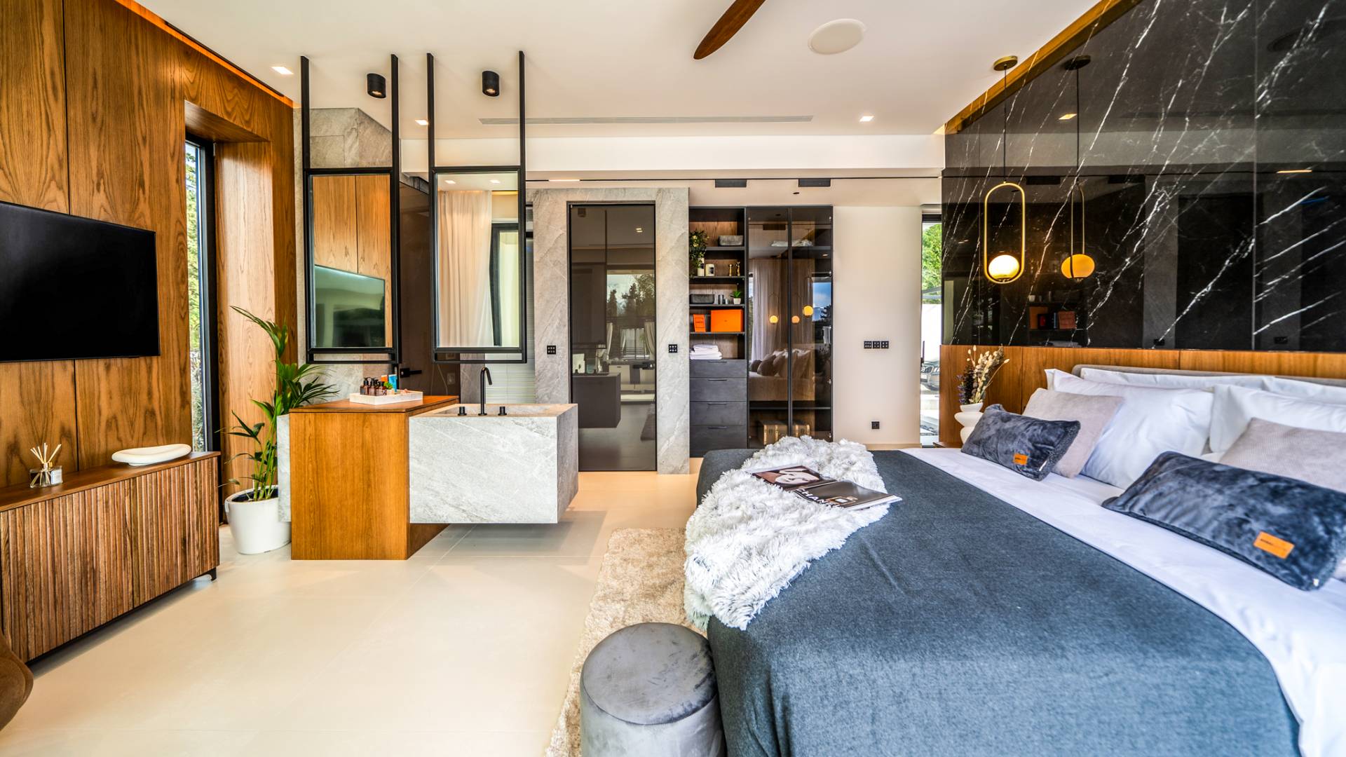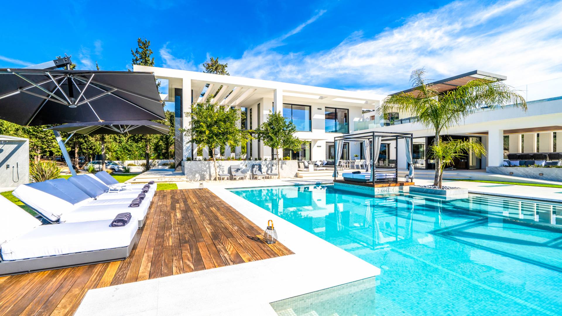 Diese exquisite Unterkunft auf 3 Ebenen verkörpert die Essenz stilvollen Wohnens und verfügt über 3 luxuriöse Schlafzimmer mit eigenem Bad sowie 3 Swimmingpools mit Whirlpool und Heimkino im Freien und sorgt für einen unvergesslichen Aufenthalt für bis zu 6 Gäste. Die Annehmlichkeiten der Luxusmiete decken selbst den anspruchsvollsten Besucher ab und bieten allen Komfort, den man von einer modernen Luxusresidenz erwarten würde, und noch mehr. Alles wurde entworfen und gefertigt, um Ihnen ein luxuriöses und unvergessliches Aufenthaltserlebnis zu bieten.