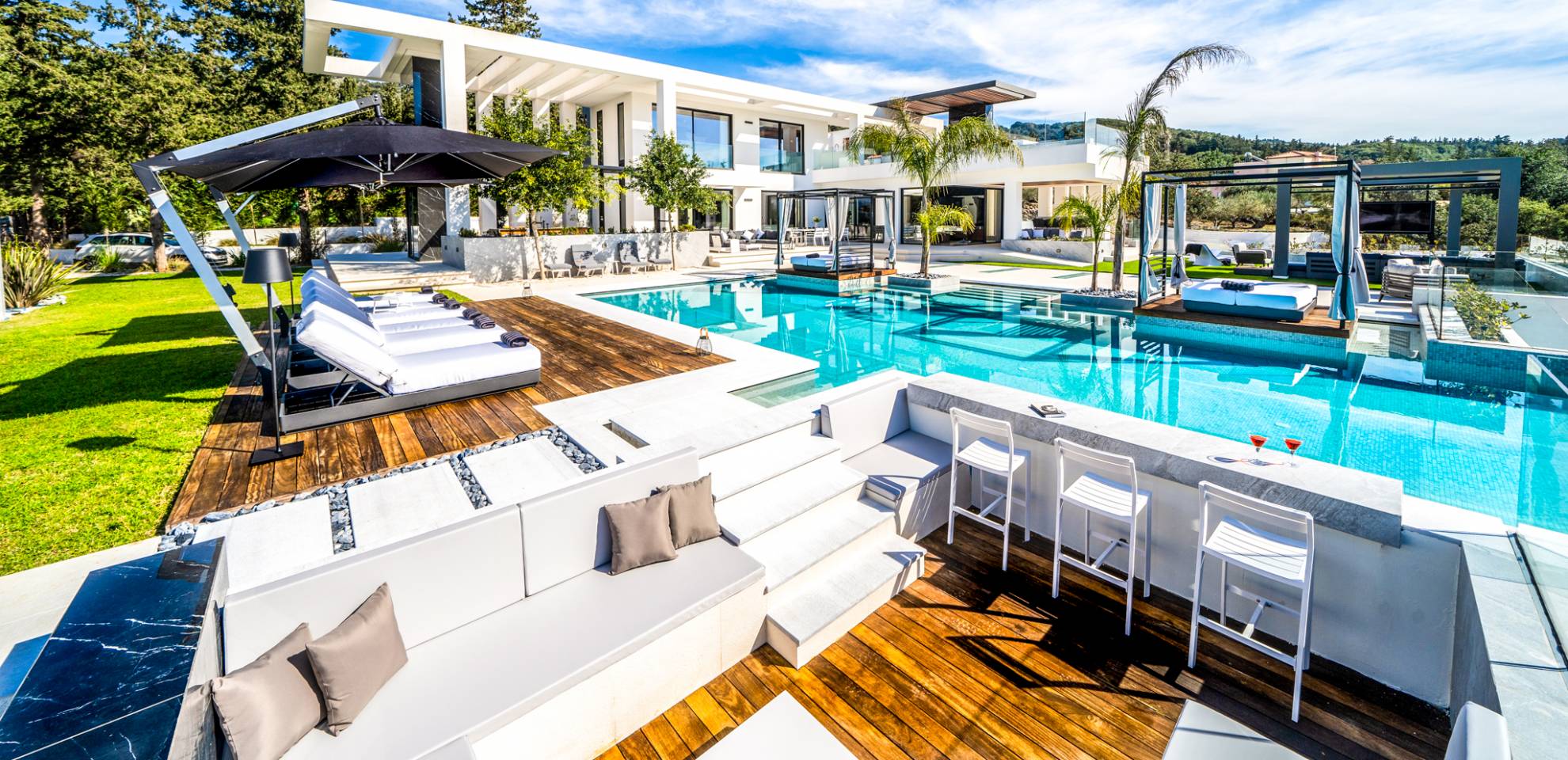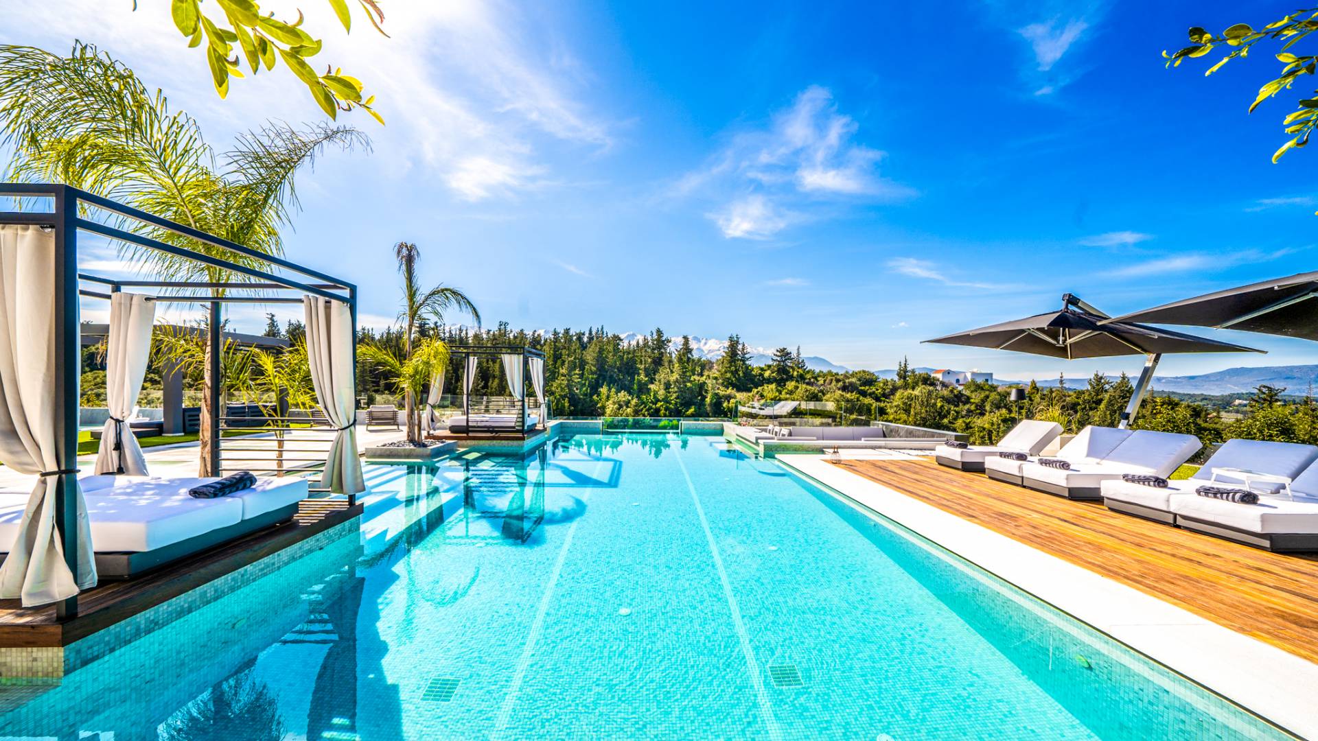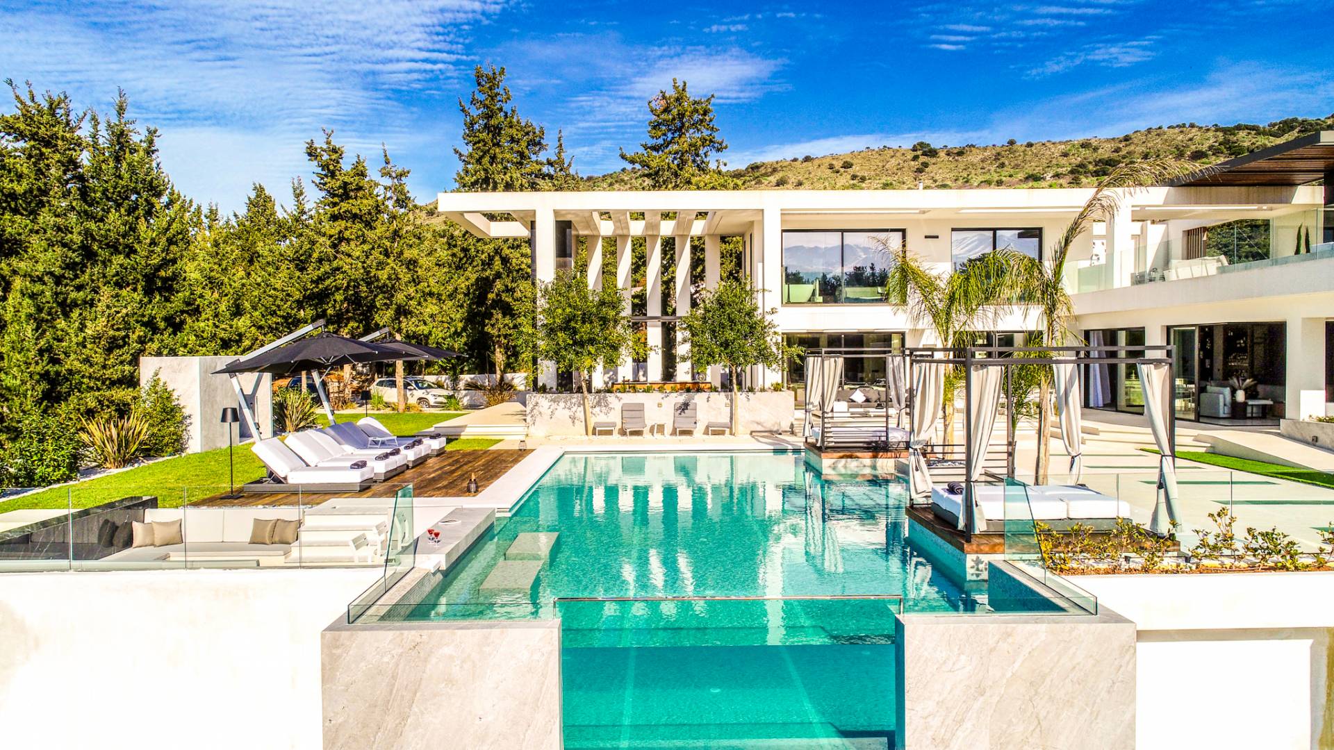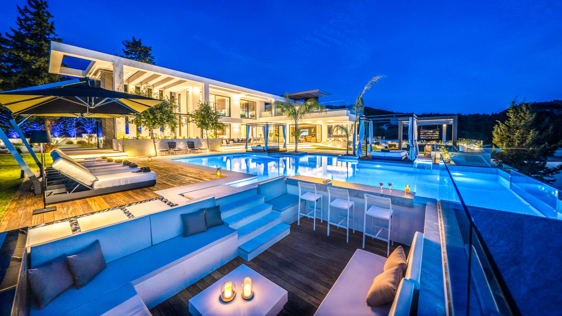 Diese exquisite Unterkunft auf 3 Ebenen verkörpert die Essenz stilvollen Wohnens und verfügt über 3 luxuriöse Schlafzimmer mit eigenem Bad sowie 3 Swimmingpools mit Whirlpool und Heimkino im Freien und sorgt für einen unvergesslichen Aufenthalt für bis zu 6 Gäste. Die Annehmlichkeiten der Luxusmiete decken selbst den anspruchsvollsten Besucher ab und bieten allen Komfort, den man von einer modernen Luxusresidenz erwarten würde, und noch mehr. Alles wurde entworfen und gefertigt, um Ihnen ein luxuriöses und unvergessliches Aufenthaltserlebnis zu bieten.