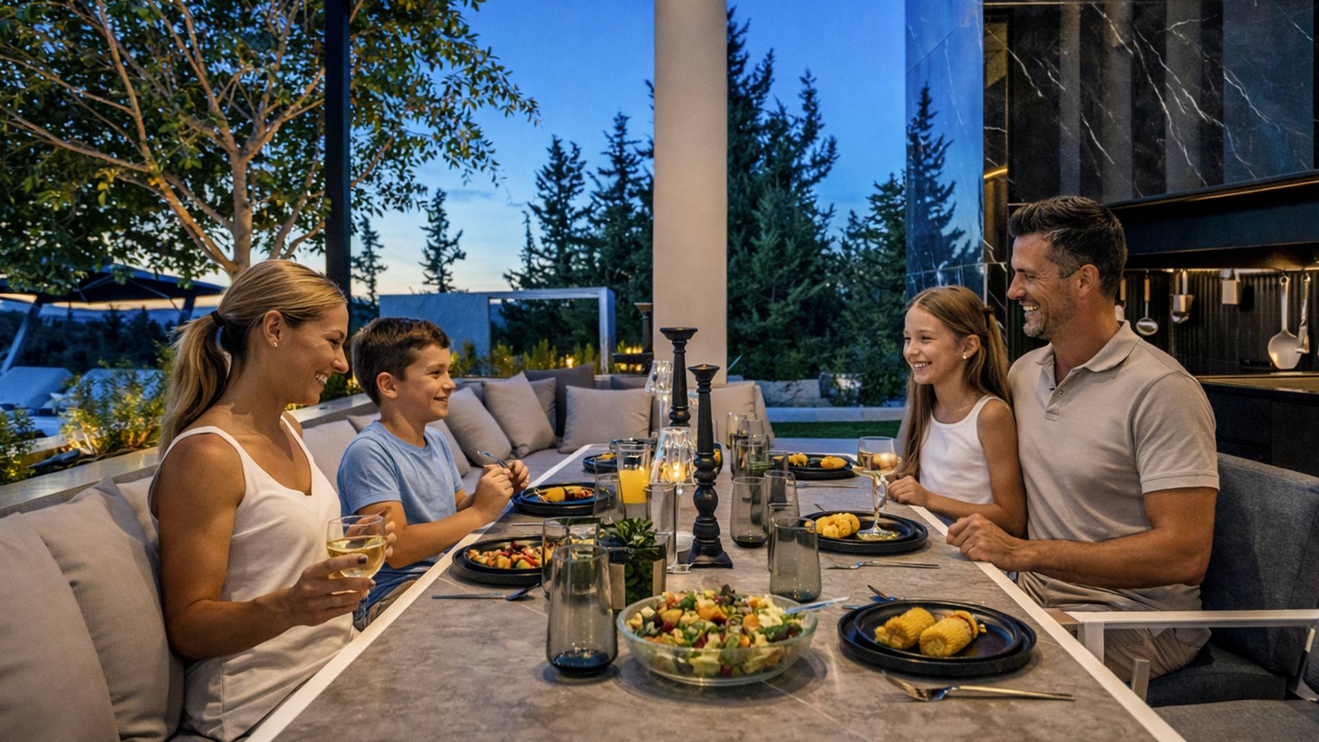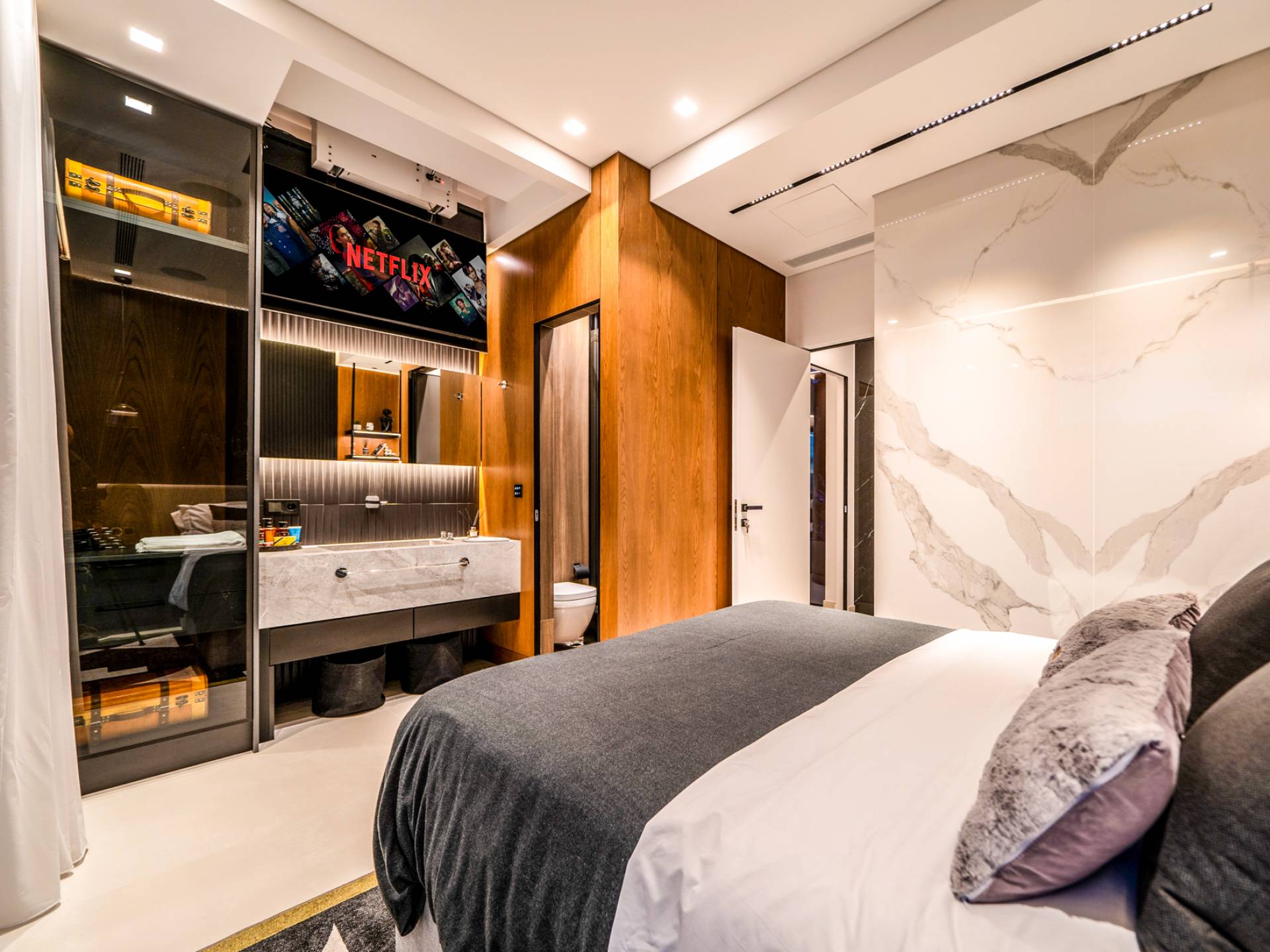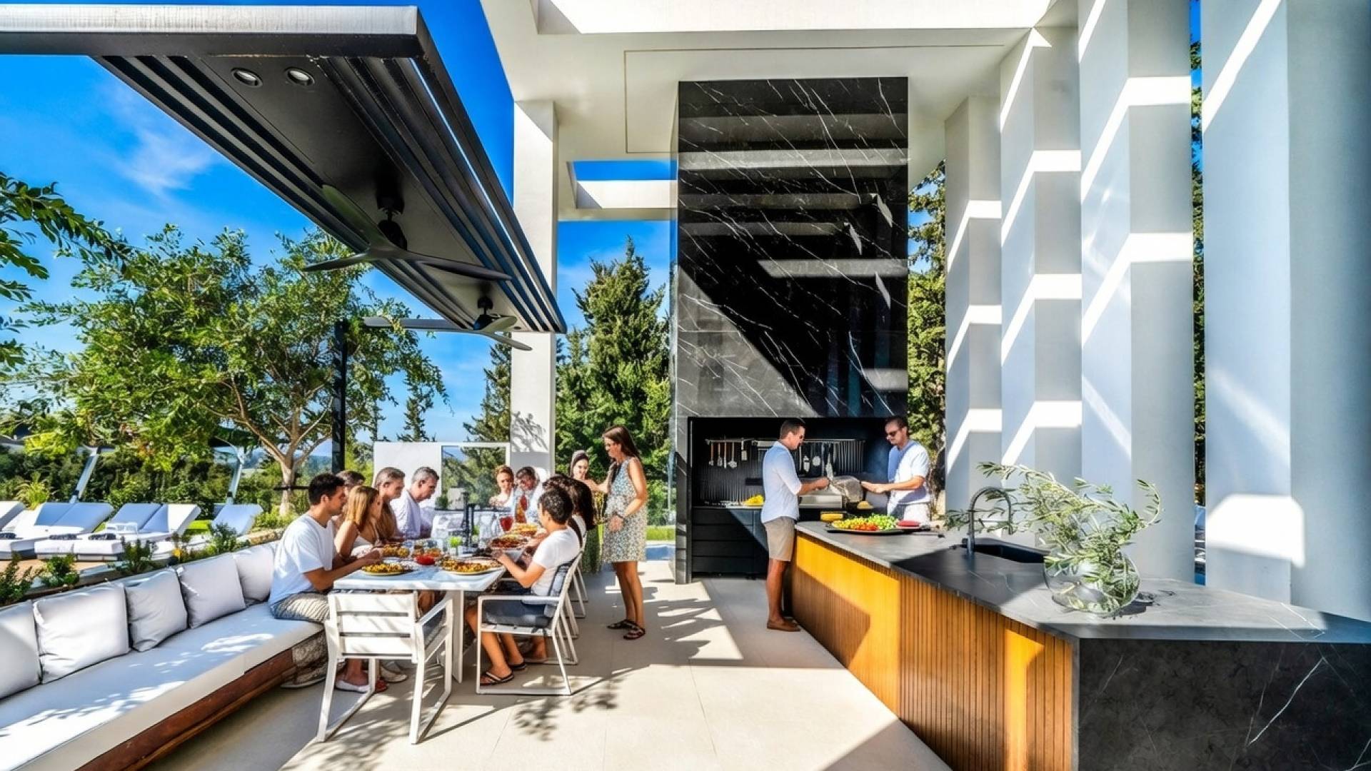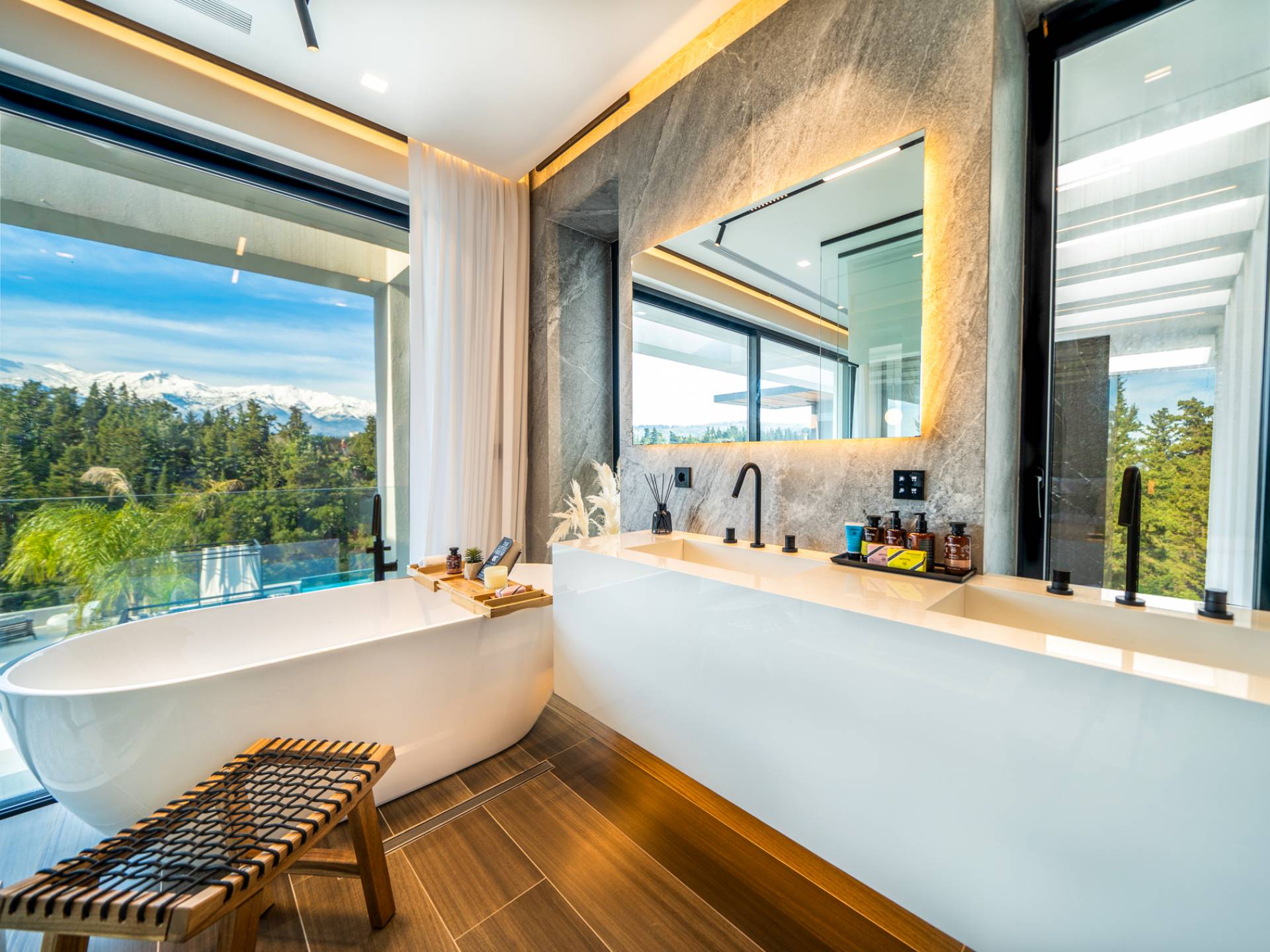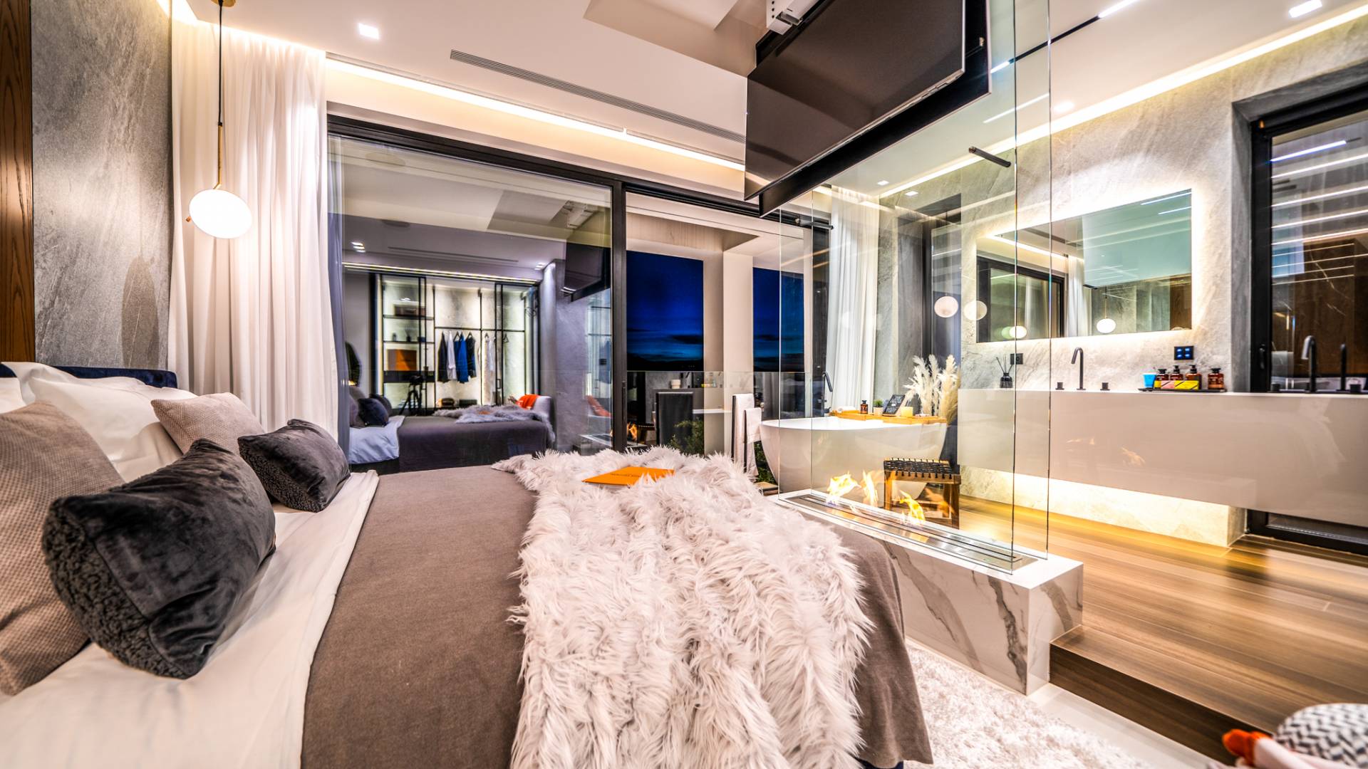 Diese exquisite Unterkunft auf 3 Ebenen verkörpert die Essenz stilvollen Wohnens und verfügt über 3 luxuriöse Schlafzimmer mit eigenem Bad sowie 3 Swimmingpools mit Whirlpool und Heimkino im Freien und sorgt für einen unvergesslichen Aufenthalt für bis zu 6 Gäste. Die Annehmlichkeiten der Luxusmiete decken selbst den anspruchsvollsten Besucher ab und bieten allen Komfort, den man von einer modernen Luxusresidenz erwarten würde, und noch mehr. Alles wurde entworfen und gefertigt, um Ihnen ein luxuriöses und unvergessliches Aufenthaltserlebnis zu bieten.
