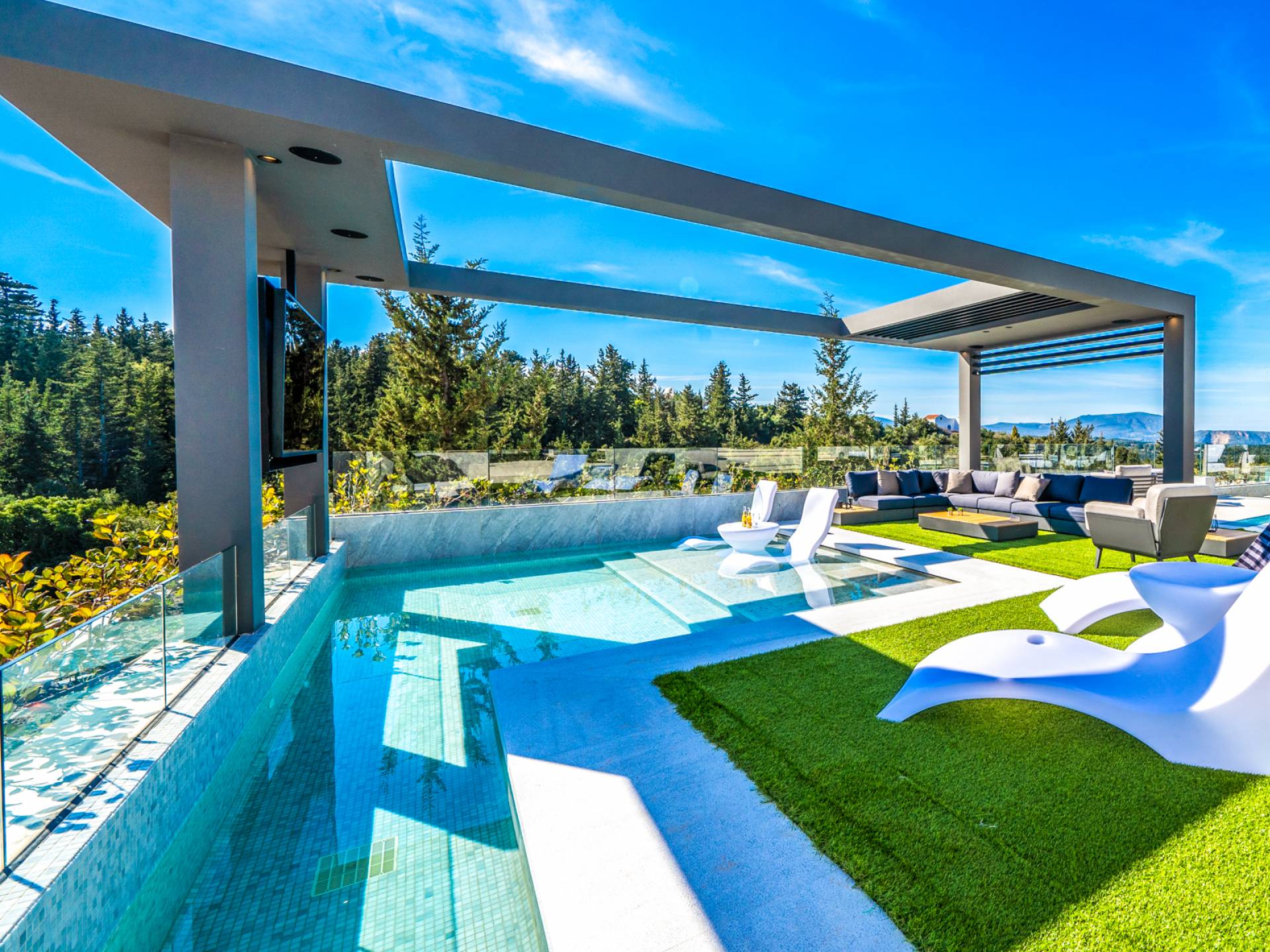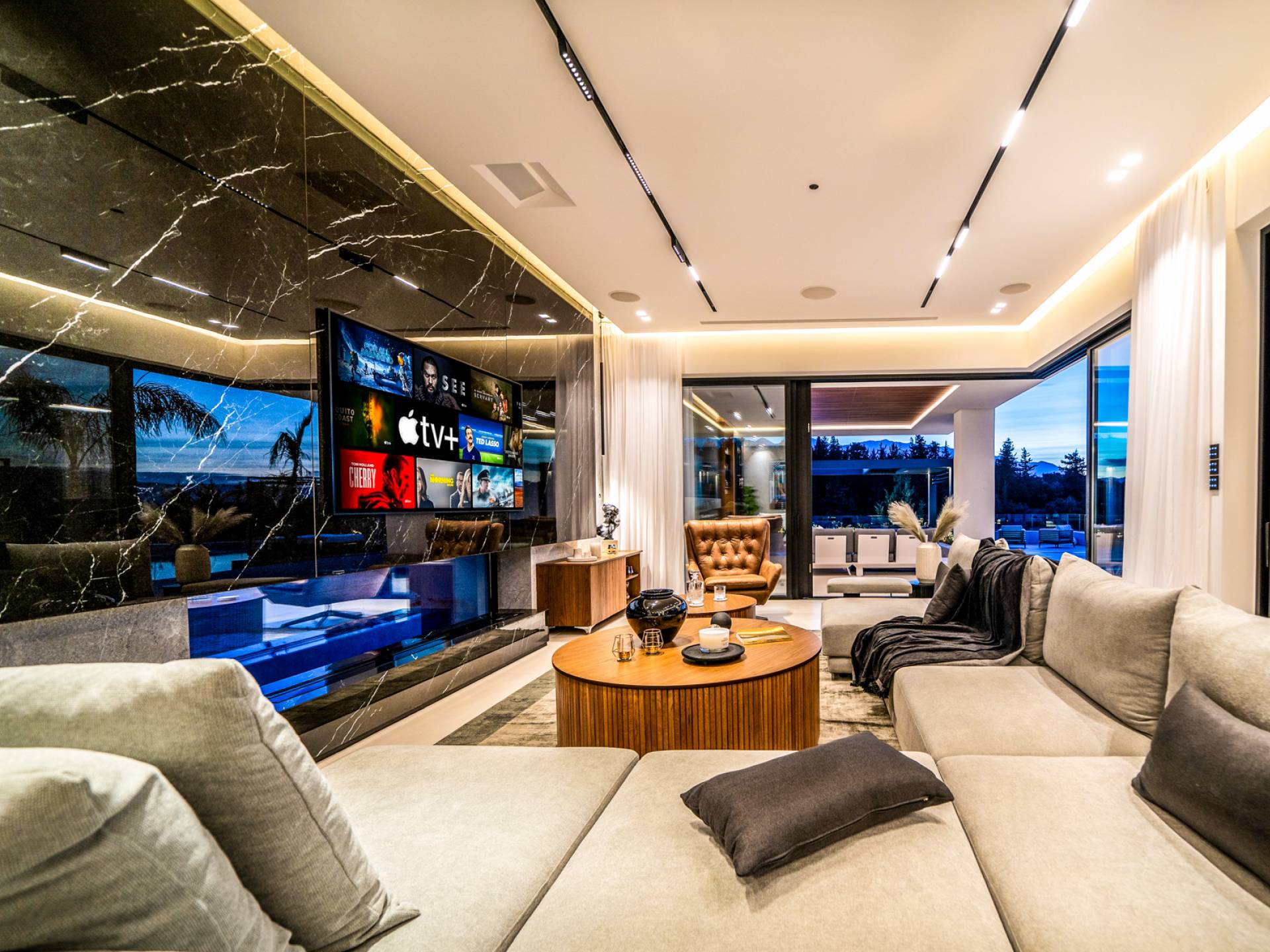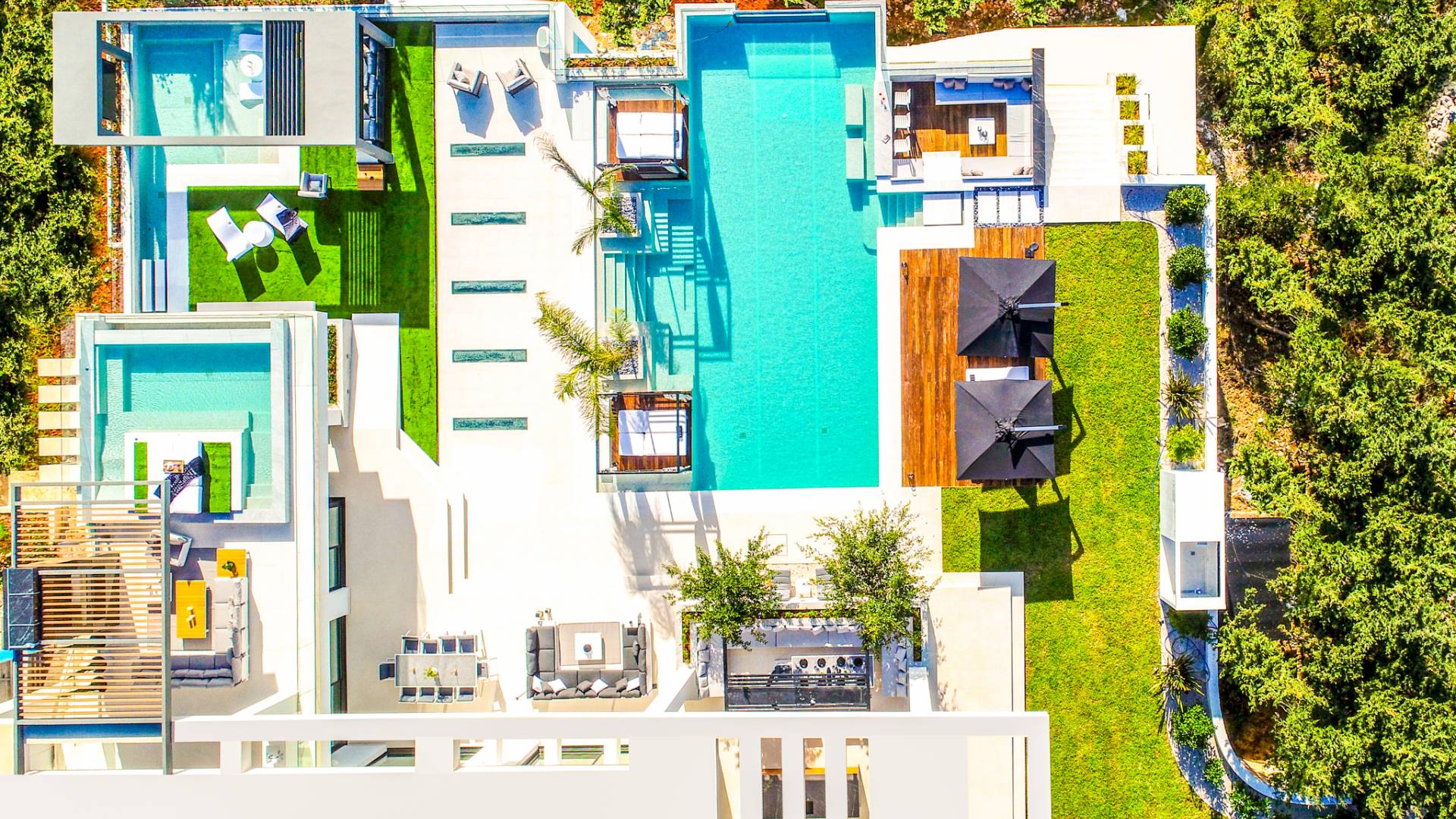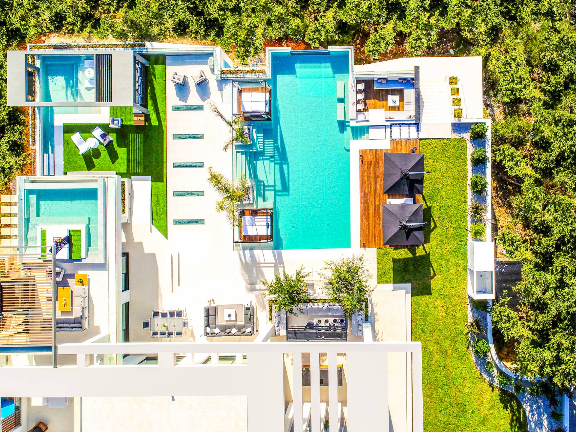 Der überbordende Luxus, den diese Villa bietet, wird Sie sprachlos machen. Im Erdgeschoss befinden sich 2 private Pools. Ein großer Infinity-Pool (15 x 9 m), der Ihnen das Gefühl gibt, mit den Wolken zu schwimmen, und ein kleineres Kinderbecken mit Heimkino im Freien für unzählige Stunden Entspannung.