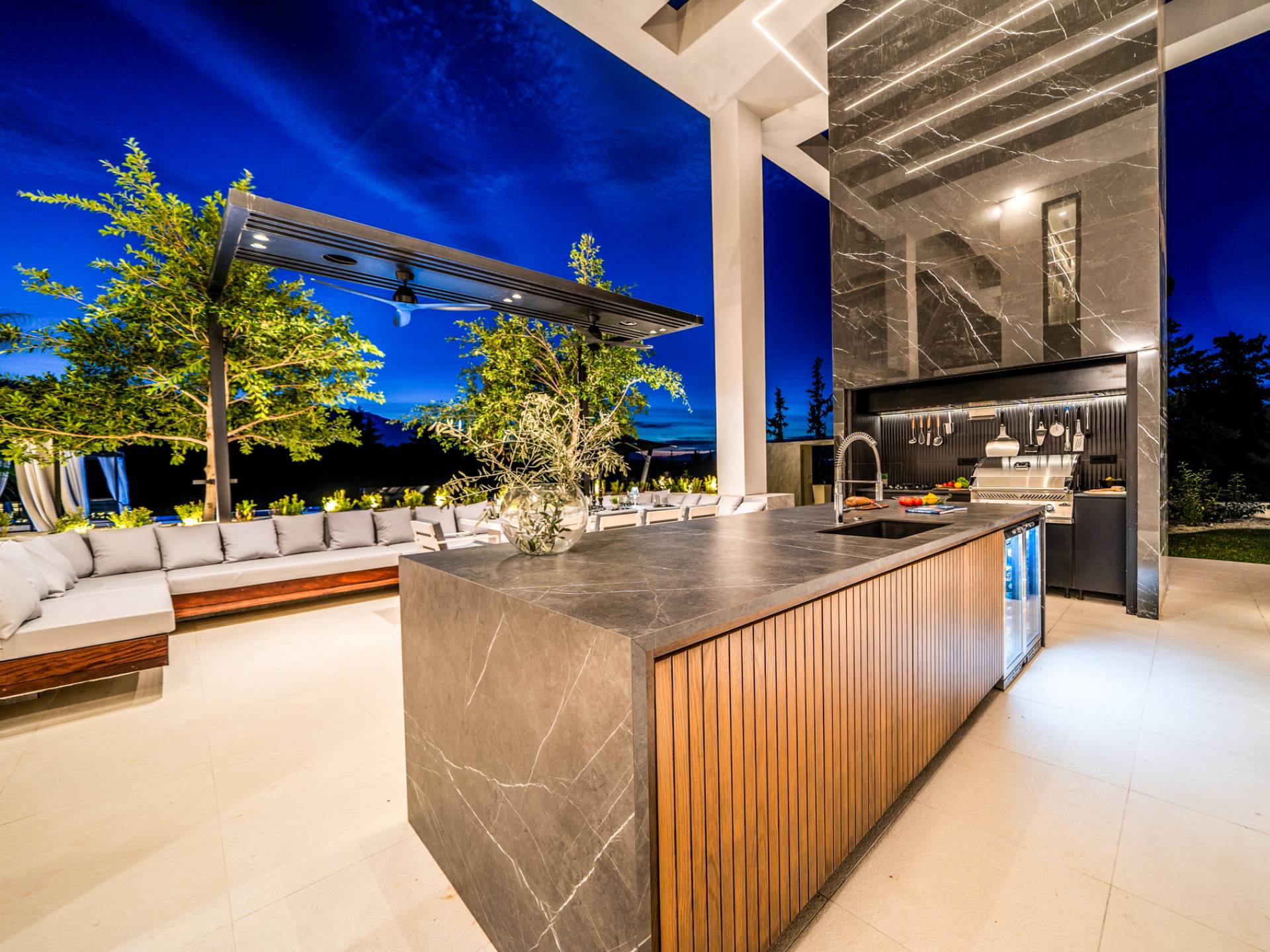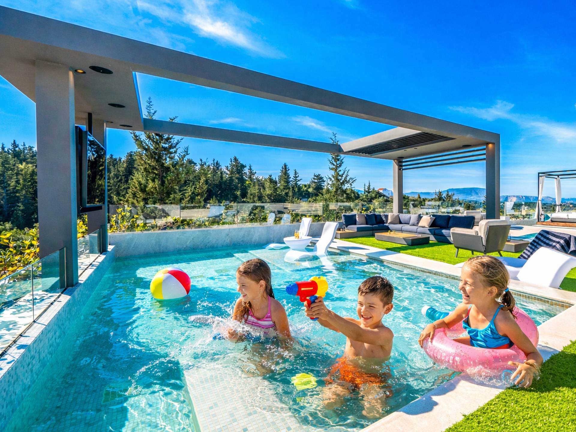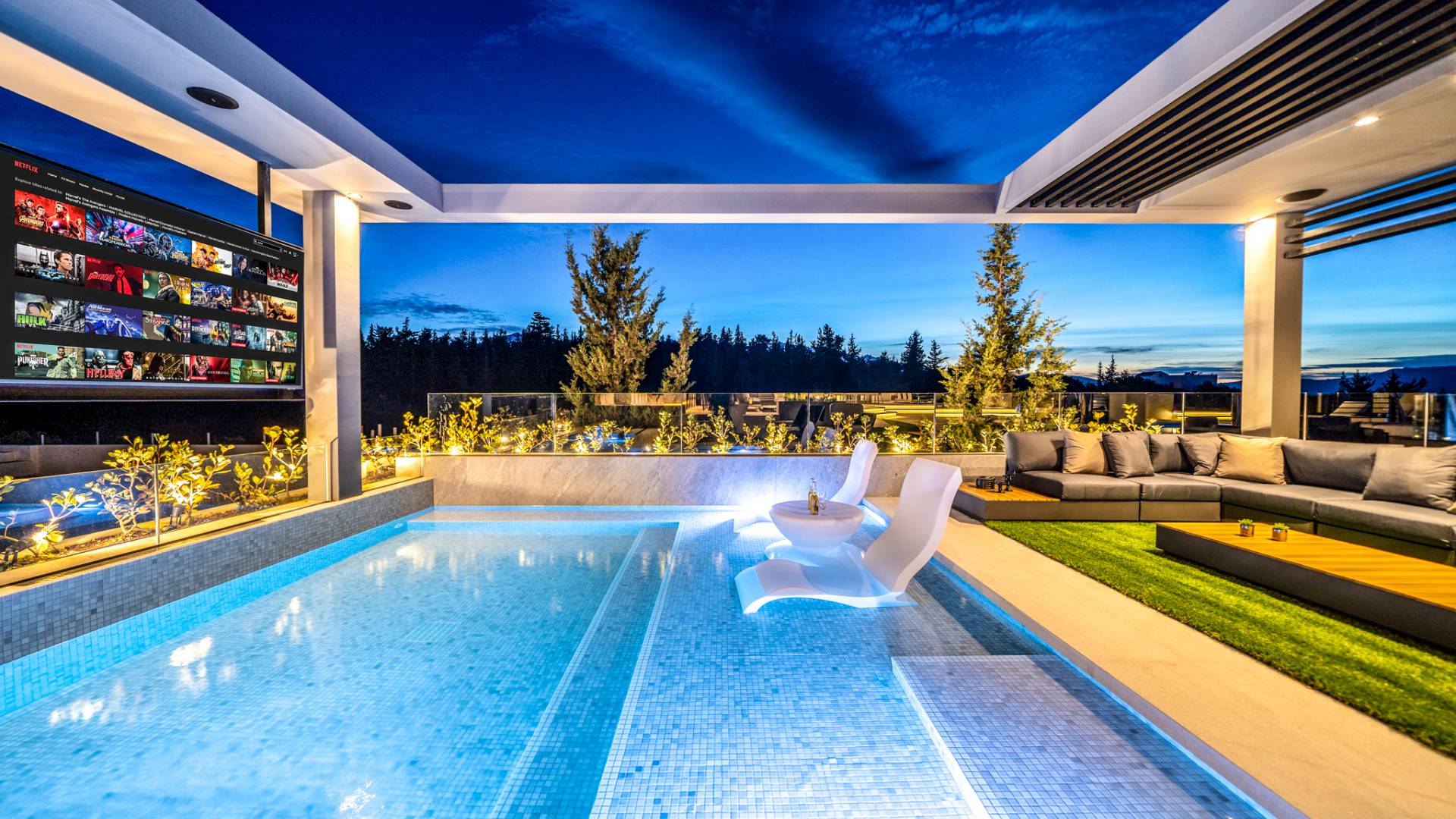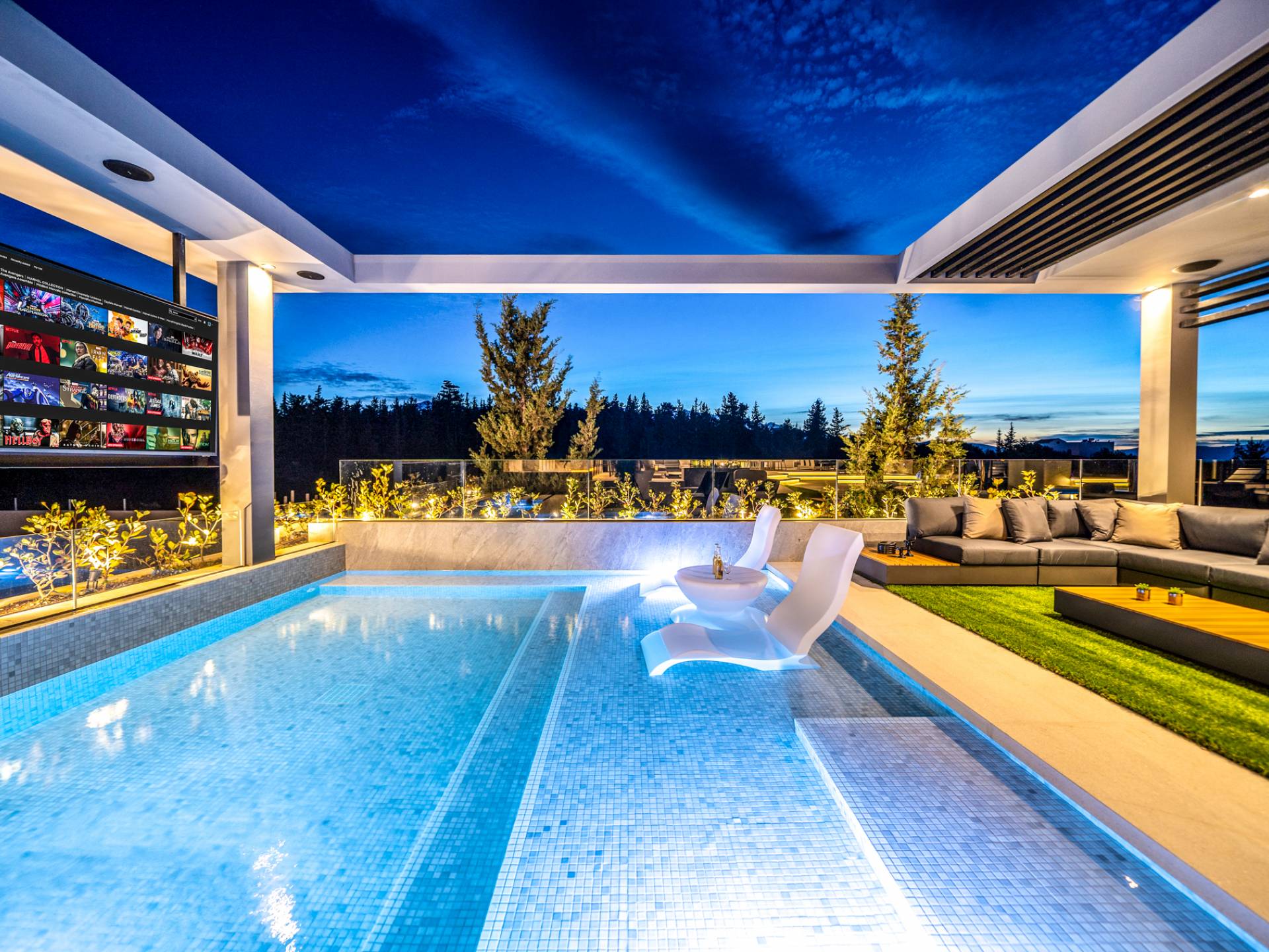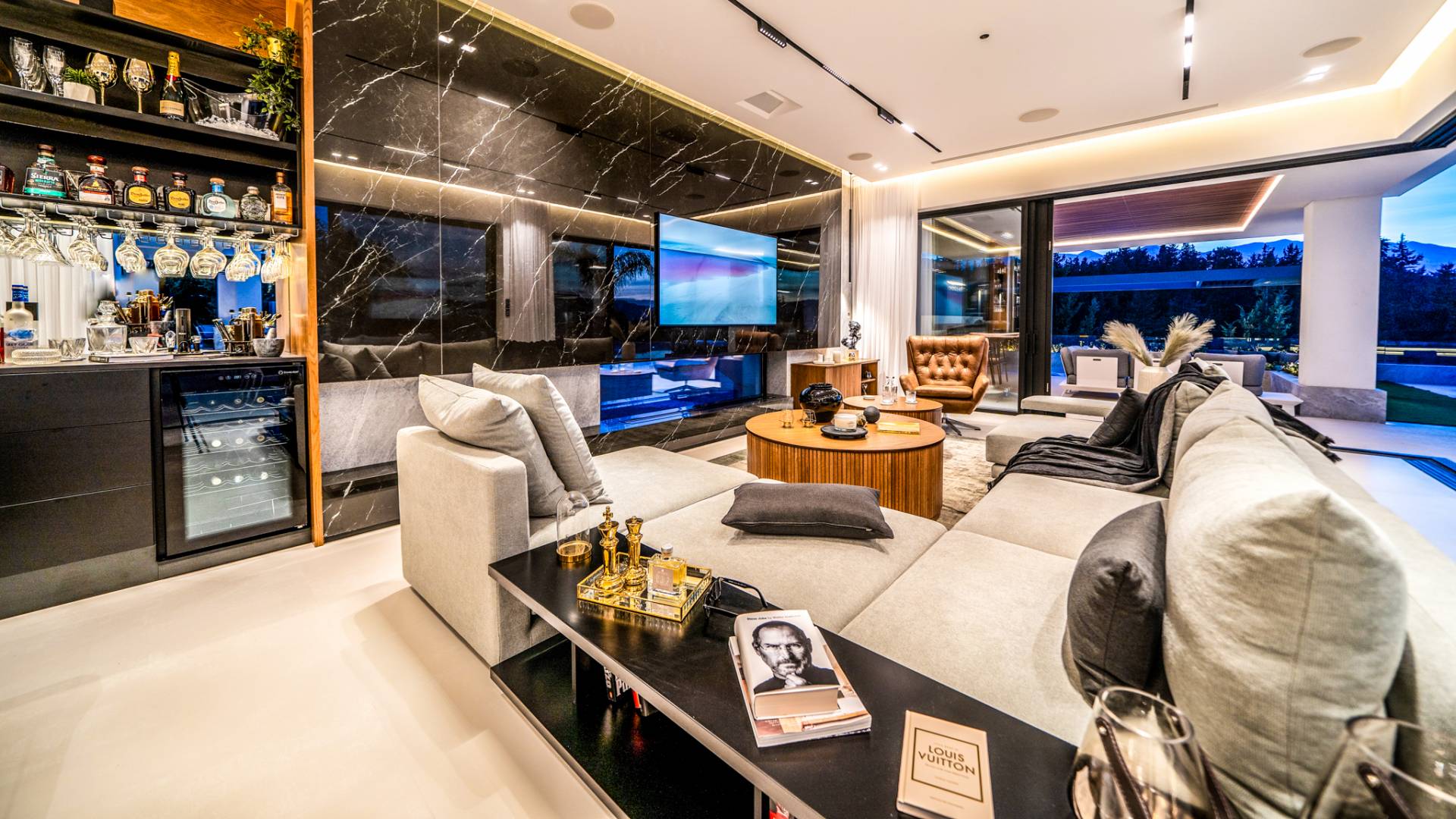 Der überbordende Luxus, den diese Villa bietet, wird Sie sprachlos machen. Im Erdgeschoss befinden sich 2 private Pools. Ein großer Infinity-Pool (15 x 9 m), der Ihnen das Gefühl gibt, mit den Wolken zu schwimmen, und ein kleineres Kinderbecken mit Heimkino im Freien für unzählige Stunden Entspannung.