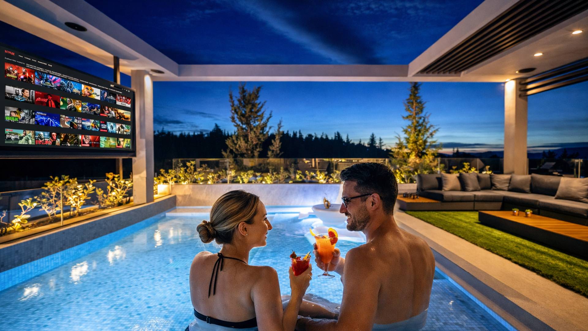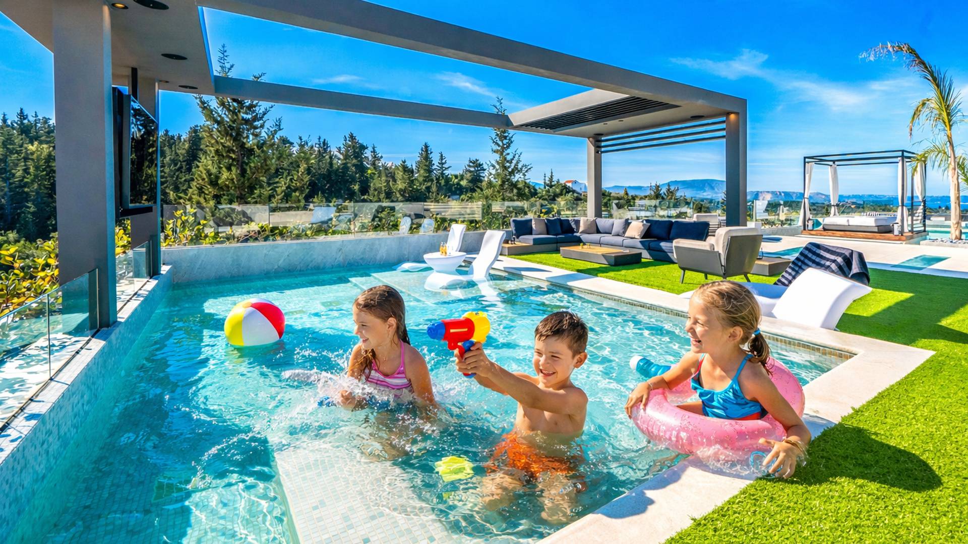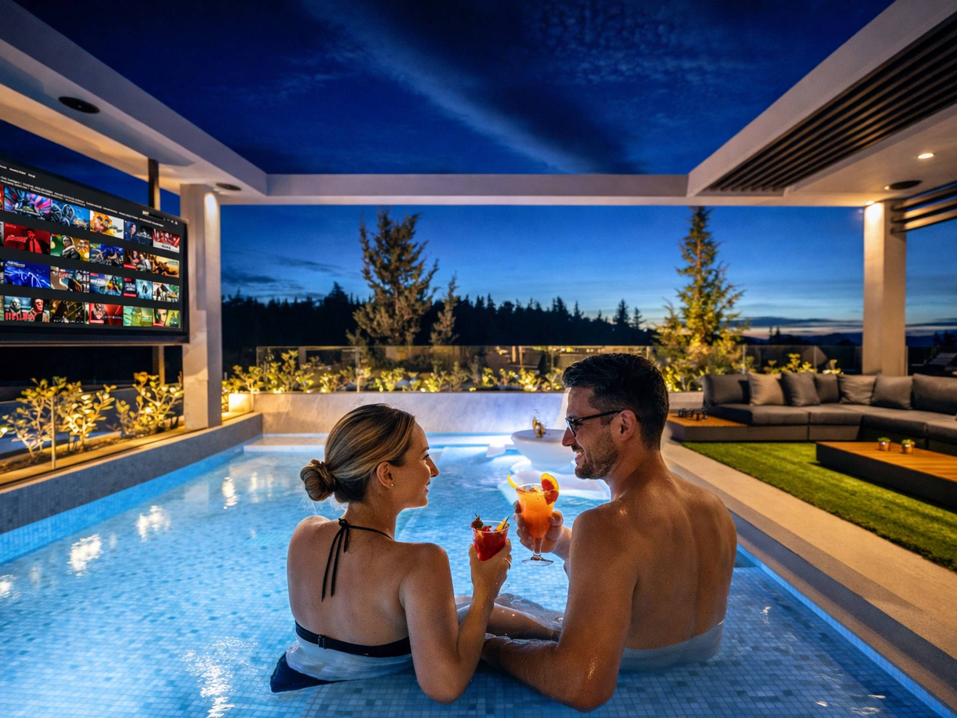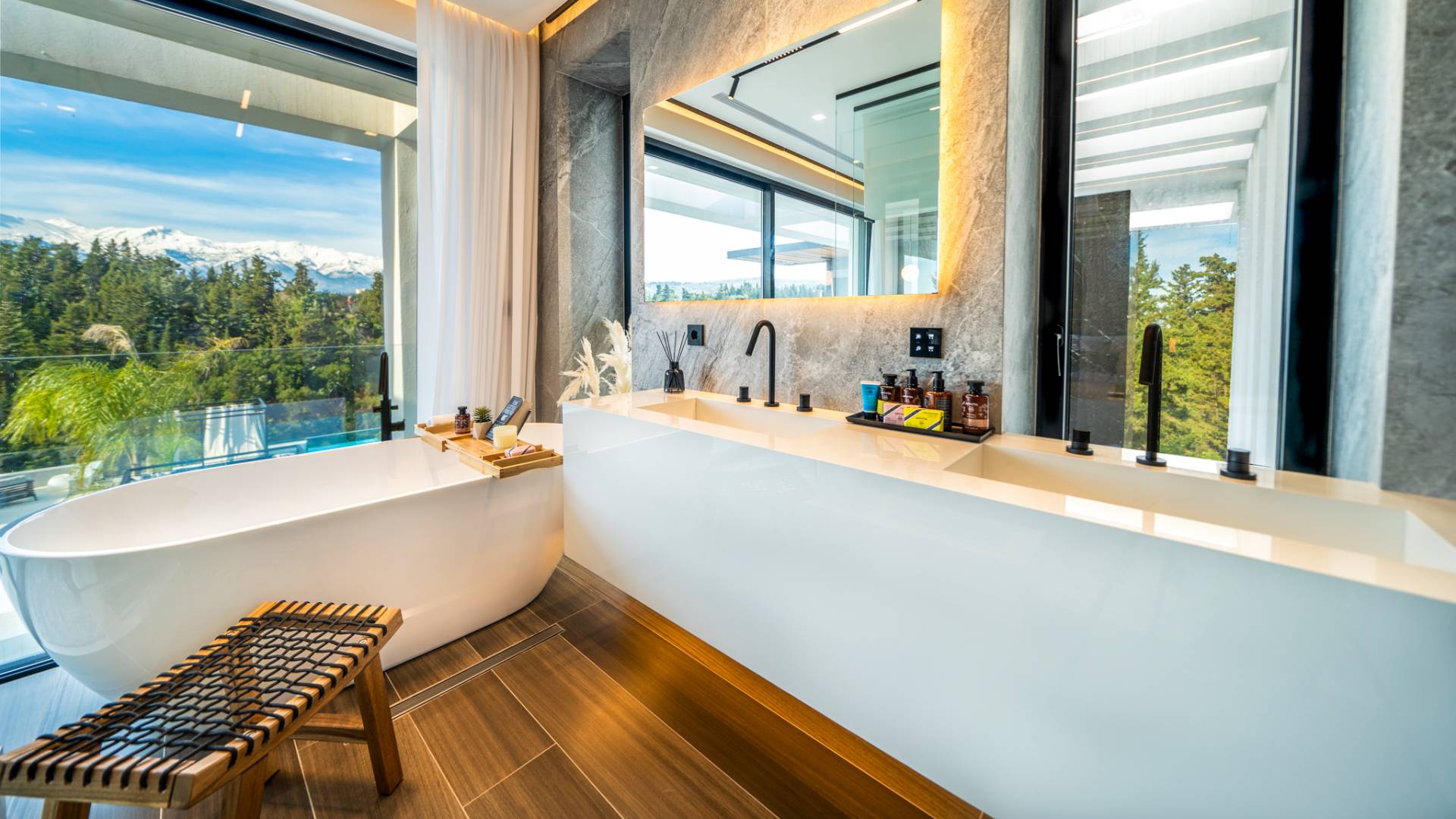 Der überbordende Luxus, den diese Villa bietet, wird Sie sprachlos machen. Im Erdgeschoss befinden sich 2 private Pools. Ein großer Infinity-Pool (15 x 9 m), der Ihnen das Gefühl gibt, mit den Wolken zu schwimmen, und ein kleineres Kinderbecken mit Heimkino im Freien für unzählige Stunden Entspannung.