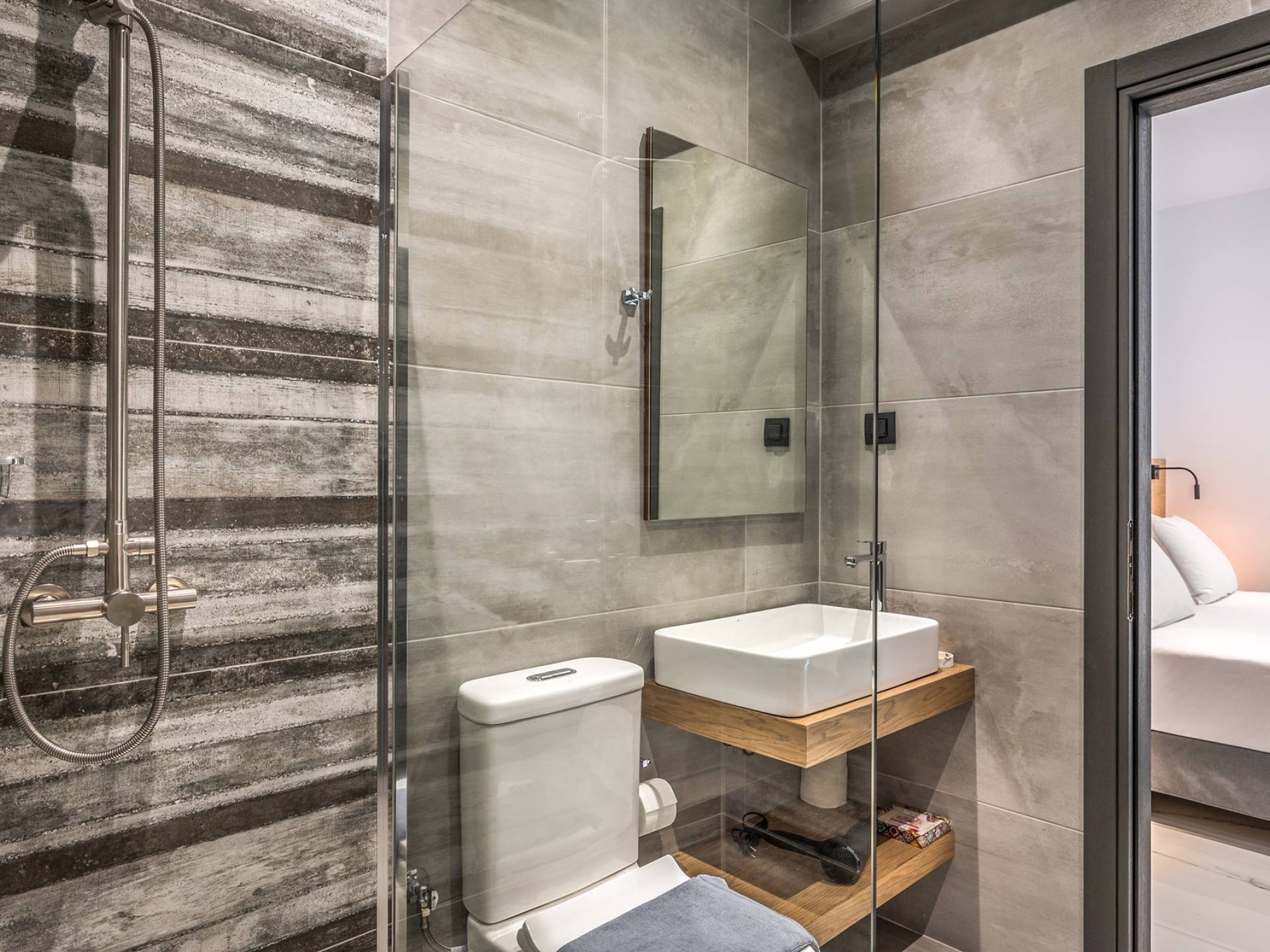 - Schlafzimmer 2 (Obergeschoss)- Queensize-Bett, Bad mit Dusche, Balkon mit Meeres- und Poolansicht