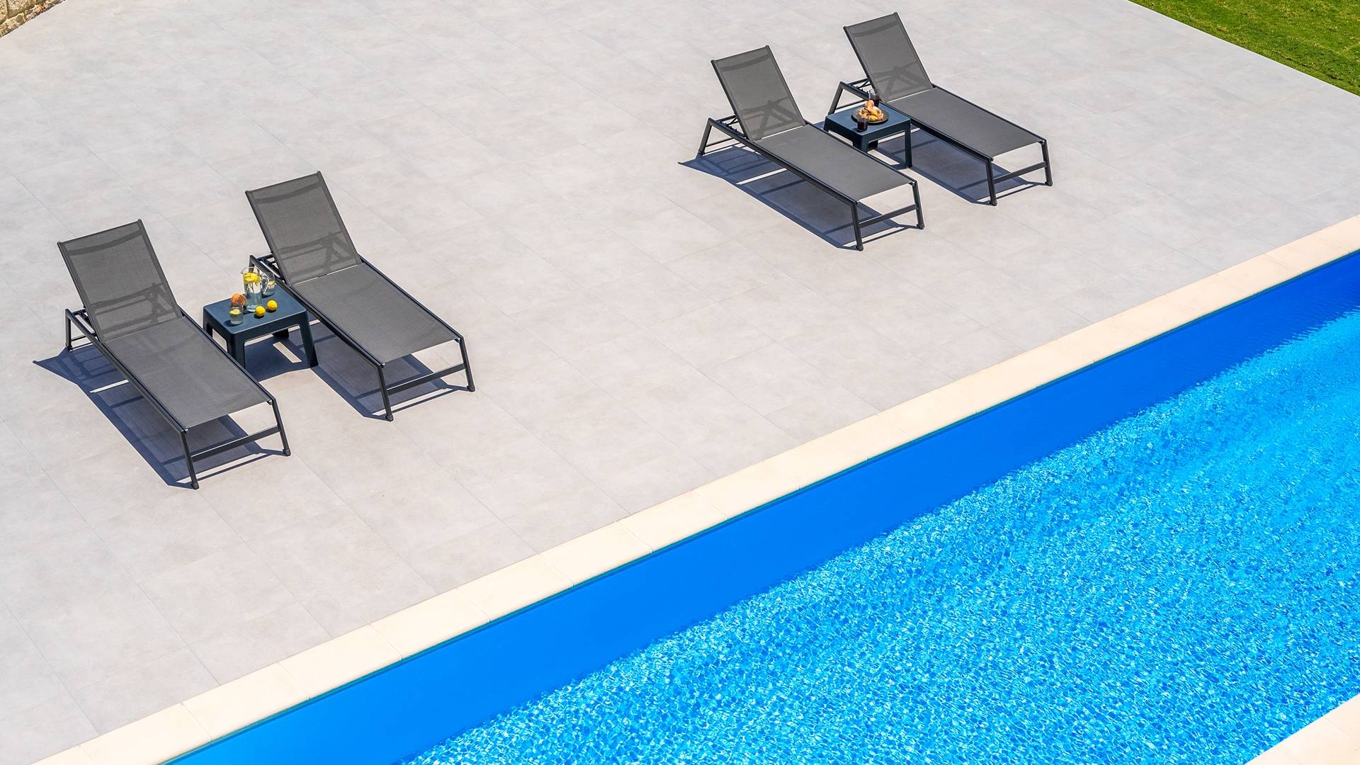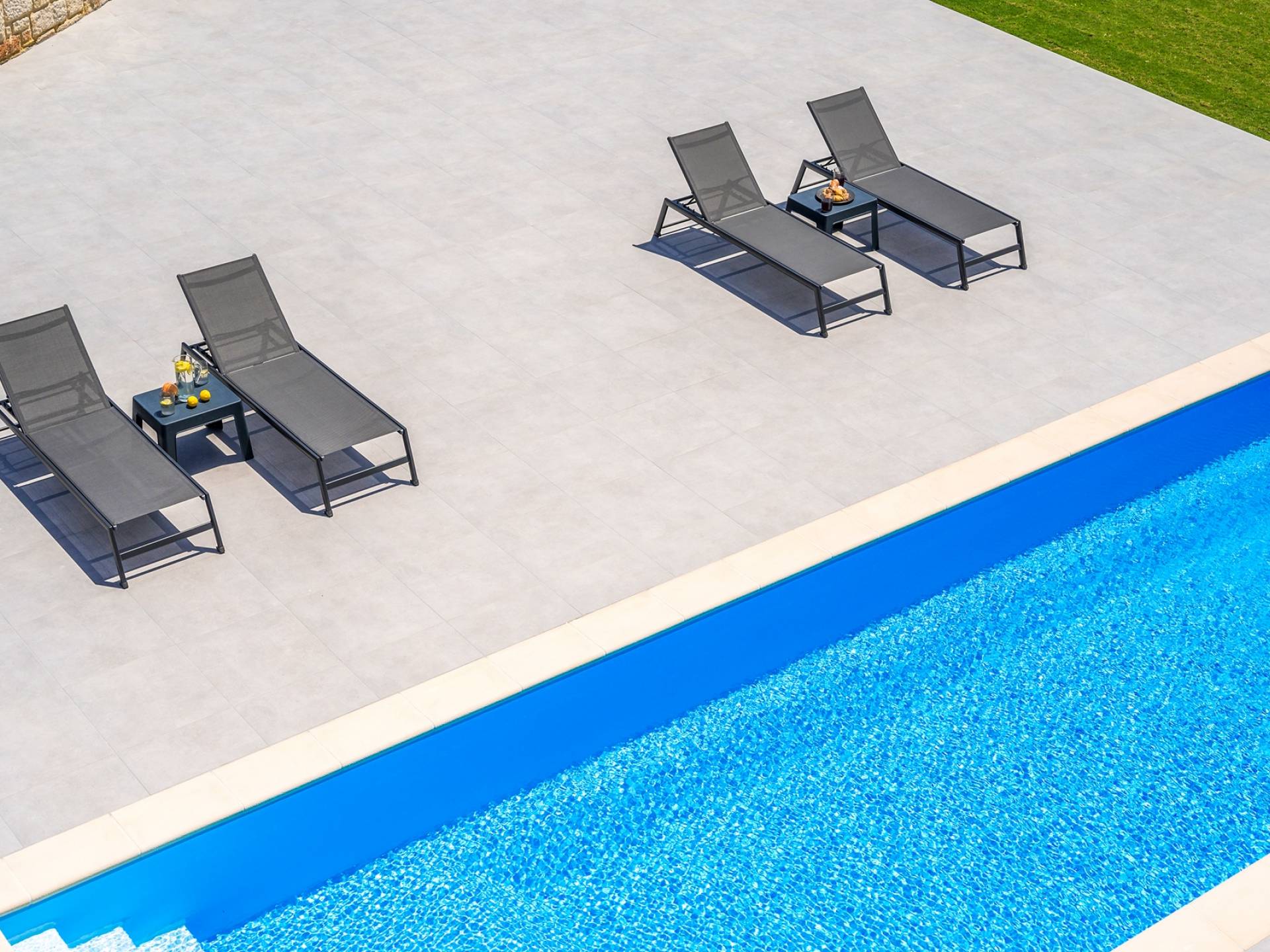 - privates 40 m² Schwimmbad, umgeben von offenen Sonnenterrassen