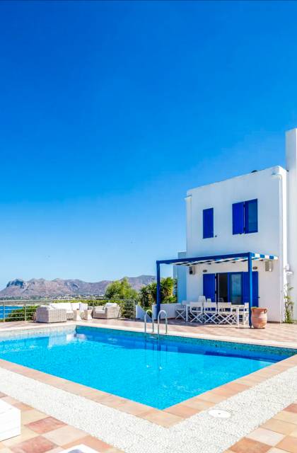 Blanca Villa sind drei identische Villen an einem ruhigen Ort in Kalathas, bestehend aus drei Villen mit einer atemberaubenden Aussicht: Meer, Himmel und Sonne. Alle Villen verfügen über beheizte Privatpools. Ozean, Himmel und Sonne sind die drei Hauptelemente, die diese weißen und blauen Villen im modernen griechischen Inselstil charakterisieren. Villa Blanca ist eine ruhige Oase, um das blaue Kretische Meer, den strahlenden Himmel und die warme Sonne zu genießen.