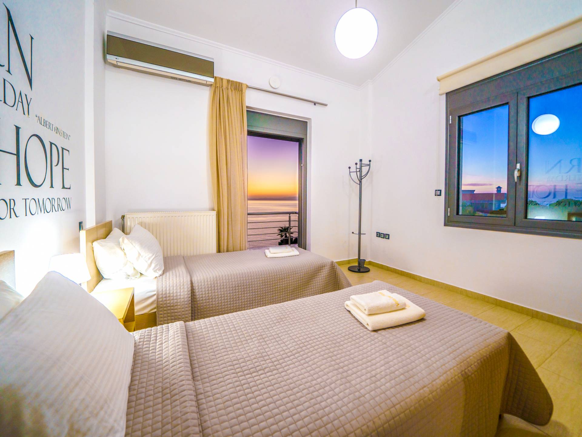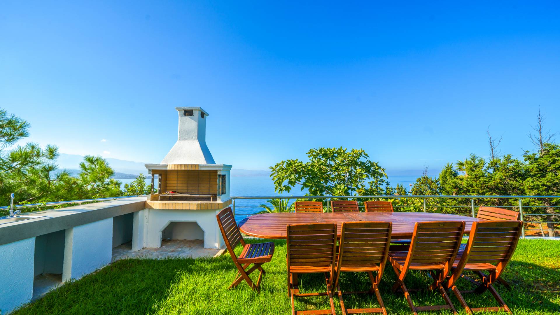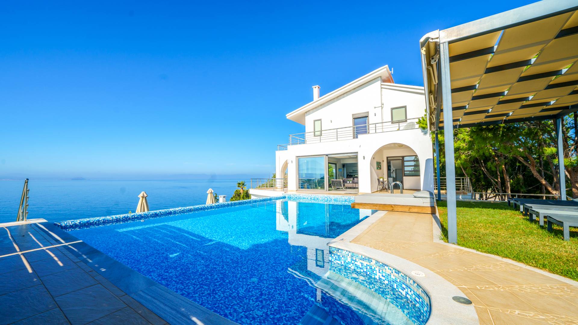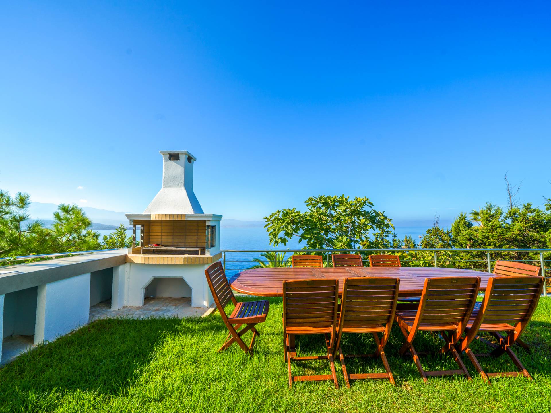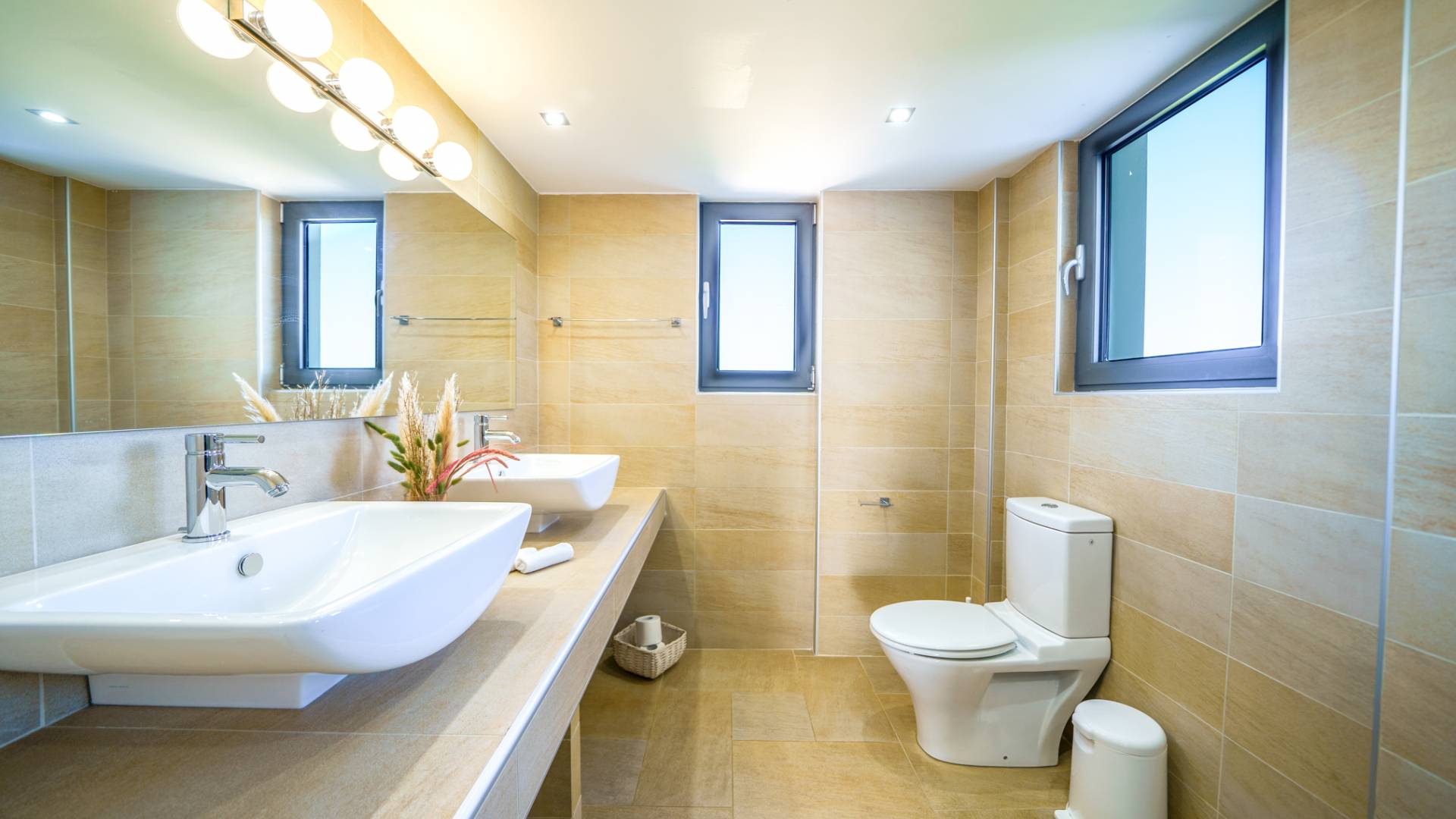 Villa del Mare verfügt über 350 Quadratmeter Wohnfläche, verteilt auf drei Etagen. Der Haupteingang befindet sich in der mittleren Etage und umfasst einen geräumigen, offenen Bereich mit einer komfortablen Lounge, einem gemütlichen Essbereich und einer Küche, die durch eine Bar vom Essbereich getrennt ist. Eine Reihe französischer Türen gibt den Blick auf eine riesige Veranda mit einer herrlichen Aussicht frei. Auf dieser Etage befindet sich auch ein praktisches WC. Die erste Etage beherbergt drei Schlafzimmer und zwei Badezimmer, wobei das Hauptschlafzimmer ein Doppelbett, ein eigenes Badezimmer und zwei separate Balkone mit herrlicher Aussicht bietet. Das zweite Schlafzimmer verfügt über ein kleines Doppelbett und einen privaten Balkon, während das dritte Schlafzimmer über zwei Einzelbetten und einen Dachboden mit einem kleineren Doppelbett verfügt, der ebenfalls über einen privaten Balkon verfügt.