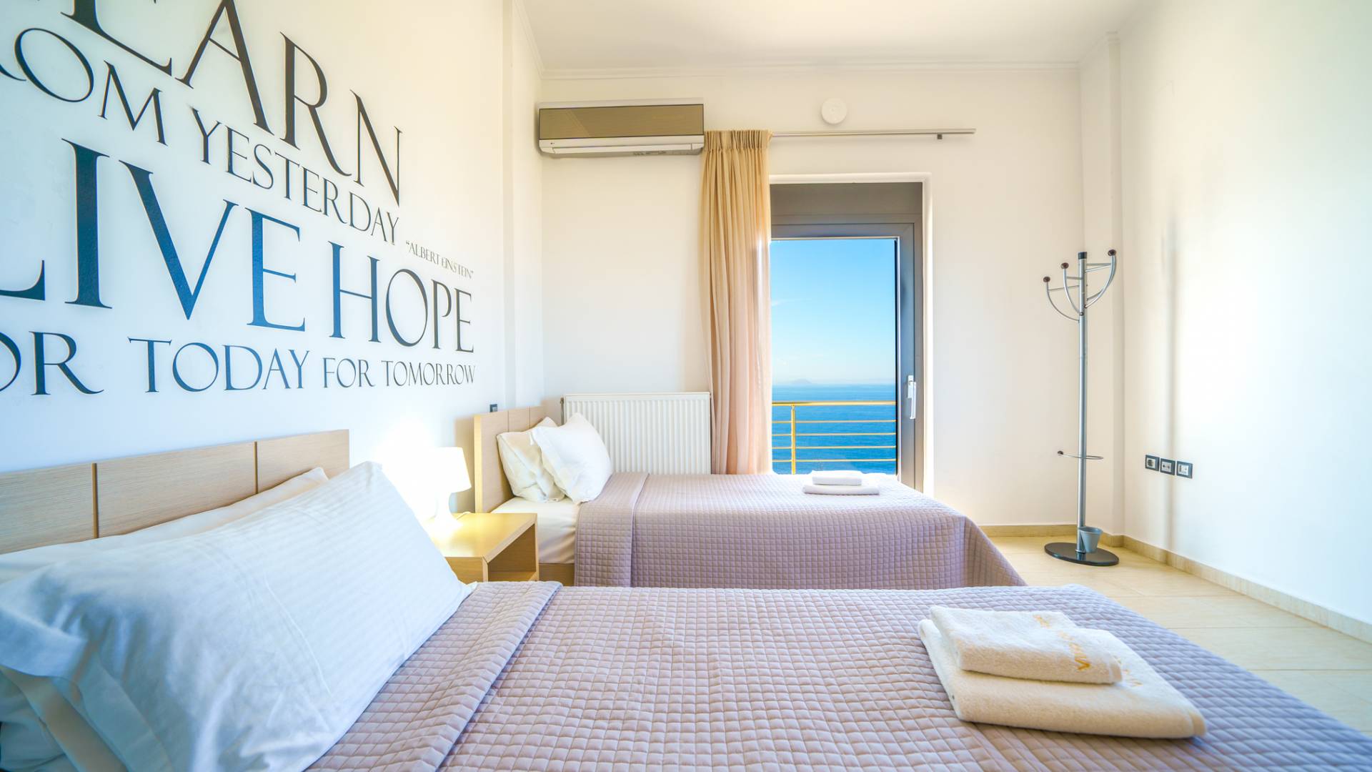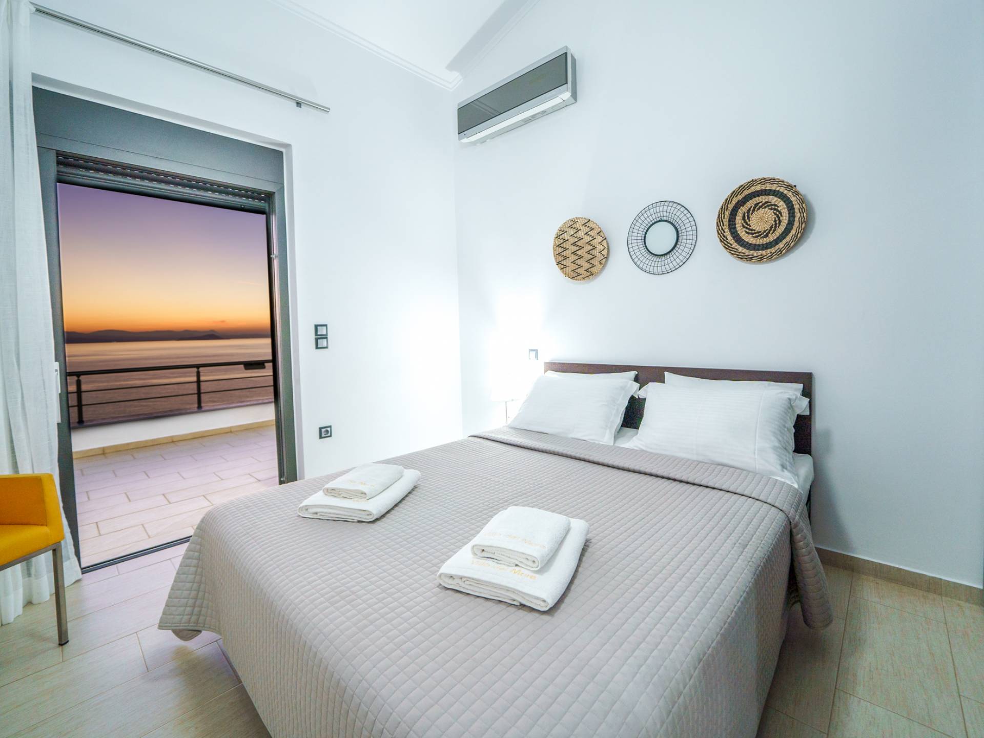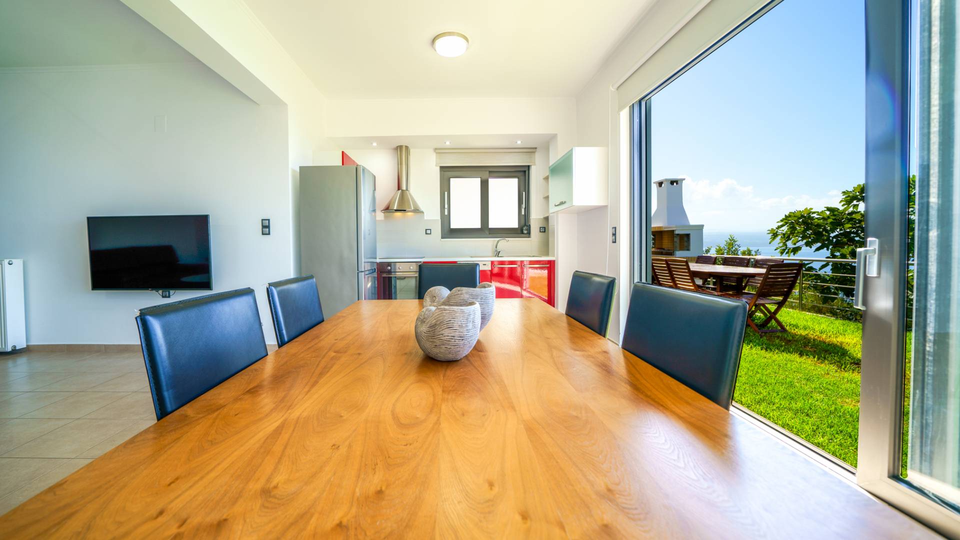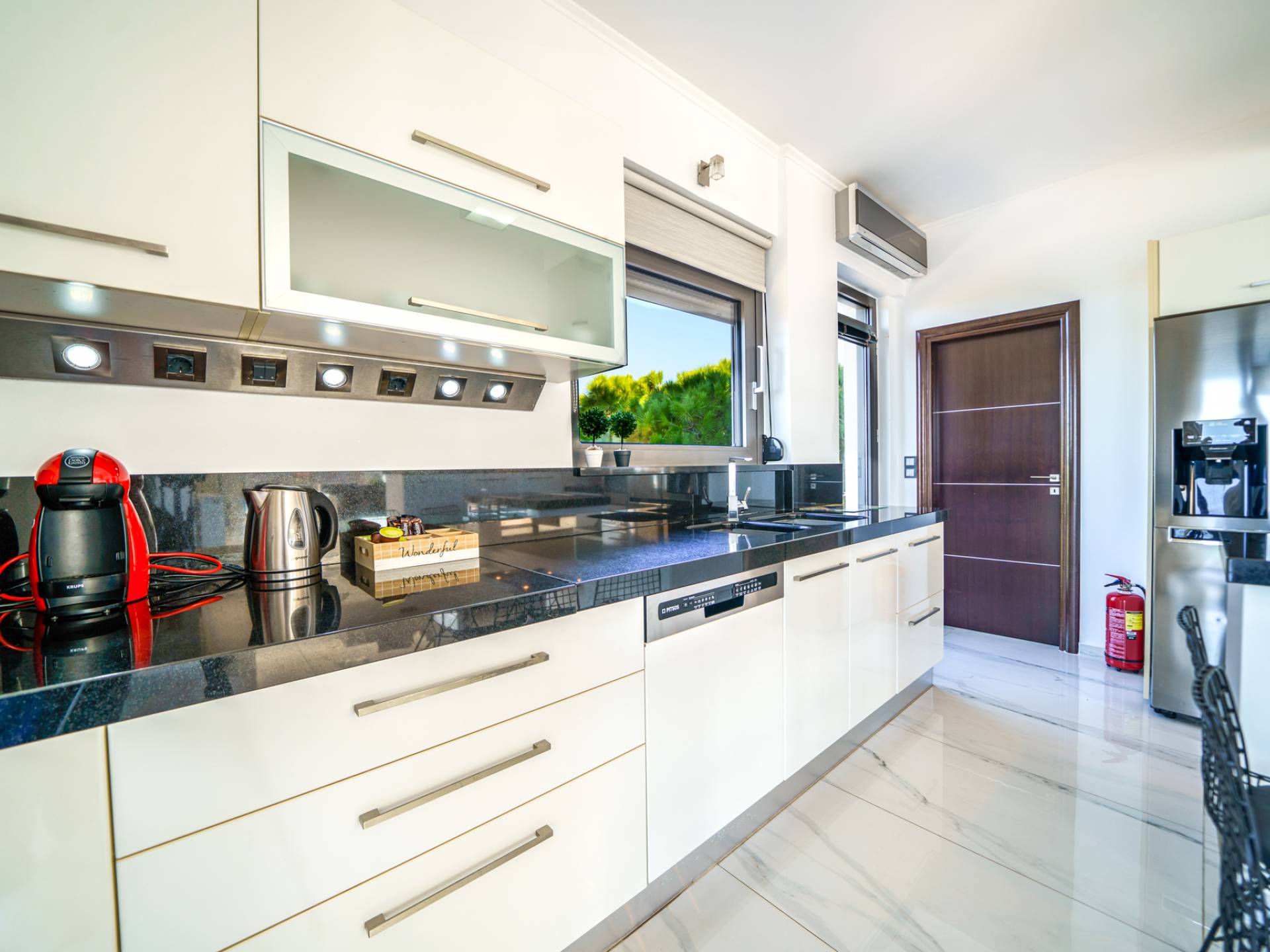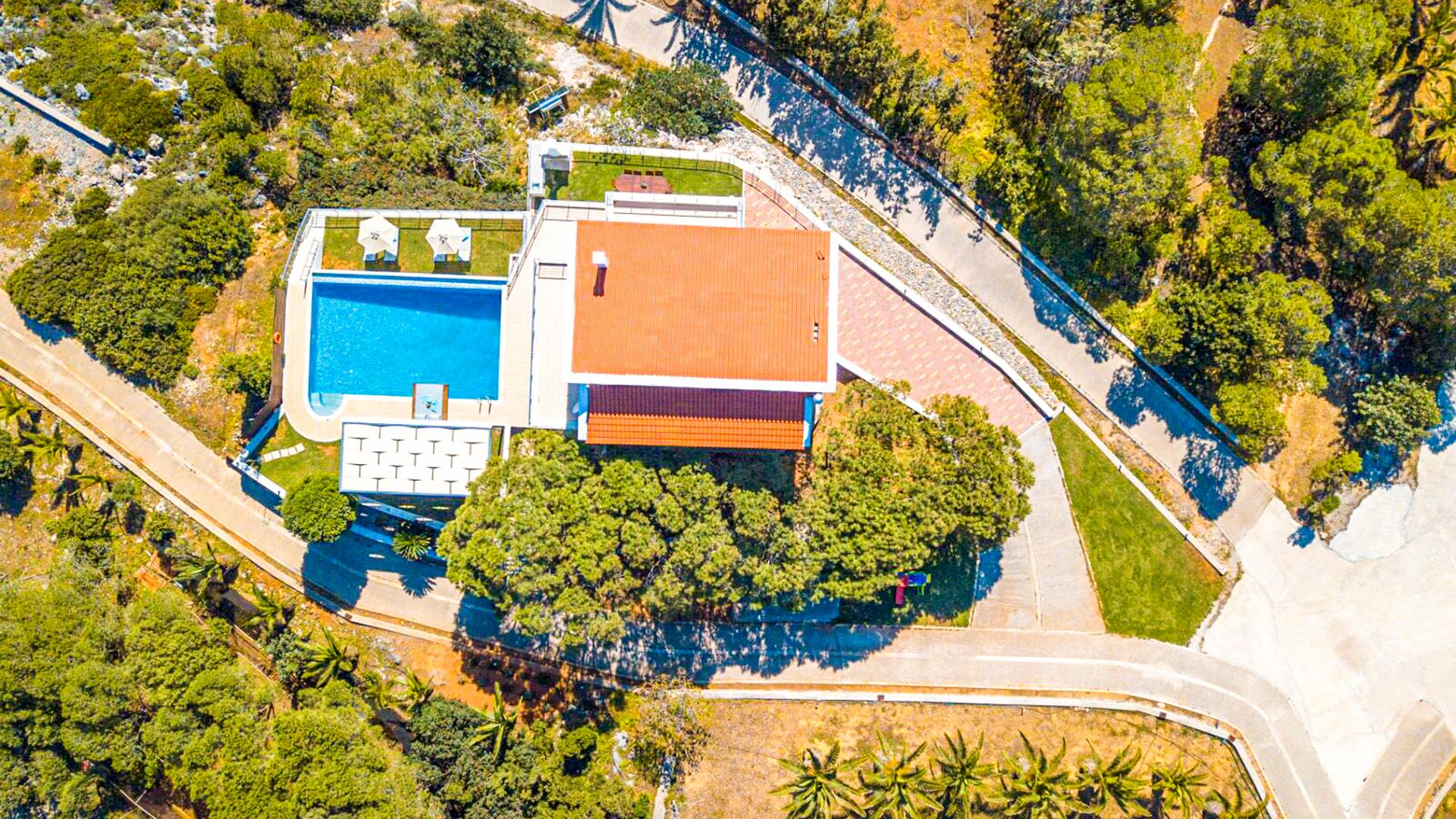 Villa del Mare verfügt über 350 Quadratmeter Wohnfläche, verteilt auf drei Etagen. Der Haupteingang befindet sich in der mittleren Etage und umfasst einen geräumigen, offenen Bereich mit einer komfortablen Lounge, einem gemütlichen Essbereich und einer Küche, die durch eine Bar vom Essbereich getrennt ist. Eine Reihe französischer Türen gibt den Blick auf eine riesige Veranda mit einer herrlichen Aussicht frei. Auf dieser Etage befindet sich auch ein praktisches WC. Die erste Etage beherbergt drei Schlafzimmer und zwei Badezimmer, wobei das Hauptschlafzimmer ein Doppelbett, ein eigenes Badezimmer und zwei separate Balkone mit herrlicher Aussicht bietet. Das zweite Schlafzimmer verfügt über ein kleines Doppelbett und einen privaten Balkon, während das dritte Schlafzimmer über zwei Einzelbetten und einen Dachboden mit einem kleineren Doppelbett verfügt, der ebenfalls über einen privaten Balkon verfügt.