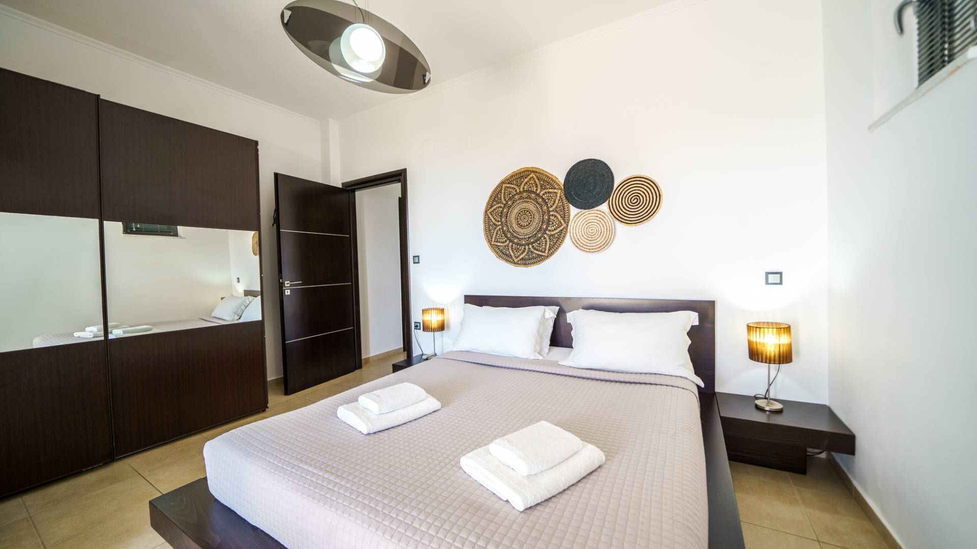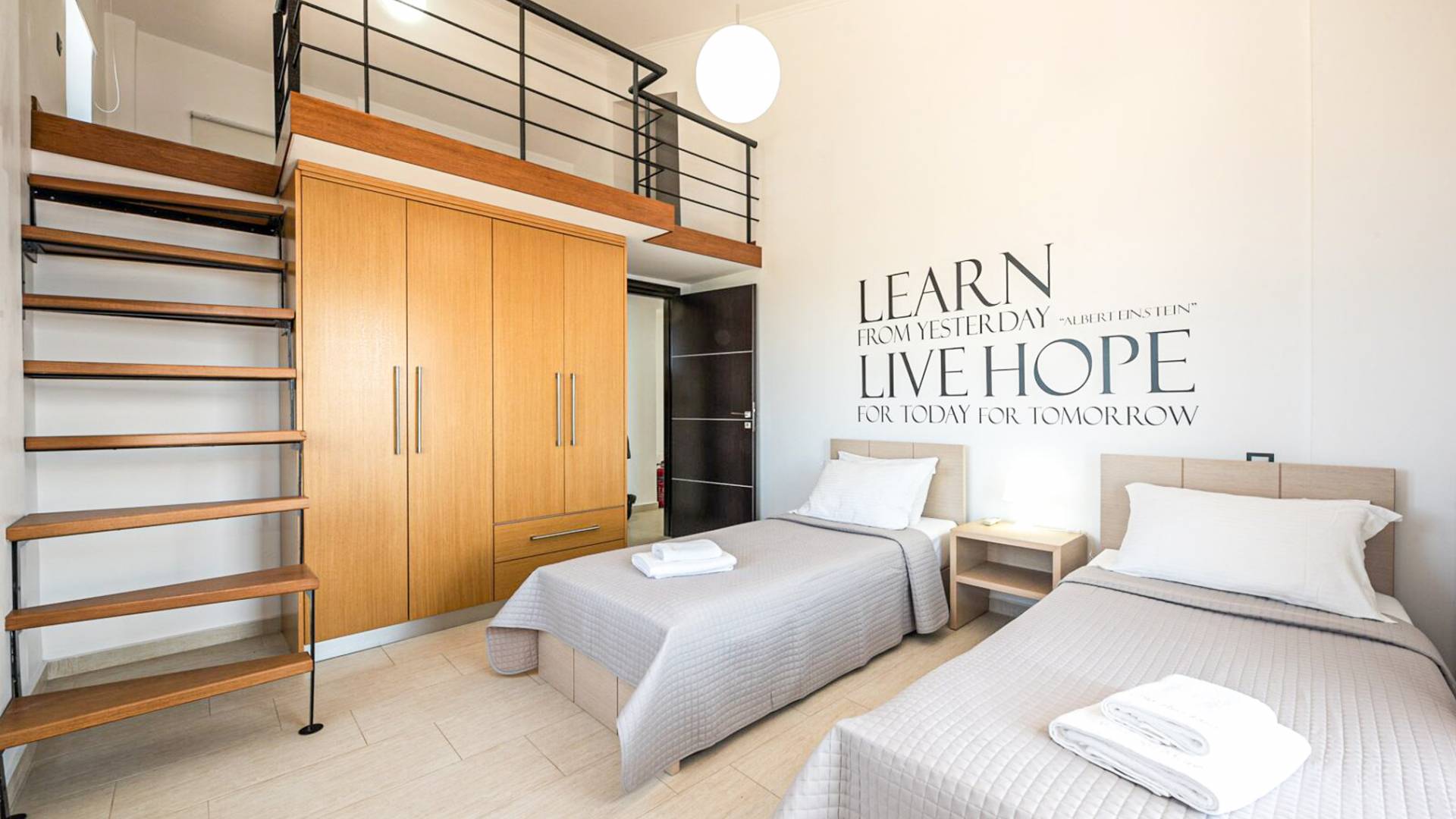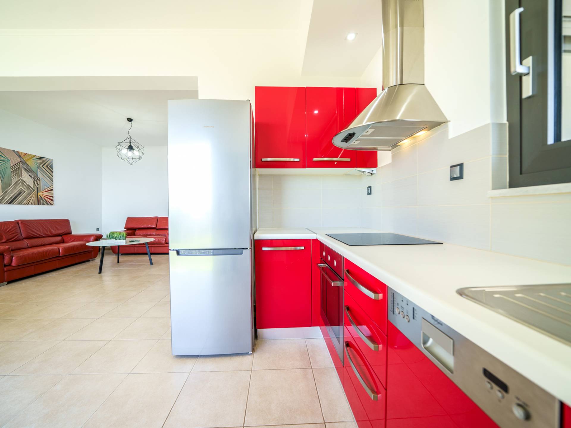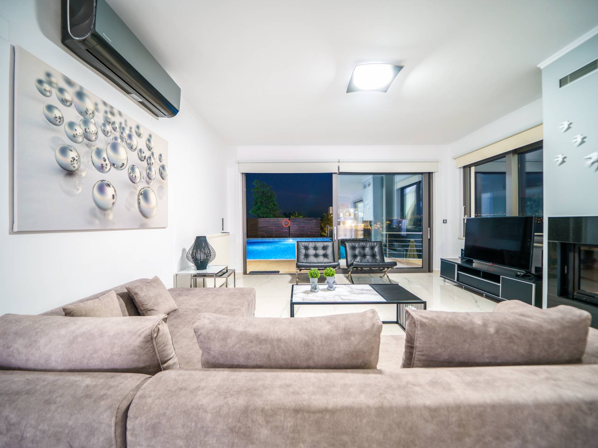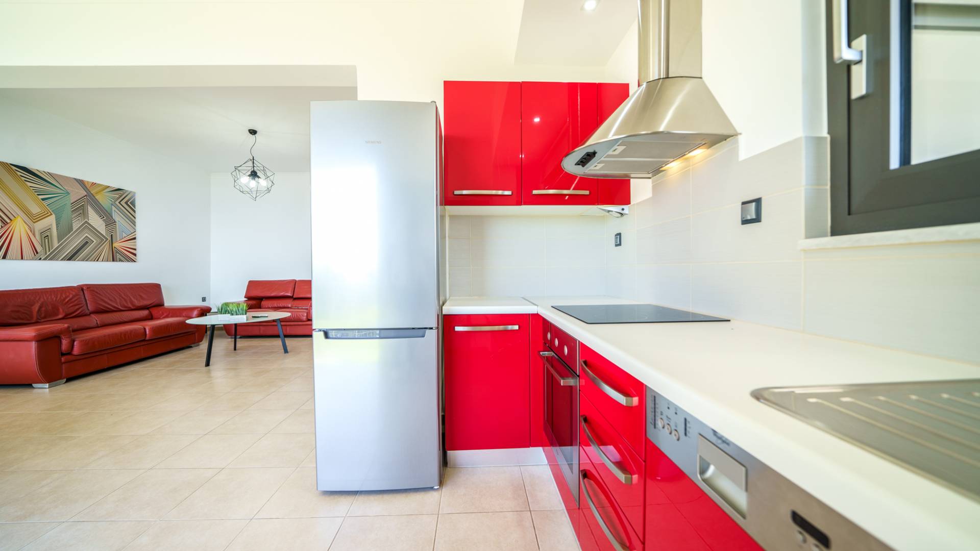 Villa del Mare verfügt über 350 Quadratmeter Wohnfläche, verteilt auf drei Etagen. Der Haupteingang befindet sich in der mittleren Etage und umfasst einen geräumigen, offenen Bereich mit einer komfortablen Lounge, einem gemütlichen Essbereich und einer Küche, die durch eine Bar vom Essbereich getrennt ist. Eine Reihe französischer Türen gibt den Blick auf eine riesige Veranda mit einer herrlichen Aussicht frei. Auf dieser Etage befindet sich auch ein praktisches WC. Die erste Etage beherbergt drei Schlafzimmer und zwei Badezimmer, wobei das Hauptschlafzimmer ein Doppelbett, ein eigenes Badezimmer und zwei separate Balkone mit herrlicher Aussicht bietet. Das zweite Schlafzimmer verfügt über ein kleines Doppelbett und einen privaten Balkon, während das dritte Schlafzimmer über zwei Einzelbetten und einen Dachboden mit einem kleineren Doppelbett verfügt, der ebenfalls über einen privaten Balkon verfügt.