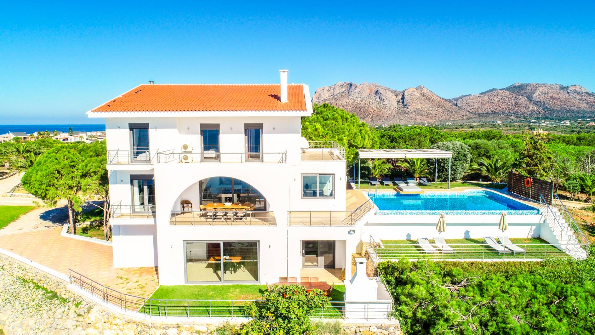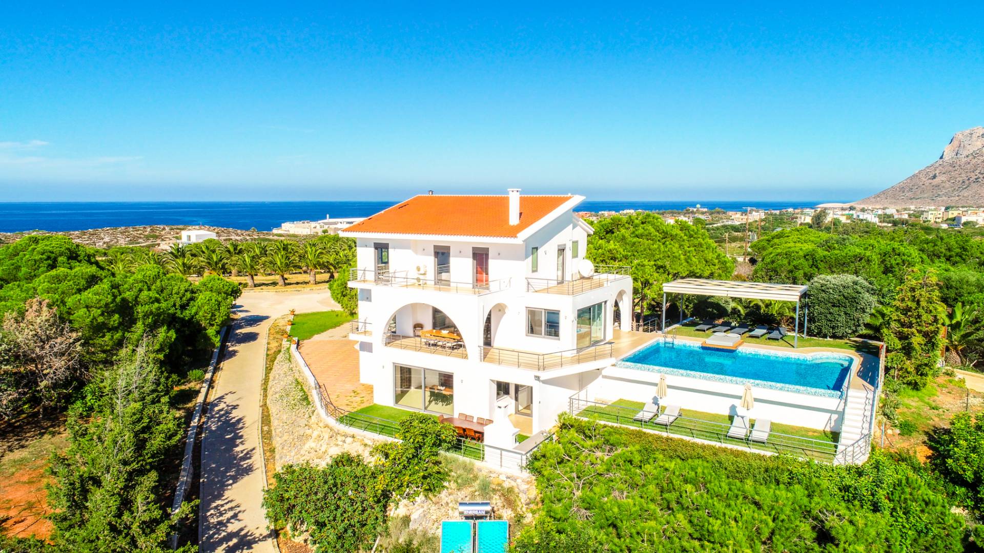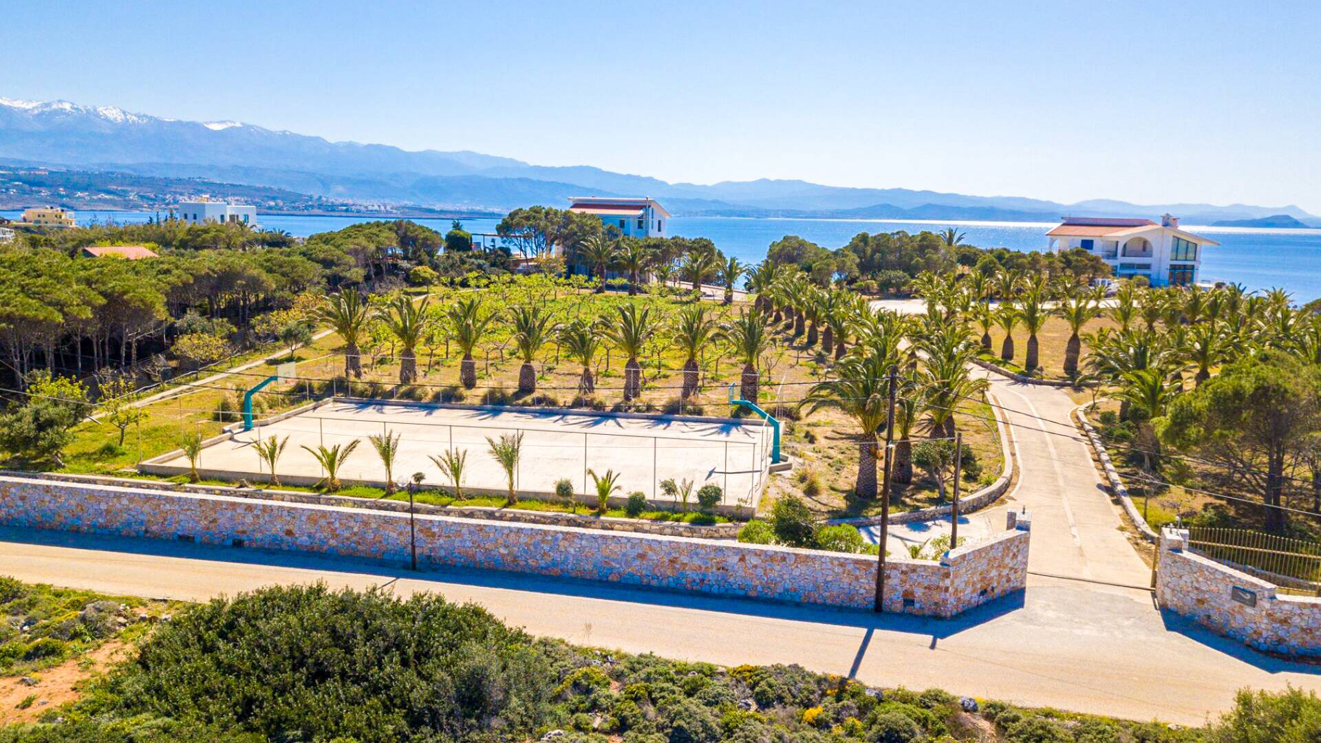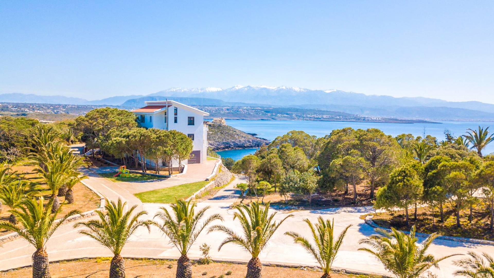 Eingebettet in die bezaubernde Gegend von Stavros, nur 14 Kilometer von der Stadt Chania entfernt, bietet diese prächtige und geräumige Villa ein beeindruckendes Panorama auf das glitzernde kretische Meer, die bezaubernde Insel Thodorou, die Nordküste der Präfektur Chania und die majestätische Weiße Berge, alles in Ihrer Sicht. Die Villa liegt auf einem riesigen 50.000 Quadratmeter großen Anwesen, das mit üppigen Bäumen, einem blühenden Weinberg, Wassermelonenfeldern, mehr als 600 anmutigen Palmen und einer Fülle farbenfroher Blumen geschmückt ist.