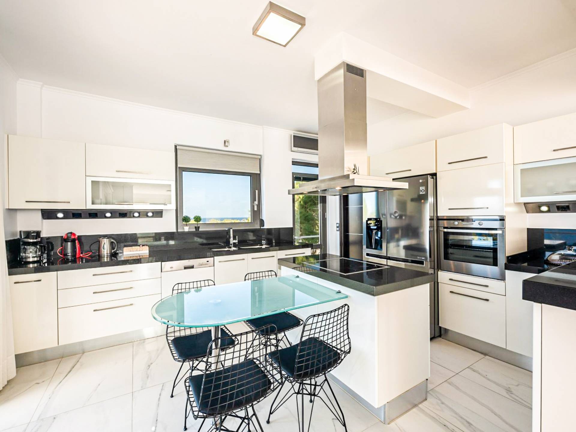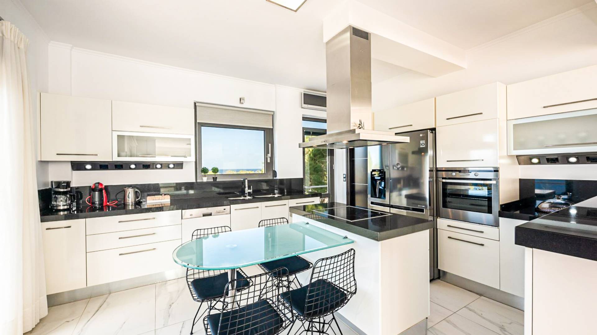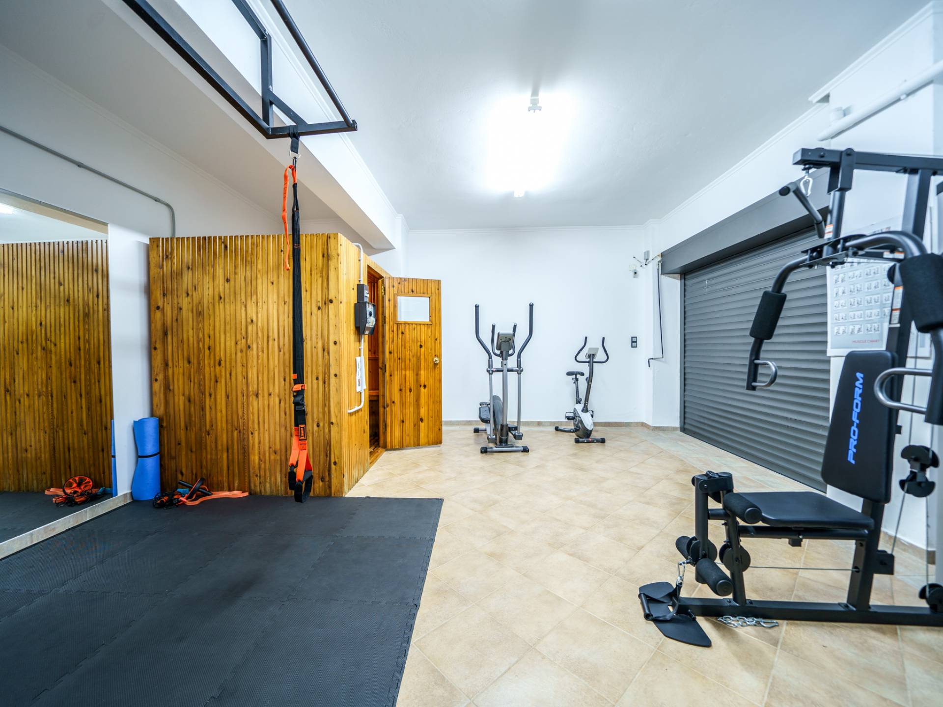 Die untere Etage bietet die Möglichkeit, als eigenständige Wohnung zu dienen, mit eigener Eingangstür und einer voll ausgestatteten offenen Küche. Die Aussicht vom Ess- und Sitzbereich ist einfach atemberaubend und französische Türen führen in einen grünen Garten mit Grillplatz. Auf dieser Etage befinden sich außerdem zwei Schlafzimmer und ein Badezimmer, wobei ein Schlafzimmer über zwei Einzelbetten und das andere über ein Doppelbett und Zugang zum Garten durch französische Türen verfügt. Eine Treppe vom Garten führt zum verlockenden Pool und auf derselben Etage gibt es einen Raum mit Fitnesseinrichtungen und einer Sauna zum Entspannen.