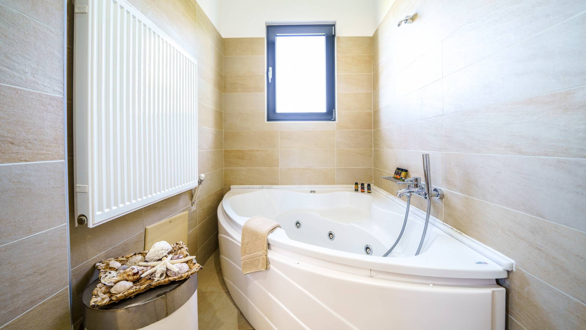 Eine private, sanft abfallende Straße führt Sie hinunter zum Meer, wo Sie eine praktische Bootsrampe finden. Dies bietet einen einfachen Zugang zum Meer, ideal zum Schnorcheln, wenn Sie ein Abenteurer sind. Wer weniger Lust auf Tiefsee-Erkundungen hat, kann ein erfrischendes Bad im privaten 60-Quadratmeter-Pool genießen und im einladenden Whirlpool entspannen. Im schattigen Bereich auf der Rückseite der Villa finden Sie Plastikspielzeug für Kinder und für Sportbegeisterte gibt es im Garten einen Basketballplatz. Wenn die Sonne untergeht und den Himmel und das Wasser in Rottöne taucht, können Sie diesen atemberaubenden Anblick vom Pool und von jedem Balkon aus genießen.