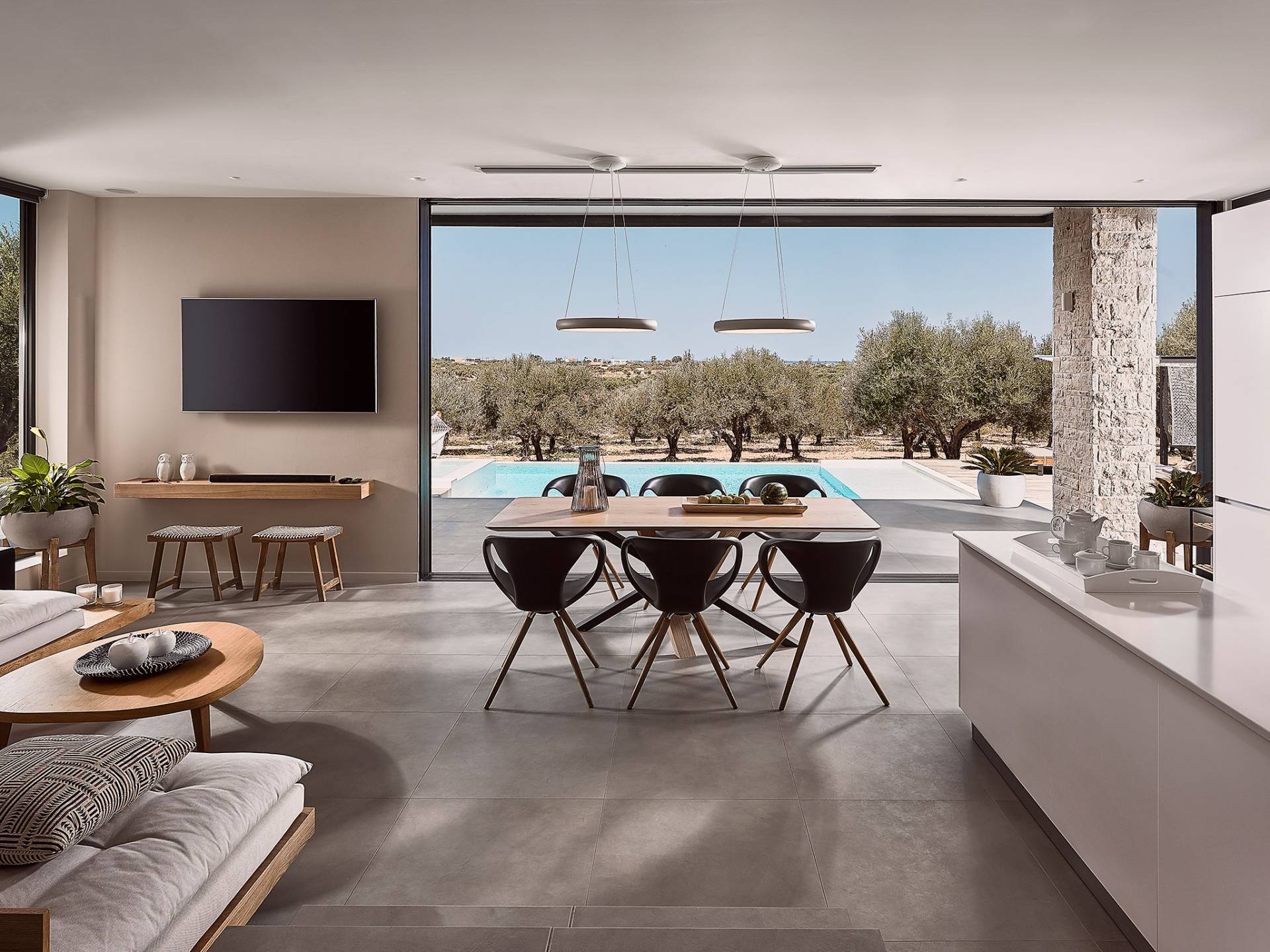 - Fully equipped modern kitchen & indoor dining overlooking the olive groves