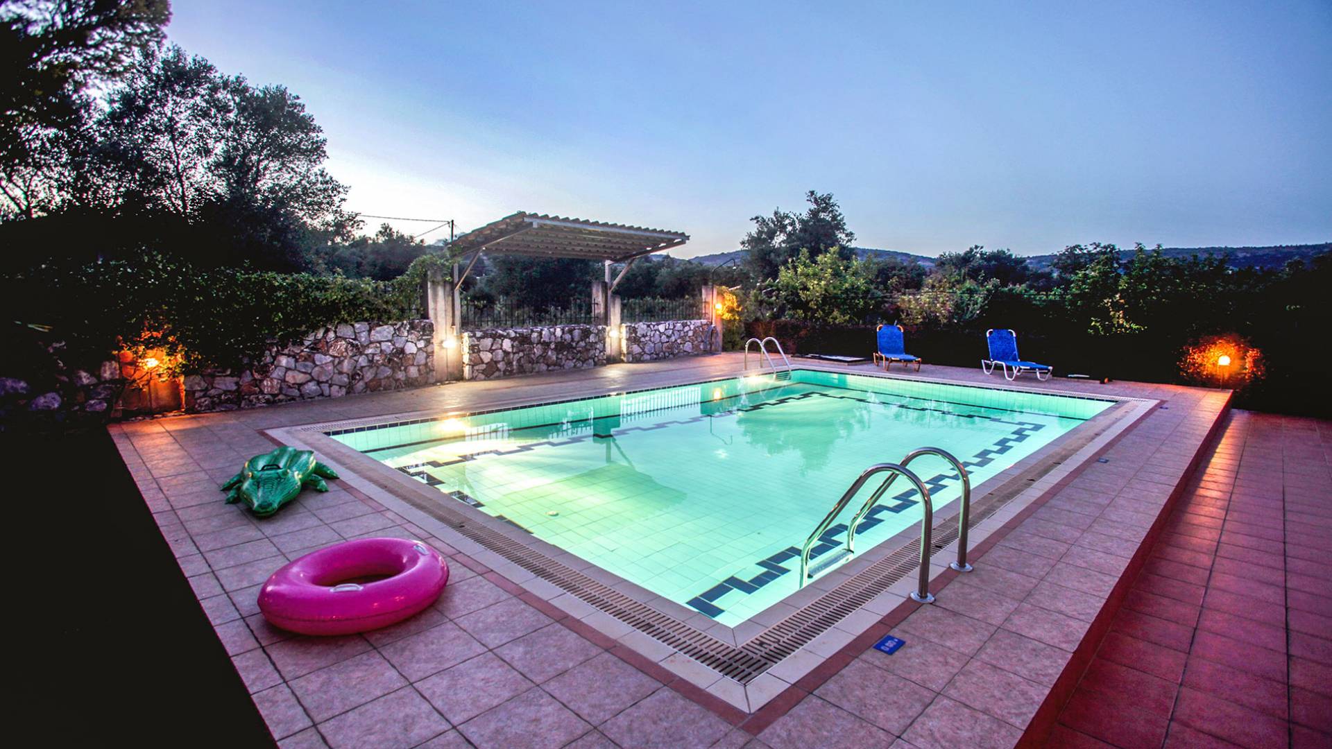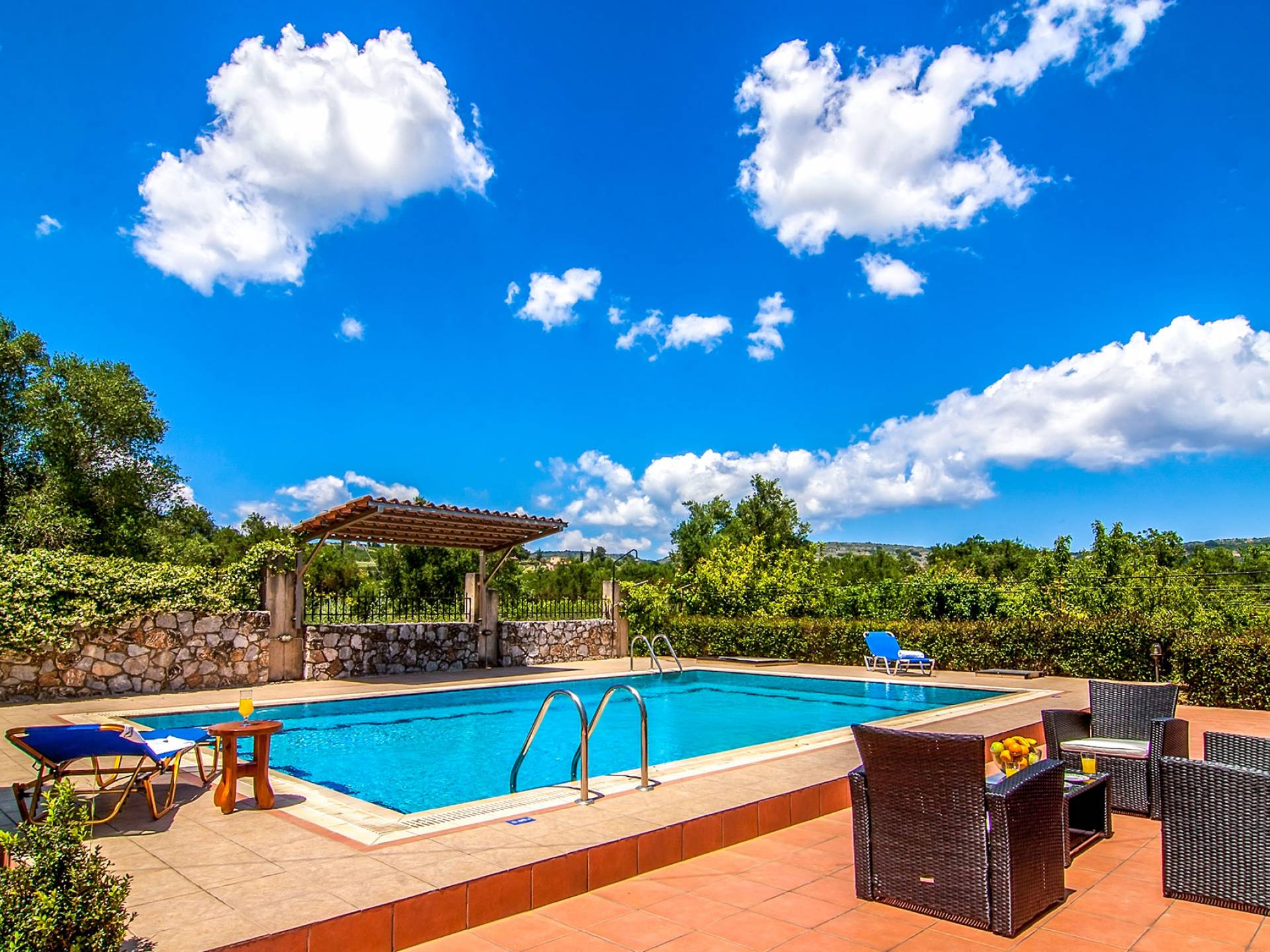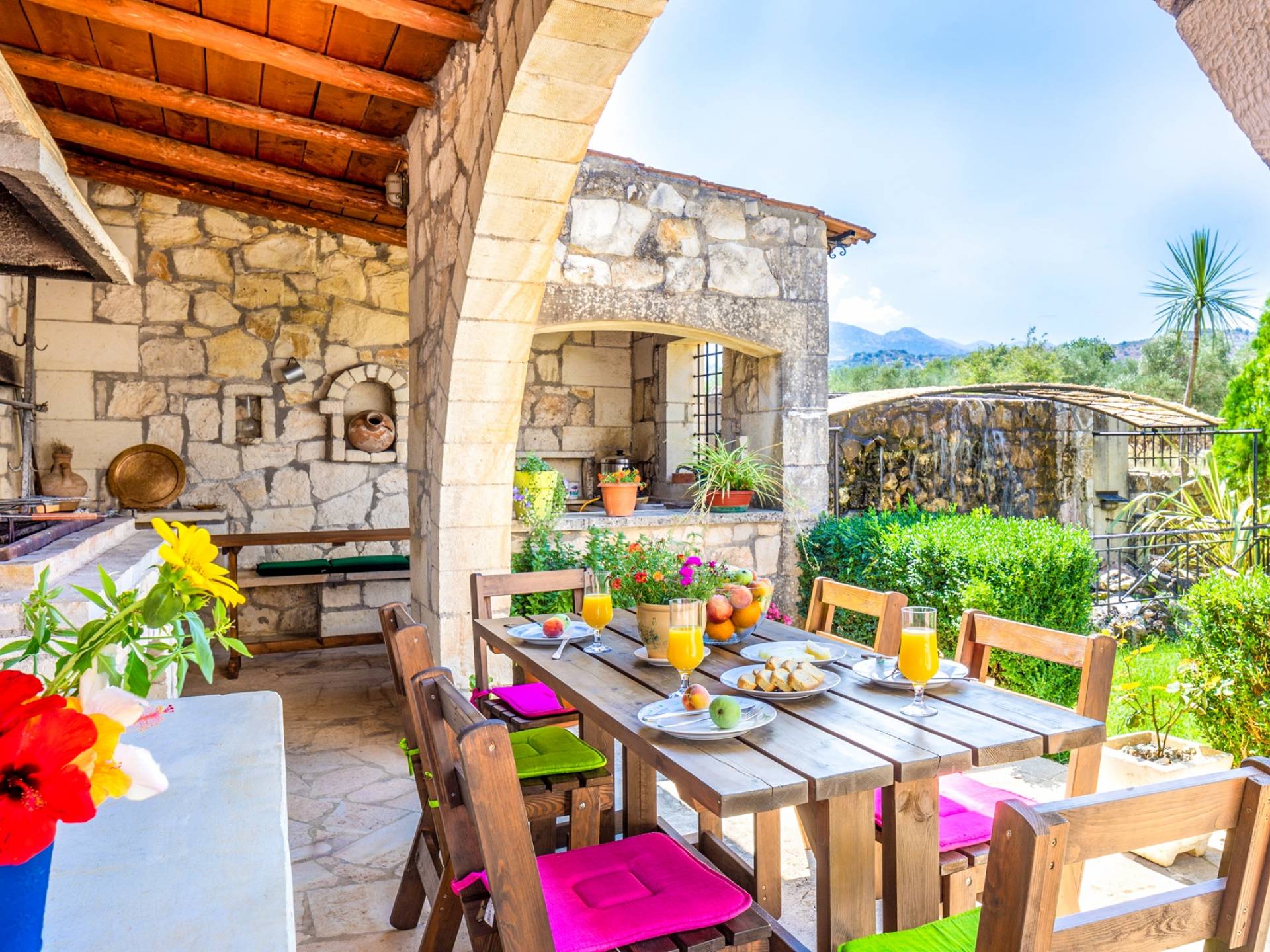 Das Äußere der Villa Marianna Crete ist ein einzigartiger Ort, der Tag und Nacht verschiedene Orte für verjüngende und entspannende Momente bietet. Der Hinterhof ist mit Obstbäumen und Gemüse bepflanzt, die den Gästen der Villa zur Verfügung stehen, während der Vorgarten mit Rasen, kleinen Bäumen und steinverzierten Ecken voller lokaler Kräuter, Kakteen und Blumen bedeckt ist. Der 50 m² große Pool mit einer Tiefe von 0,5 m bis 1,9 m befindet sich an der Seite des Hauses und bietet absolute Privatsphäre und endlose Stunden der Ruhe und Freude für die Großen und Kleinen.