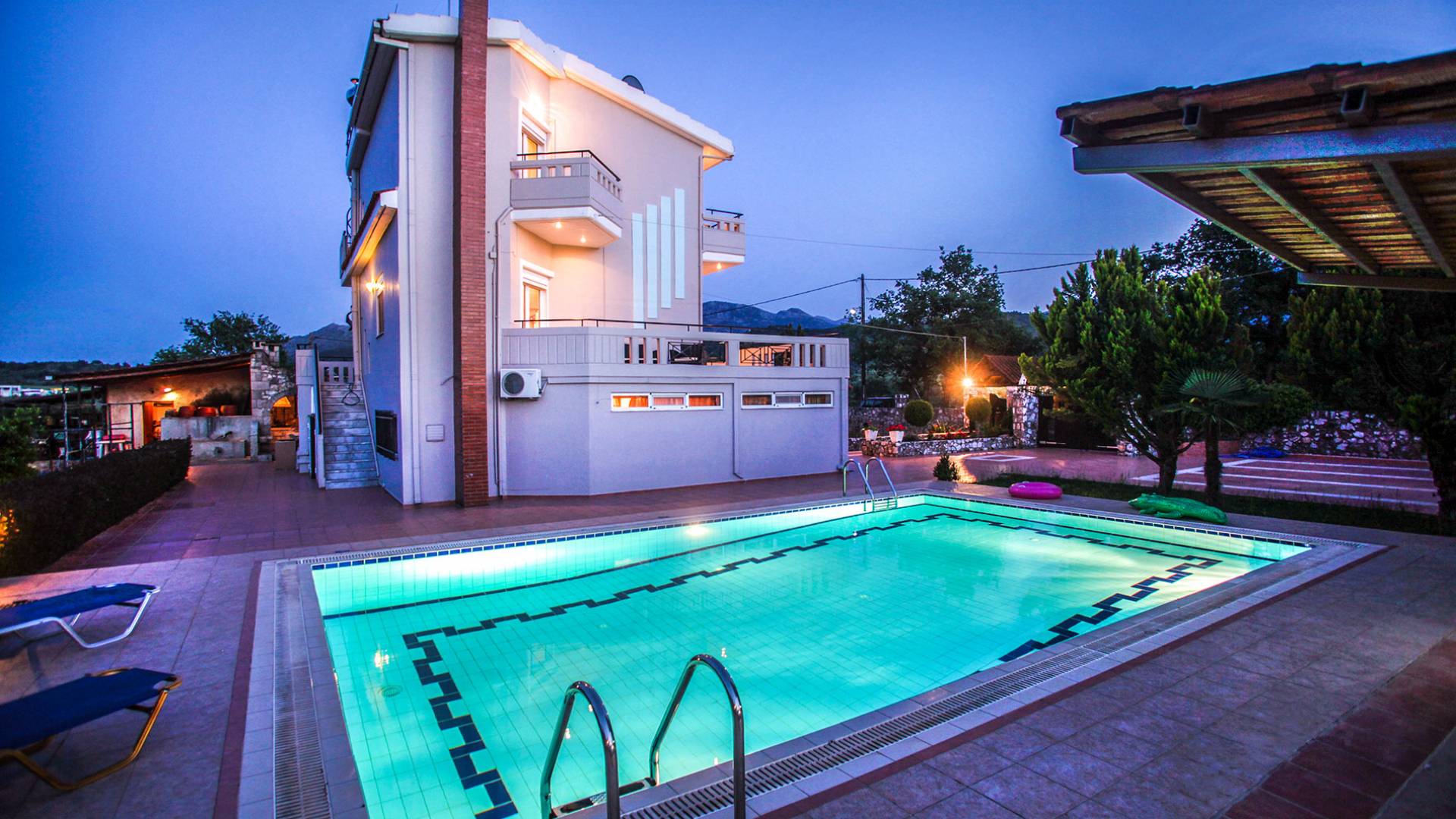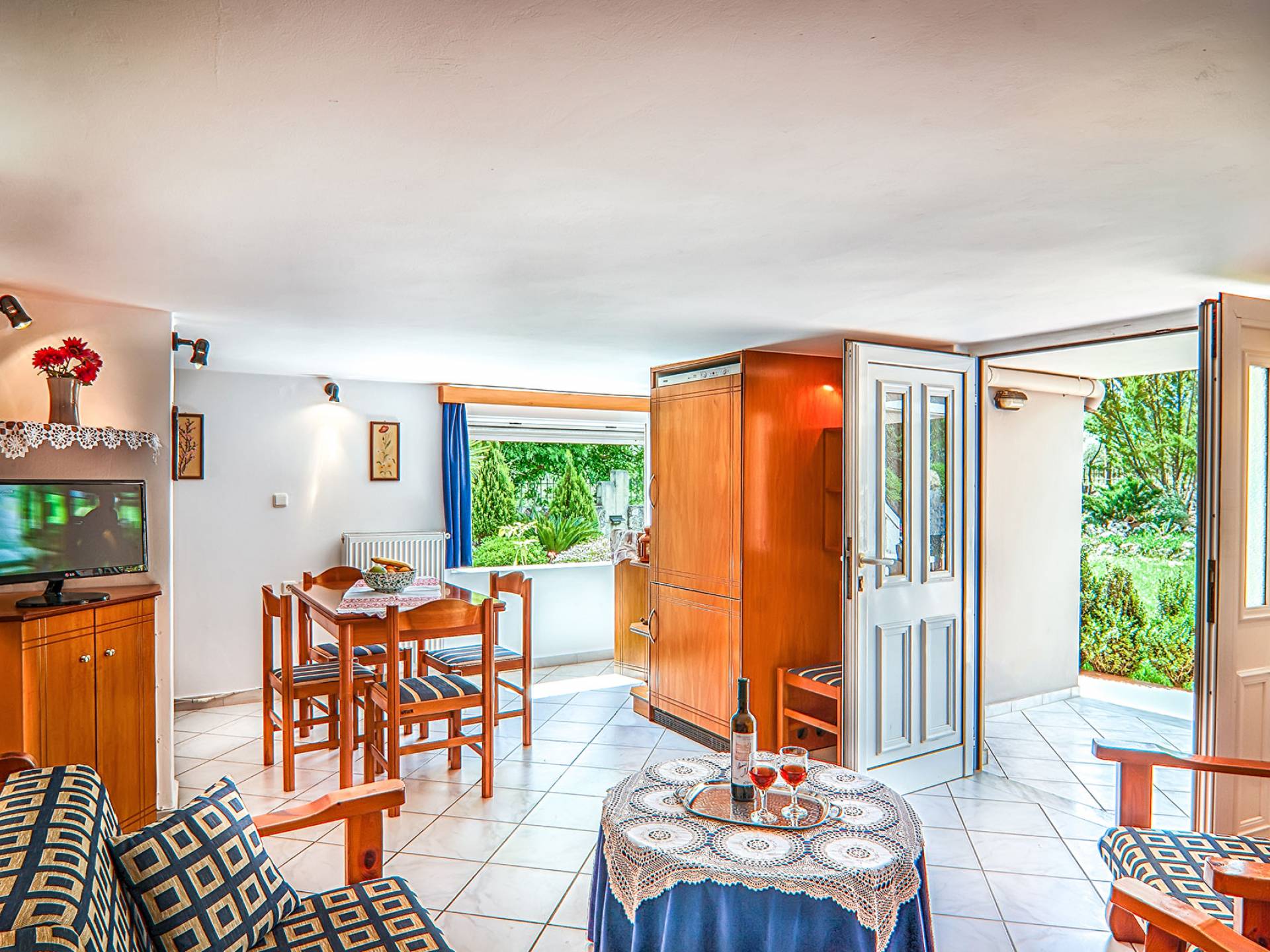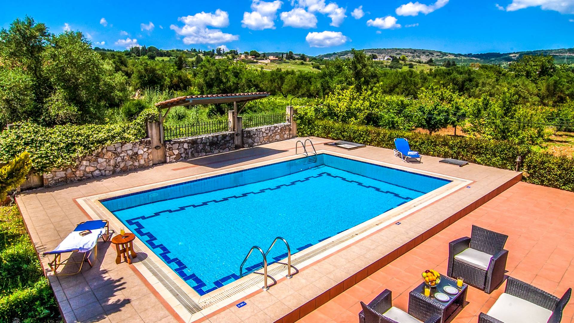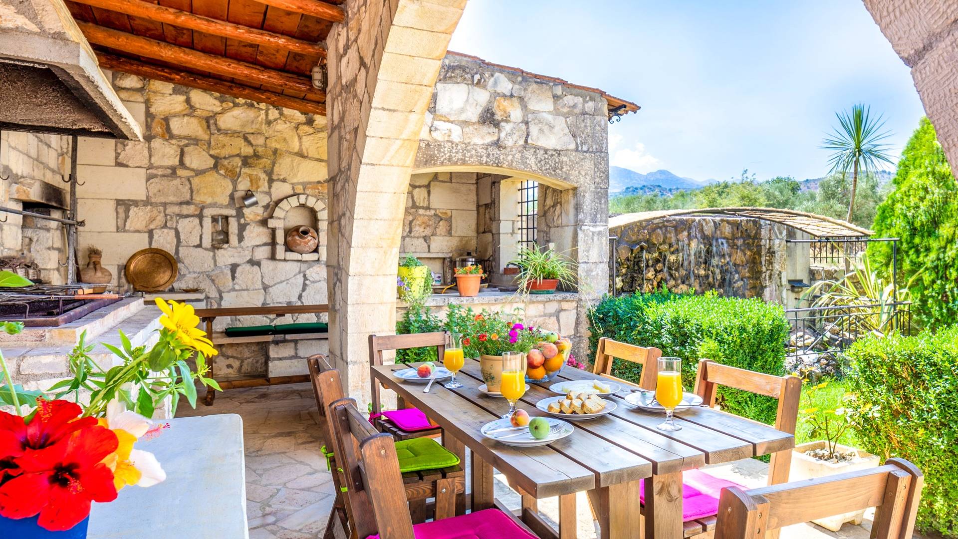 Das Äußere der Villa Marianna Crete ist ein einzigartiger Ort, der Tag und Nacht verschiedene Orte für verjüngende und entspannende Momente bietet. Der Hinterhof ist mit Obstbäumen und Gemüse bepflanzt, die den Gästen der Villa zur Verfügung stehen, während der Vorgarten mit Rasen, kleinen Bäumen und steinverzierten Ecken voller lokaler Kräuter, Kakteen und Blumen bedeckt ist. Der 50 m² große Pool mit einer Tiefe von 0,5 m bis 1,9 m befindet sich an der Seite des Hauses und bietet absolute Privatsphäre und endlose Stunden der Ruhe und Freude für die Großen und Kleinen.