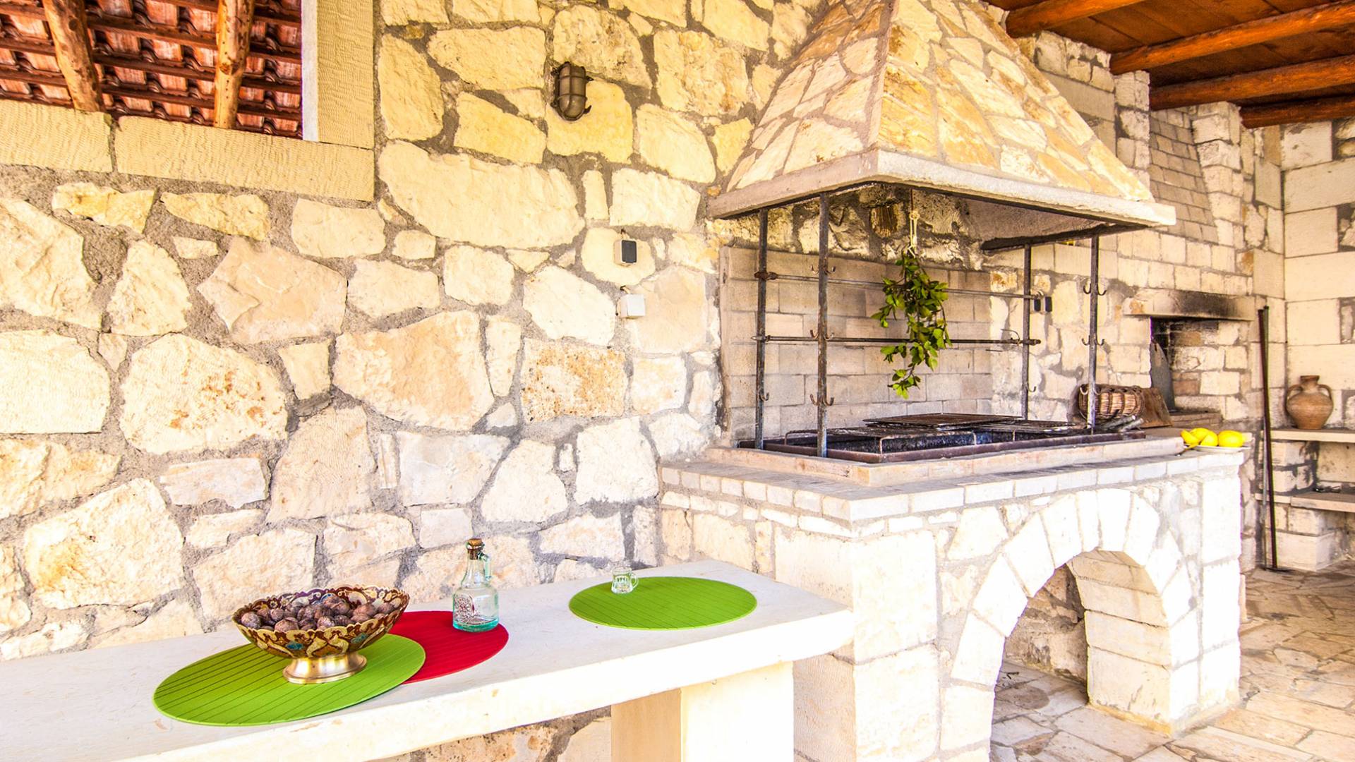 Der riesige traditionelle Grill ist ausschließlich aus lokalen Steinen gebaut und bei der Gestaltung hat sich der Besitzer bis ins kleinste Detail an die alte Bauweise gehalten. Direkt neben dem Grill befindet sich ein steinerner Wasserfall, der in einem kleinen mit Seerosen bedeckten Fischsee endet. Mit erstaunlicher Nachtbeleuchtung sorgt der Spot für Begeisterung und rundet das einzigartige Äußere der Villa ab. Am Eingang des Vorgartens befindet sich ein komfortabler privater Parkplatz für 3 Autos.
