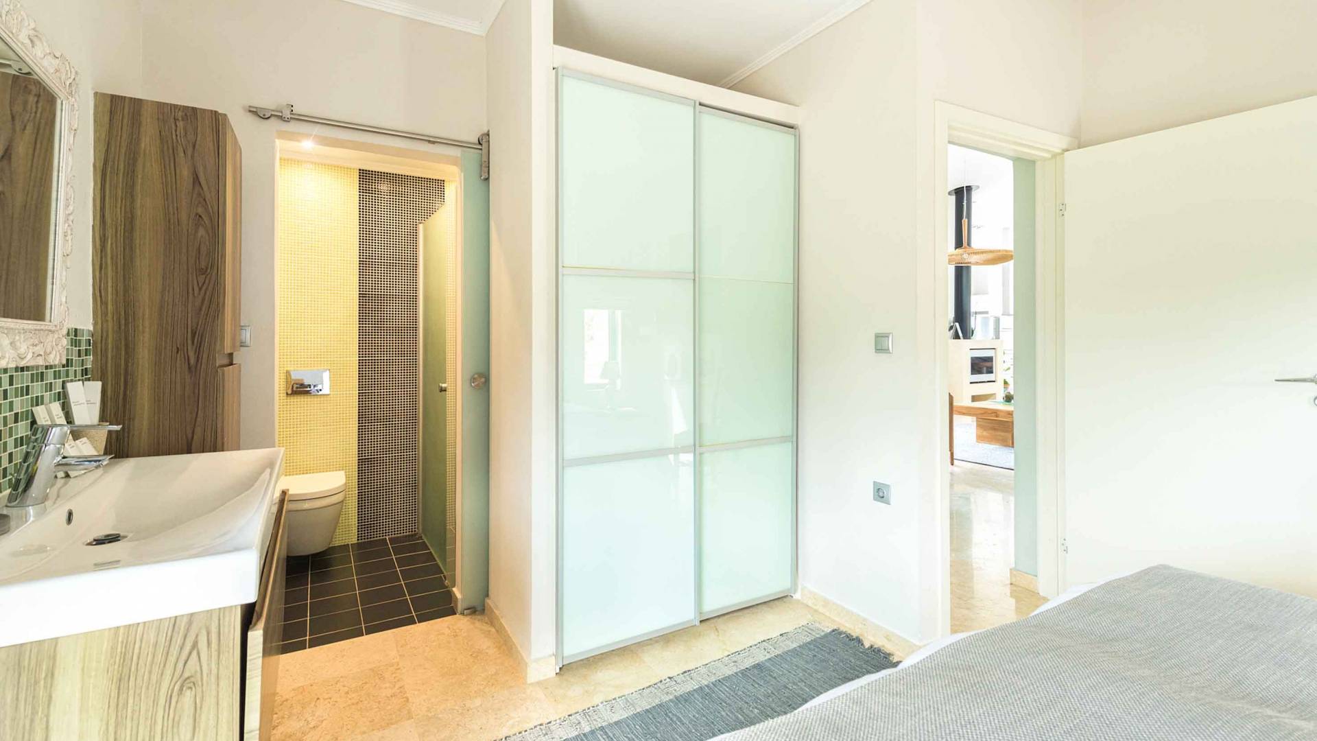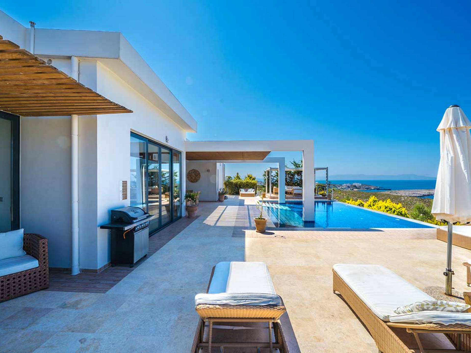 Wenn Sie die Villa Marten Chania betreten, bemerken Sie die modernen Merkmale dieser Immobilie, die aus einem offenen Wohnbereich und einer voll ausgestatteten modernen Küche besteht. Auf der gleichen Ebene bietet das Hauptschlafzimmer einen begehbaren Kleiderschrank und ein Badezimmer en Suite mit Jacuzzi-Badewanne. Zwei weitere Schlafzimmer auf der gleichen Ebene verfügen ebenfalls über ein eigenes Badezimmer mit Dusche. Alle Zimmer haben eine eigene Terrasse.