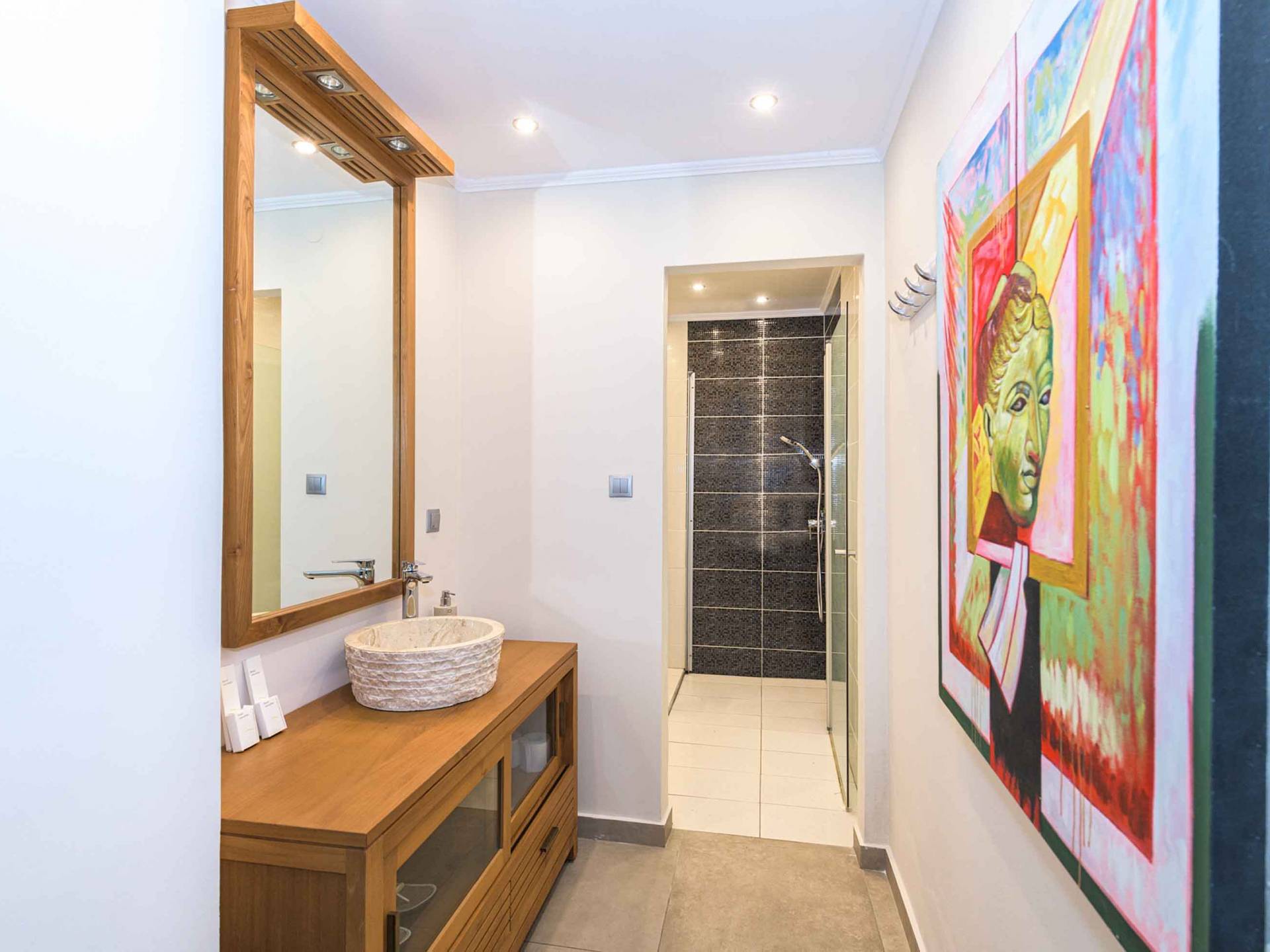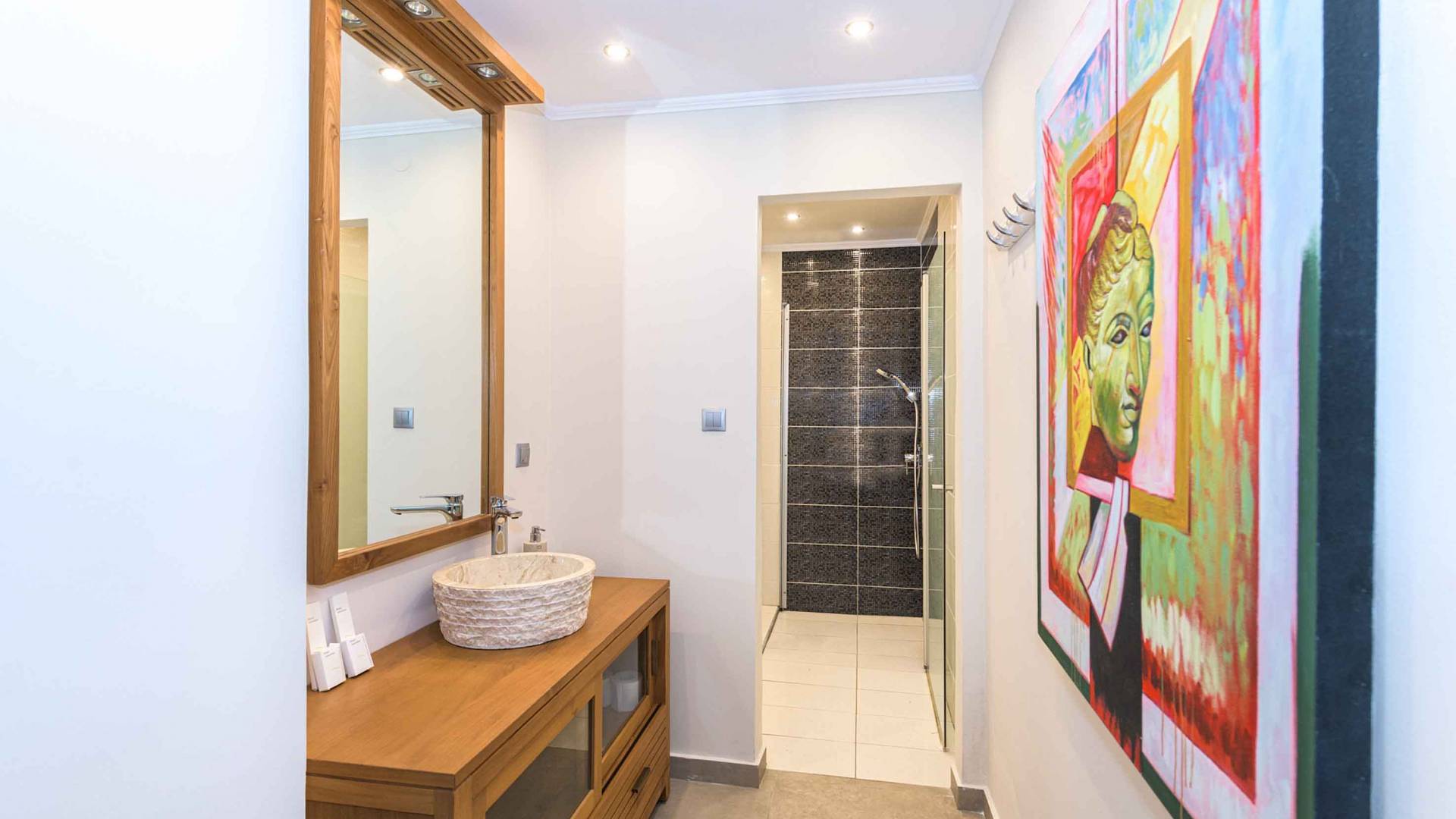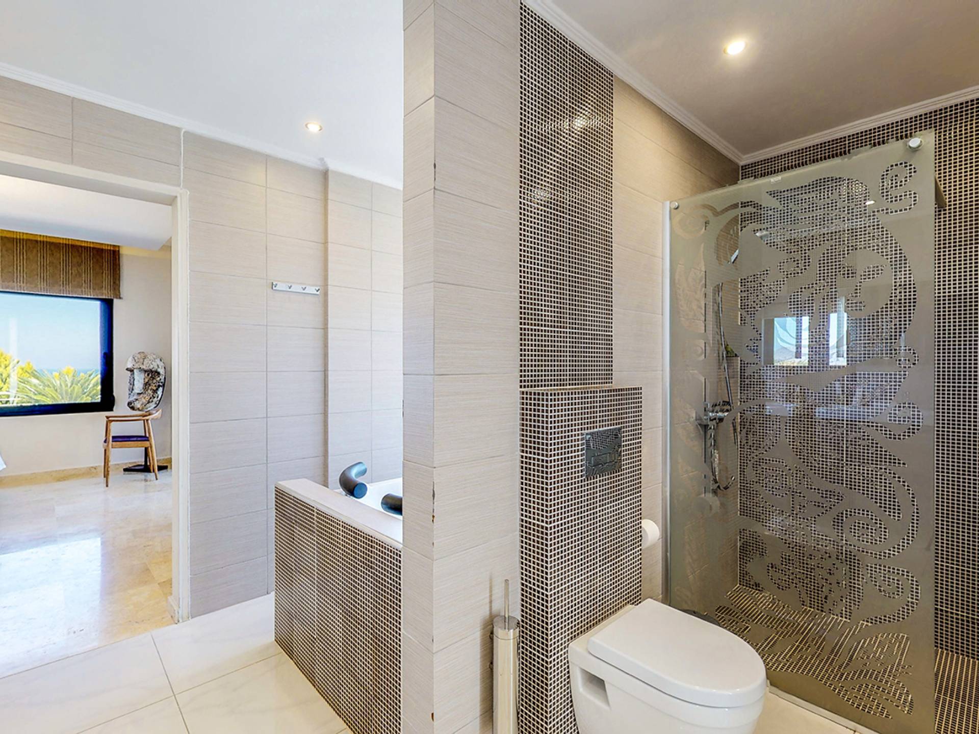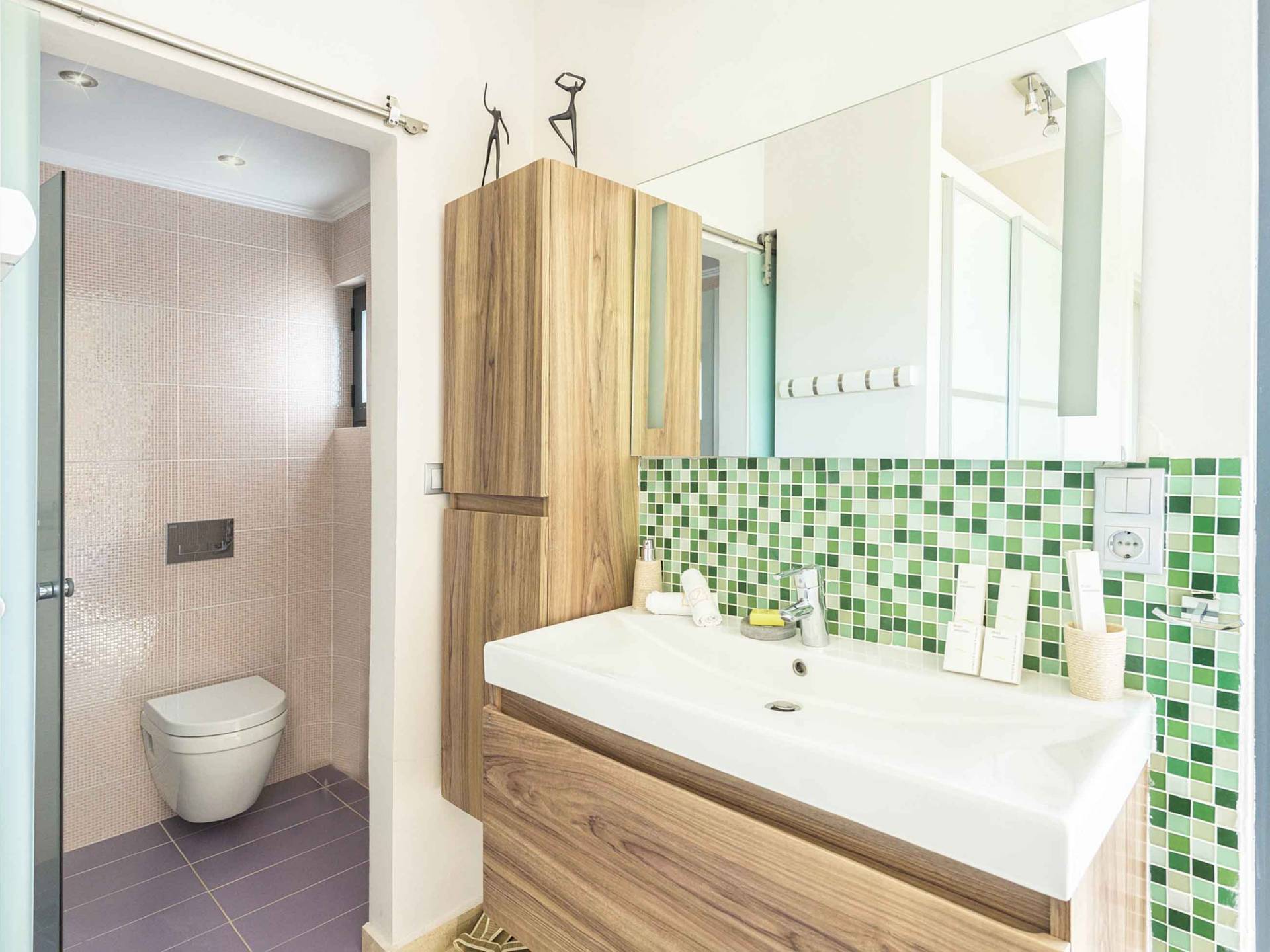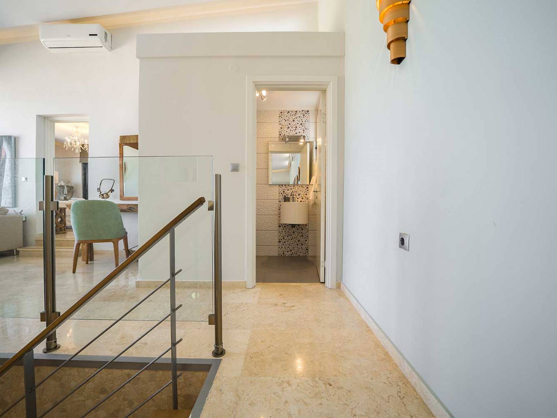 In der unteren Etage finden Sie zwei Schlafzimmer mit Badezimmern en Suite sowie einen komplett ausgestatteten Waschraum mit Waschmaschine, Trockner und Bügeleisen. Mit einer herrlichen Aussicht finden Sie ganz in der Nähe der Villa Marten Chania alle notwendigen Annehmlichkeiten und einige der schönsten Strände der Gegend. Eine große überdachte Terrasse und der Infinity-Pool sorgen dafür, dass Sie sich entspannen und die herrliche Aussicht genießen, die diese Immobilie für unvergessliche Sommerferien bietet.