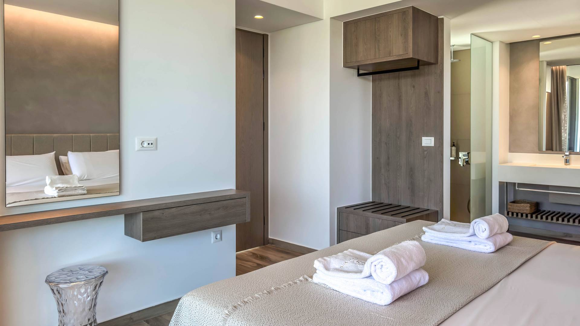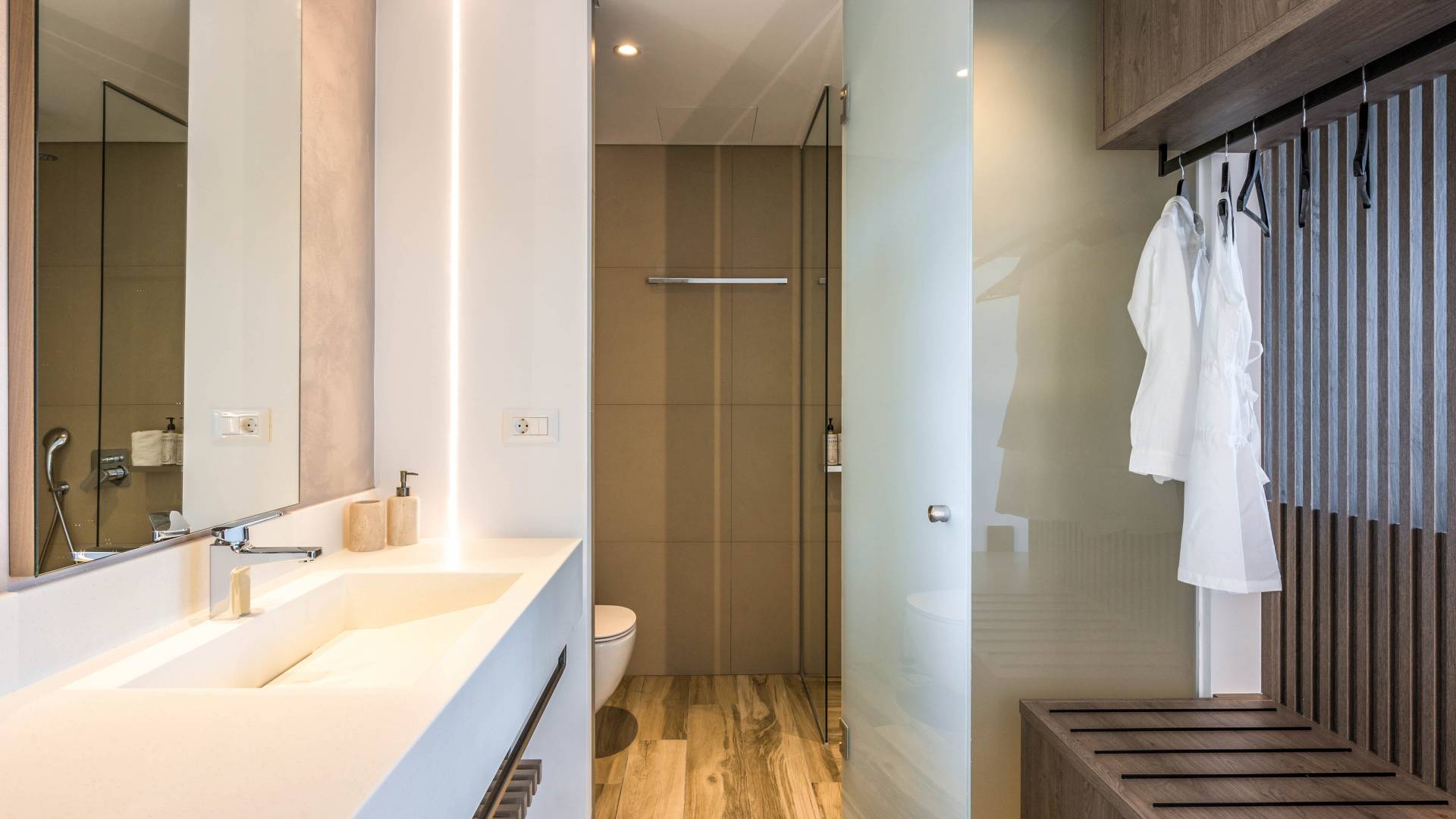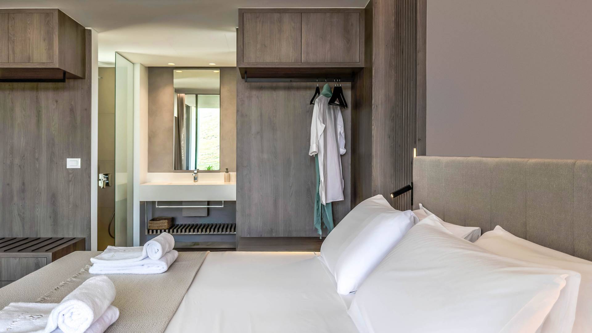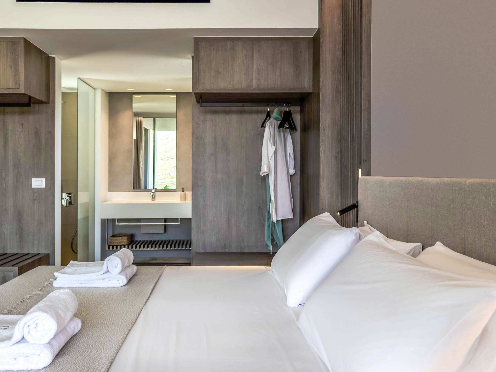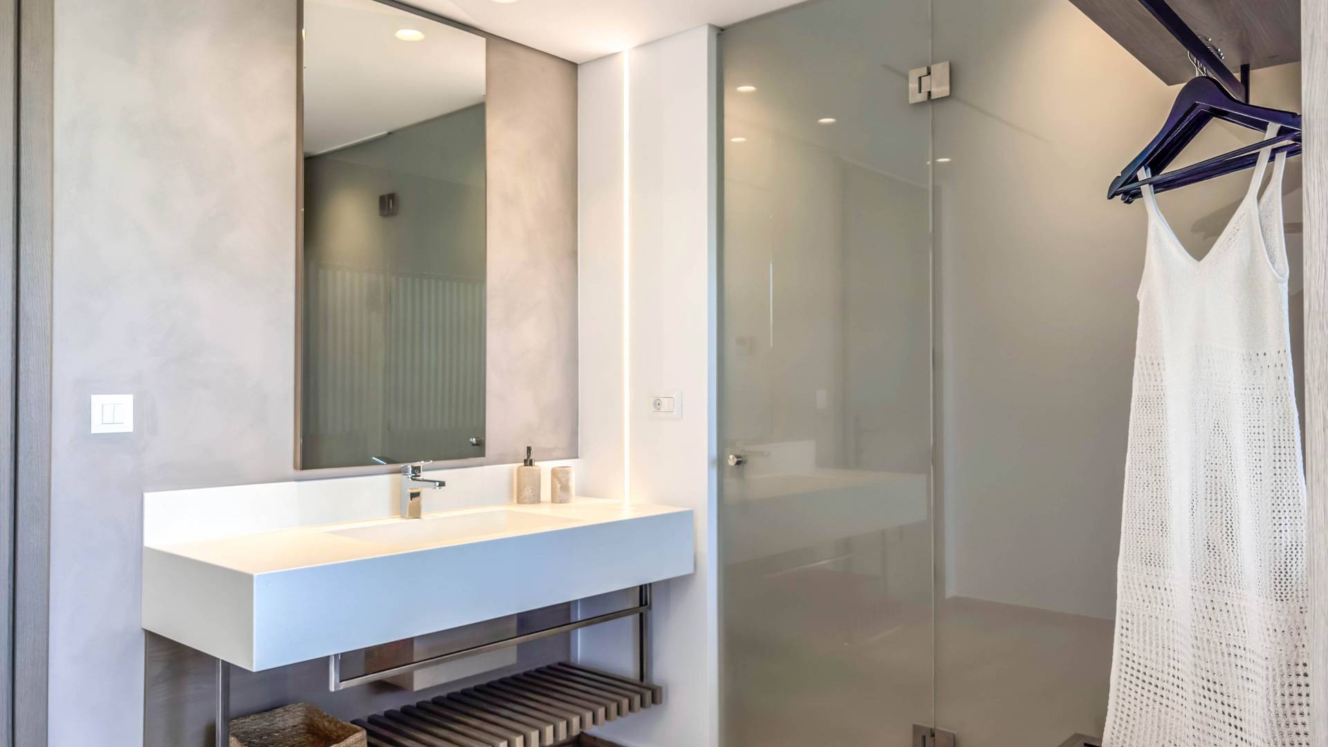 Im Inneren der Villa befindet sich eine geräumige, offene Küche mit modernen Geräten und großen Arbeitsflächen. Die Küche grenzt an einen Essbereich und eine Lounge, die um einen umweltfreundlichen Kamin herum angeordnet sind. Utopia bietet Platz für bis zu 10 Gäste und jedes Schlafzimmer ist ein luxuriöser Rückzugsort mit eigenem Bad mit Dusche und atemberaubendem Blick auf das Meer und die Berge.
