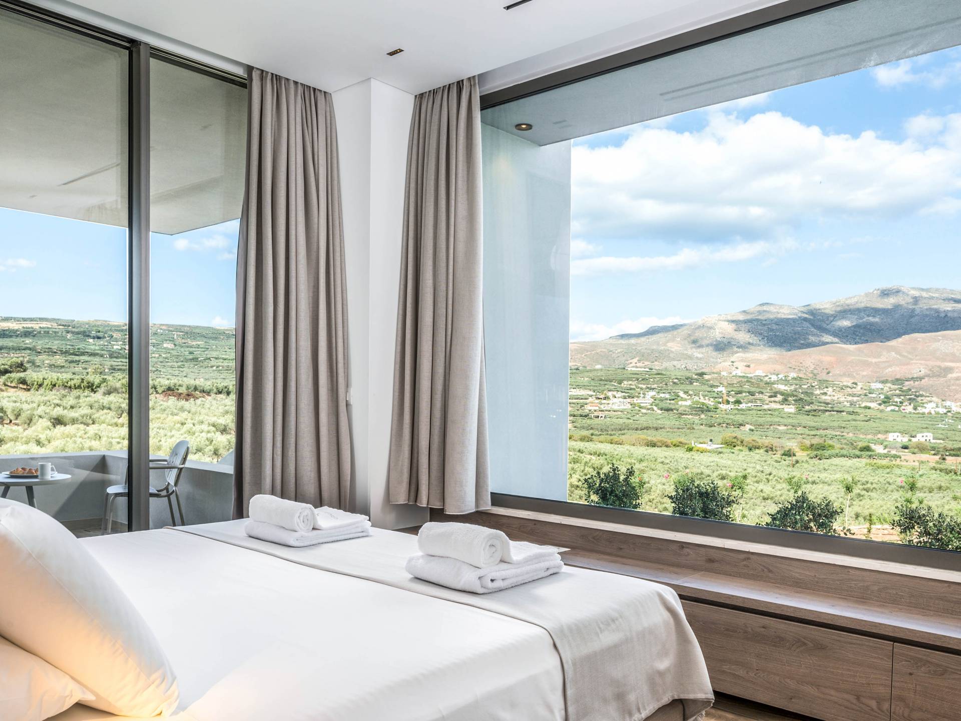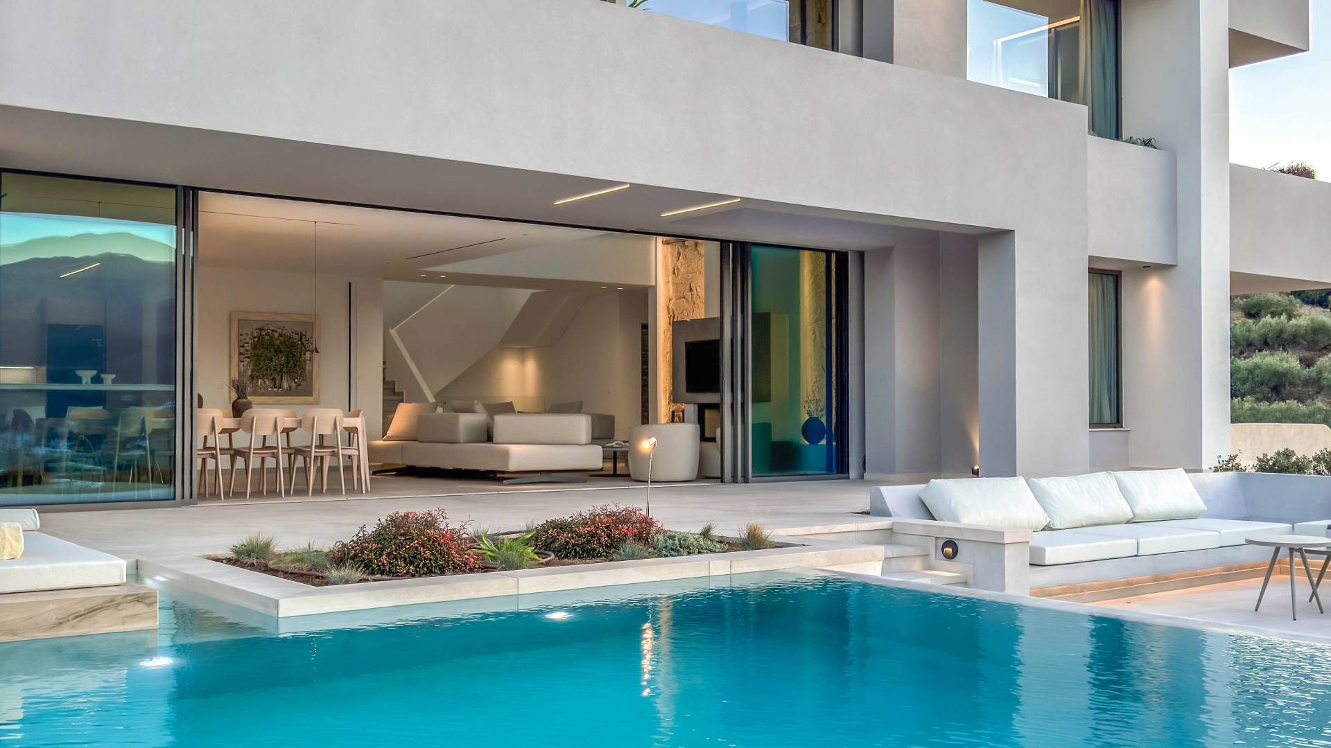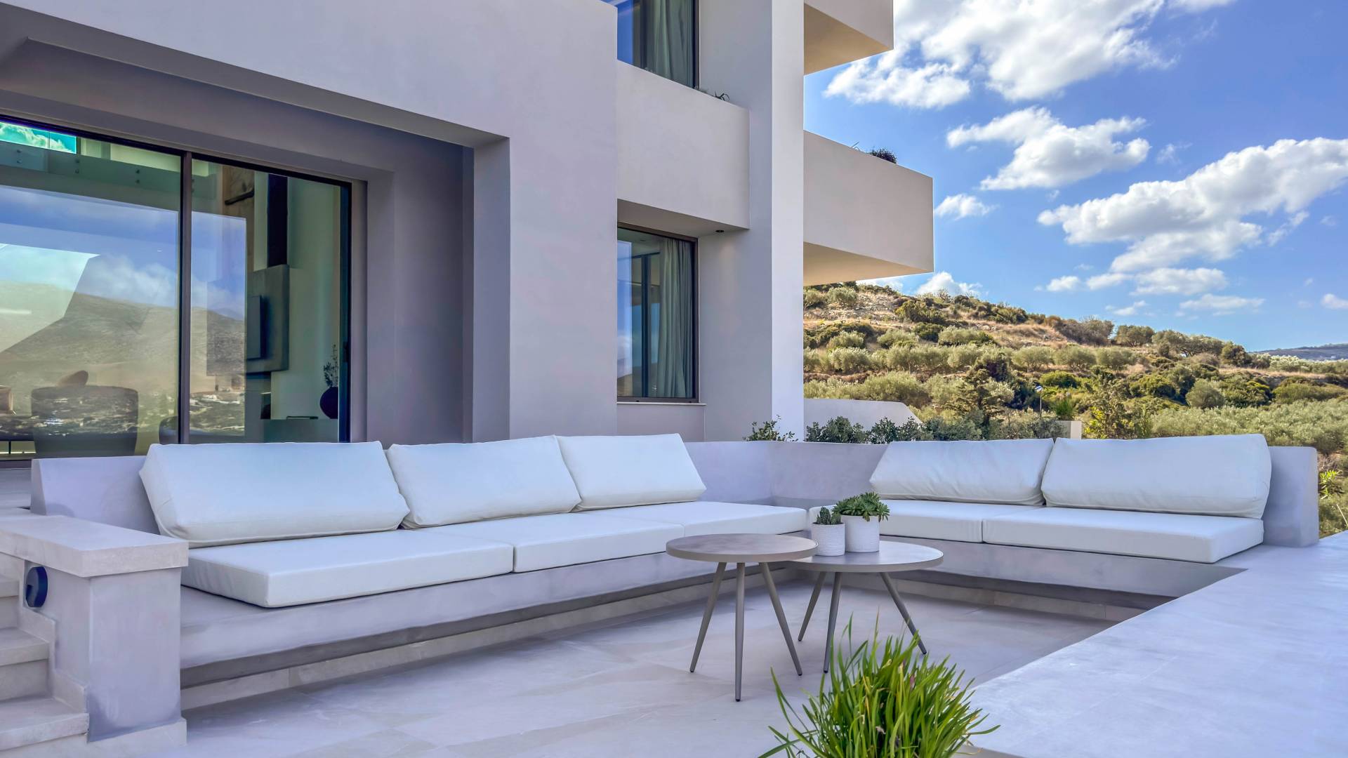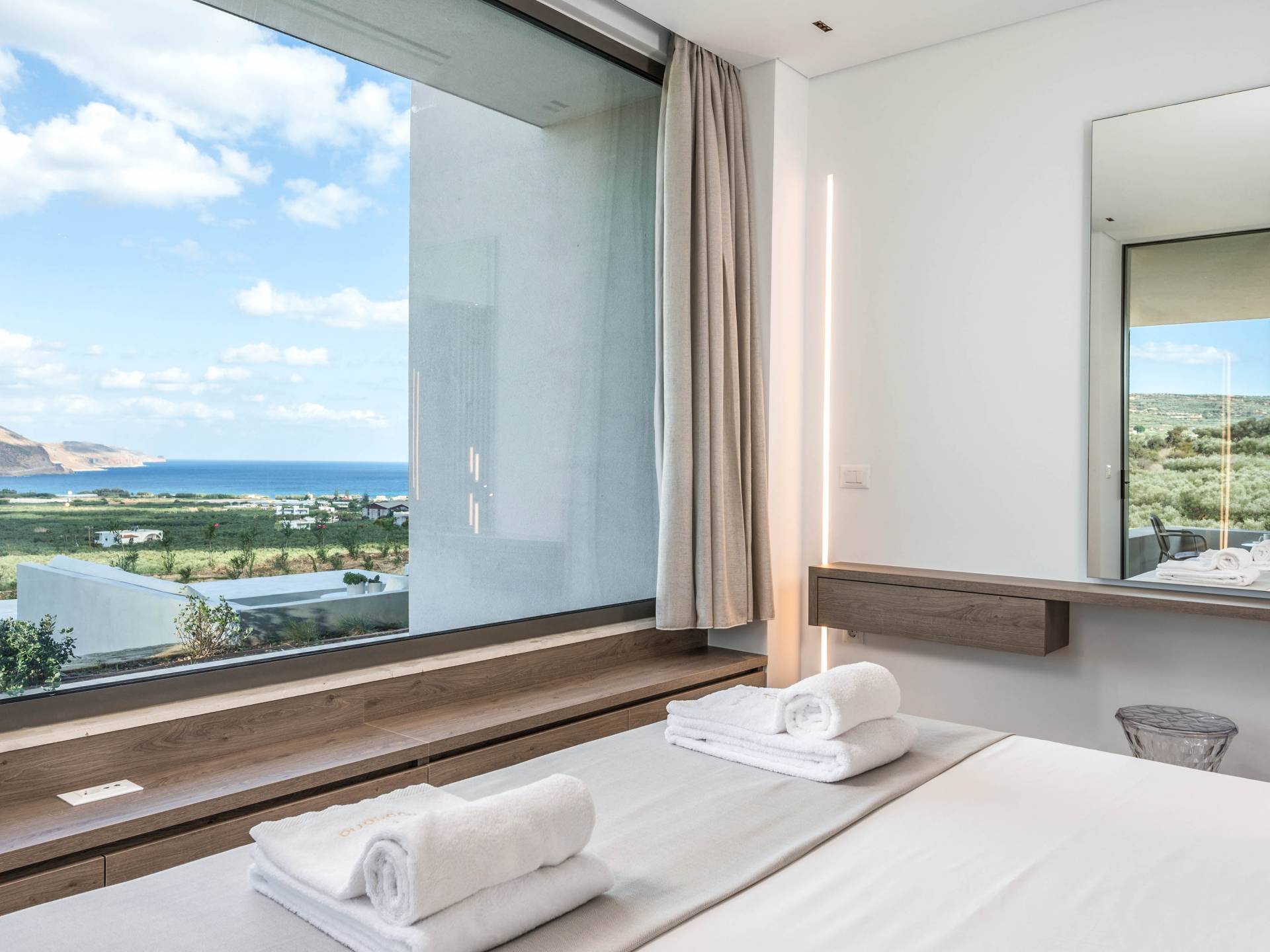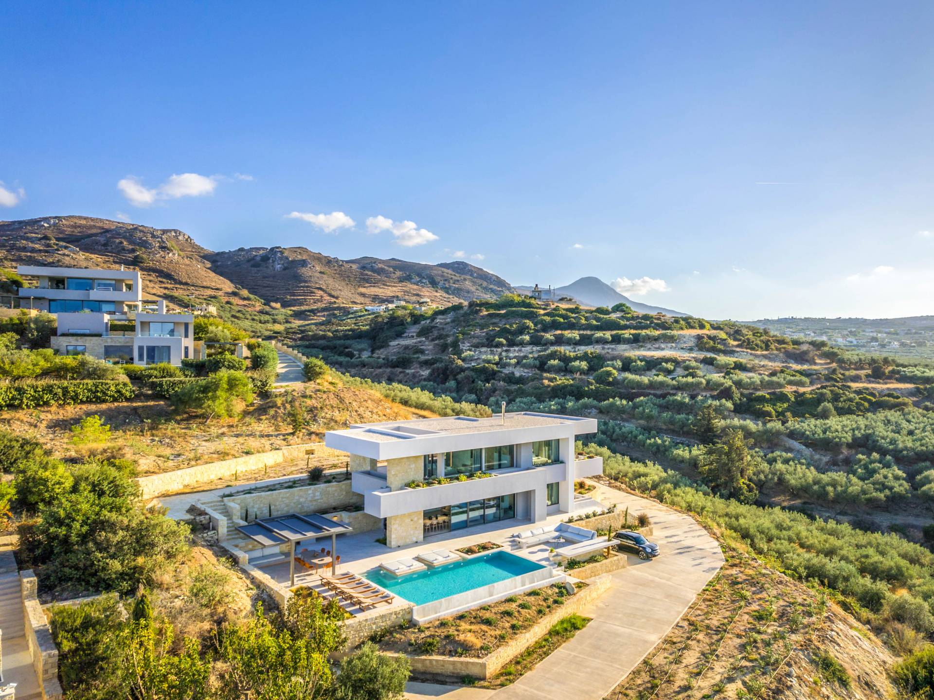 Die ultramoderne und stilvolle Villa mit fünf Schlafzimmern bietet einen ungehinderten Blick über den grünen Glanz der Olivenbäume auf die Bucht von Kissamos und das atemberaubende türkisfarbene Meer. Der weitläufige Außenbereich ist um einen 50 Quadratmeter großen Swimmingpool herum angeordnet. Utopia ist unsere größte Villa mit Meerblick am Hang. Das Schwesterobjekt Majestic liegt etwas höher am Hang.