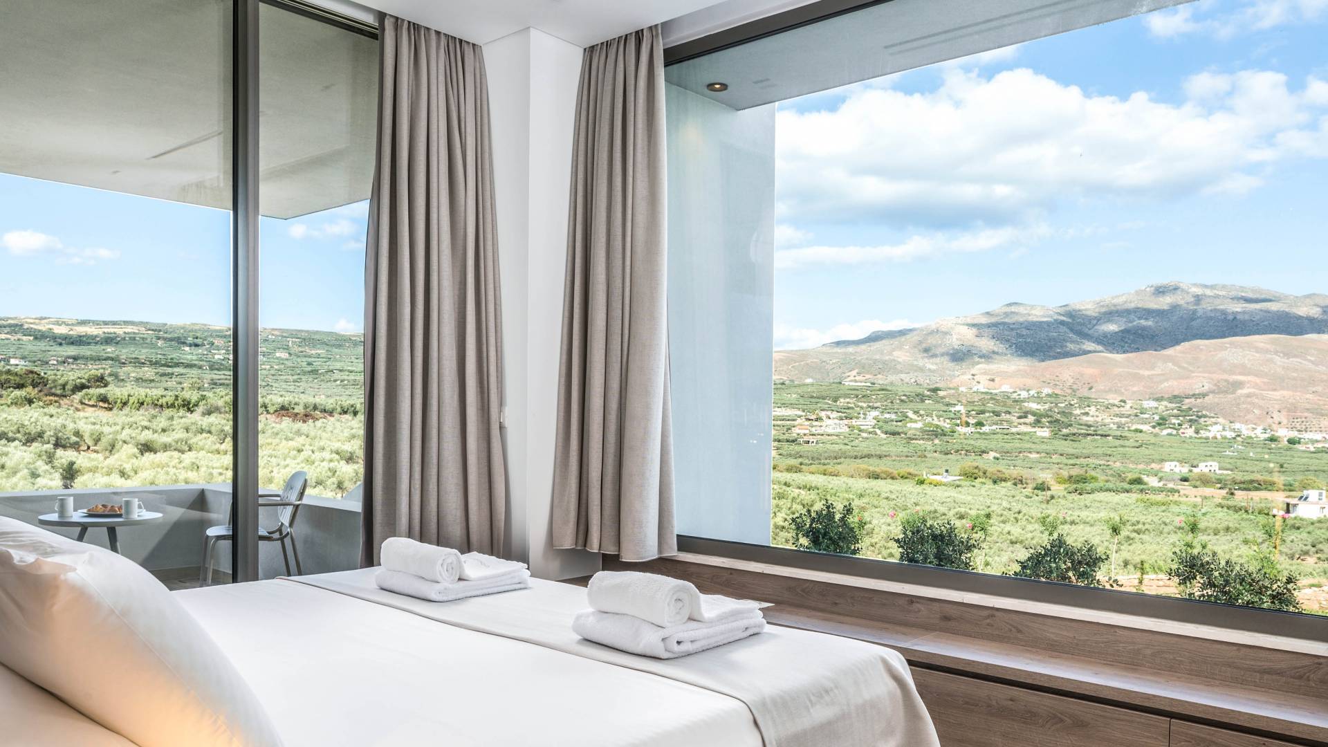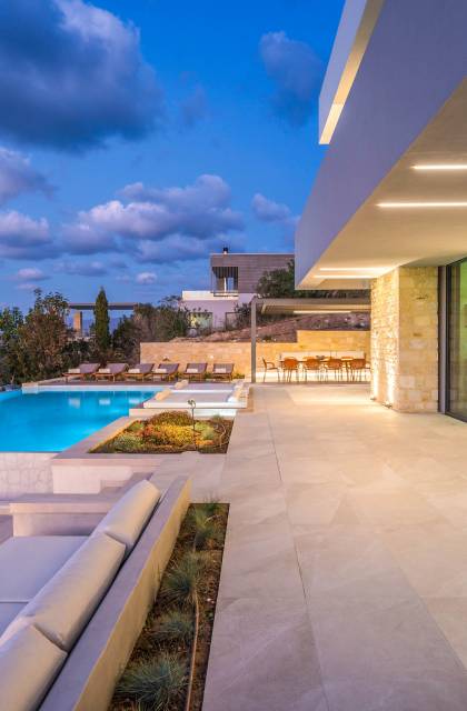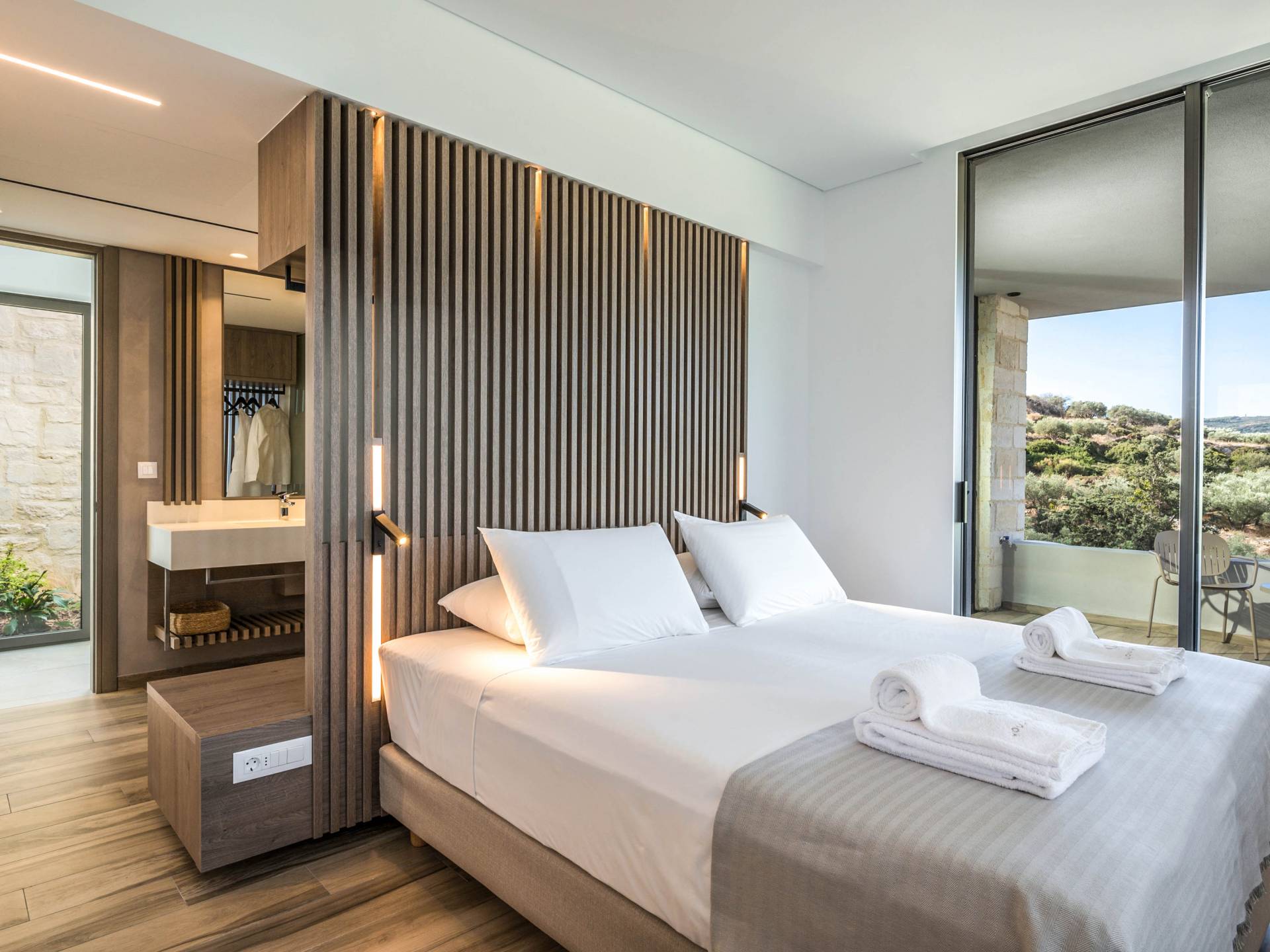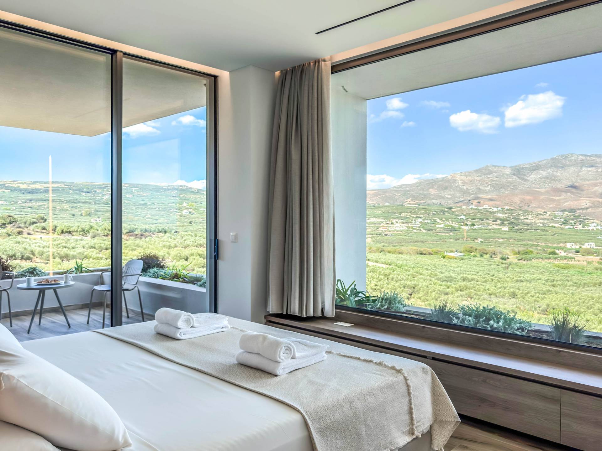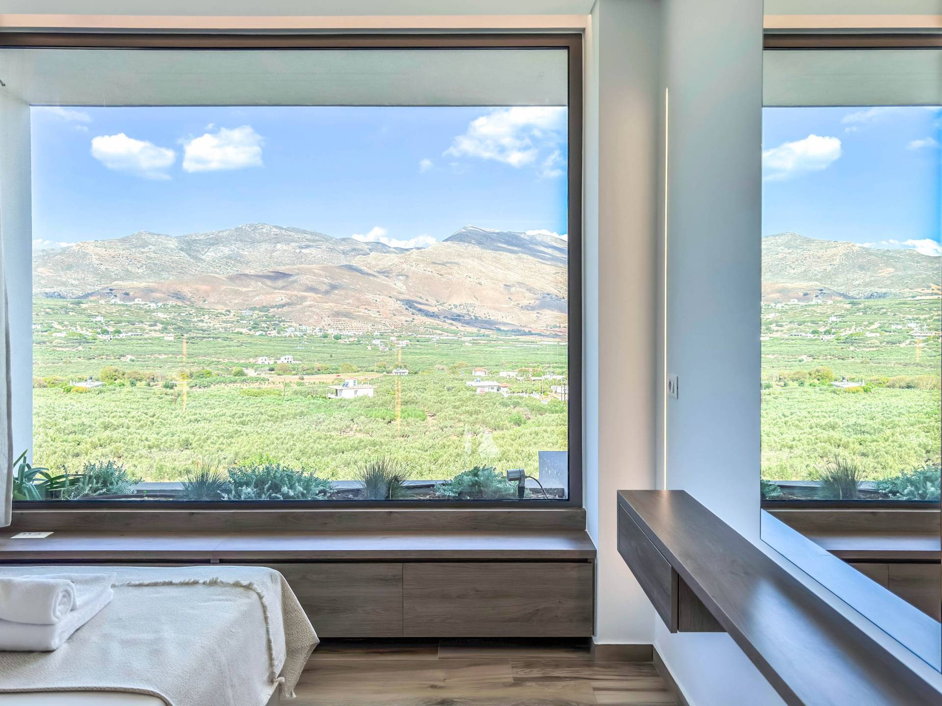 Die ultramoderne und stilvolle Villa mit fünf Schlafzimmern bietet einen ungehinderten Blick über den grünen Glanz der Olivenbäume auf die Bucht von Kissamos und das atemberaubende türkisfarbene Meer. Der weitläufige Außenbereich ist um einen 50 Quadratmeter großen Swimmingpool herum angeordnet. Utopia ist unsere größte Villa mit Meerblick am Hang. Das Schwesterobjekt Majestic liegt etwas höher am Hang.