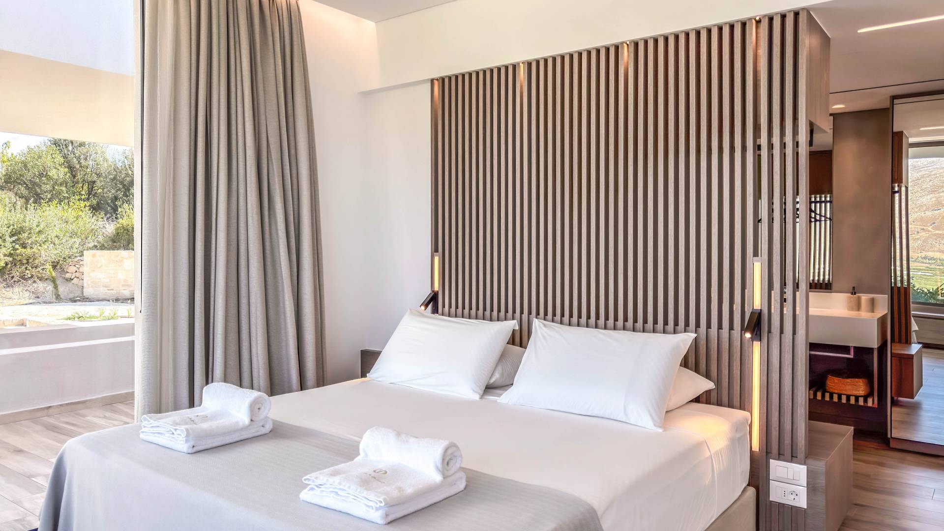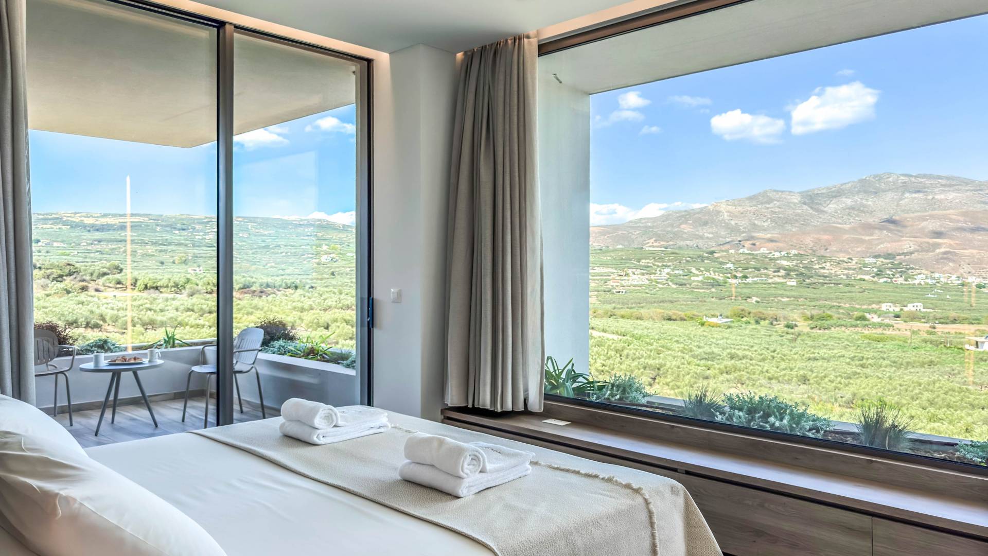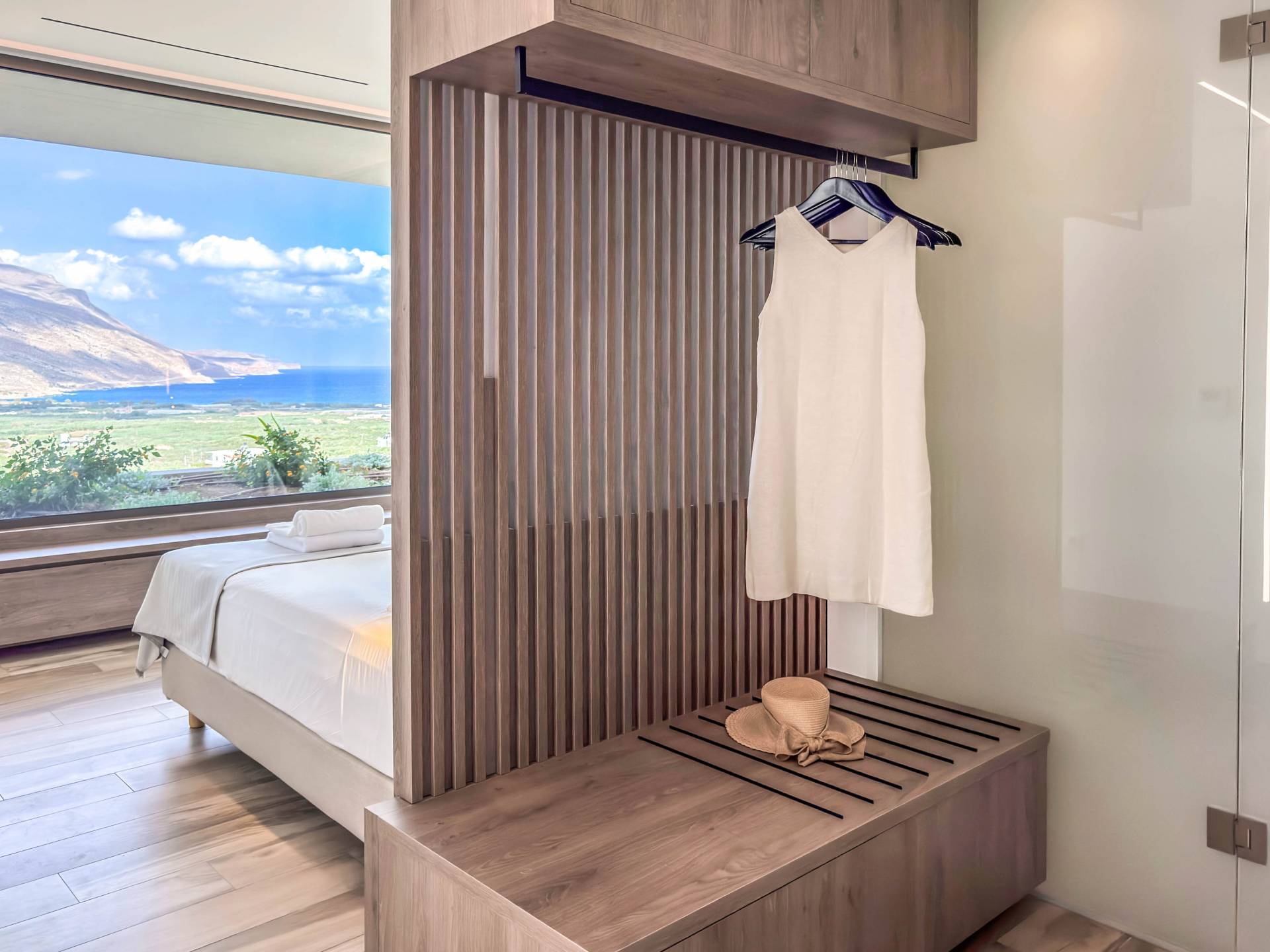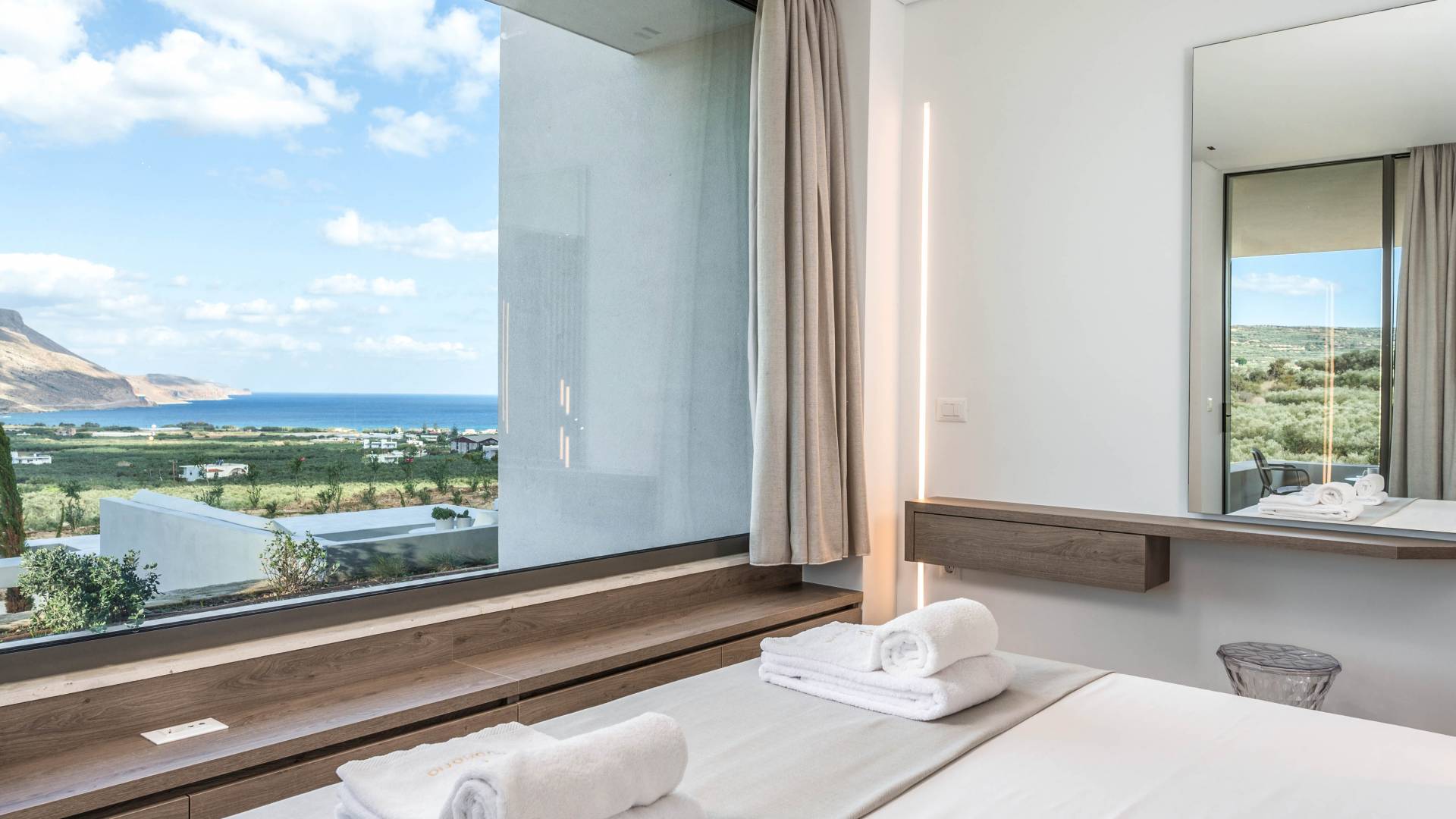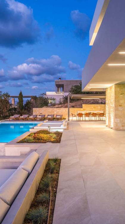 Die ultramoderne und stilvolle Villa mit fünf Schlafzimmern bietet einen ungehinderten Blick über den grünen Glanz der Olivenbäume auf die Bucht von Kissamos und das atemberaubende türkisfarbene Meer. Der weitläufige Außenbereich ist um einen 50 Quadratmeter großen Swimmingpool herum angeordnet. Utopia ist unsere größte Villa mit Meerblick am Hang. Das Schwesterobjekt Majestic liegt etwas höher am Hang.