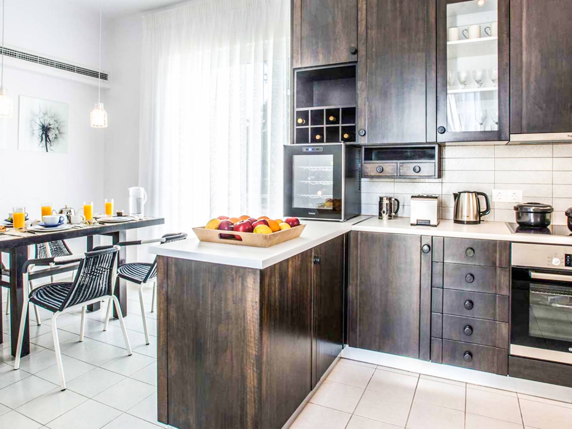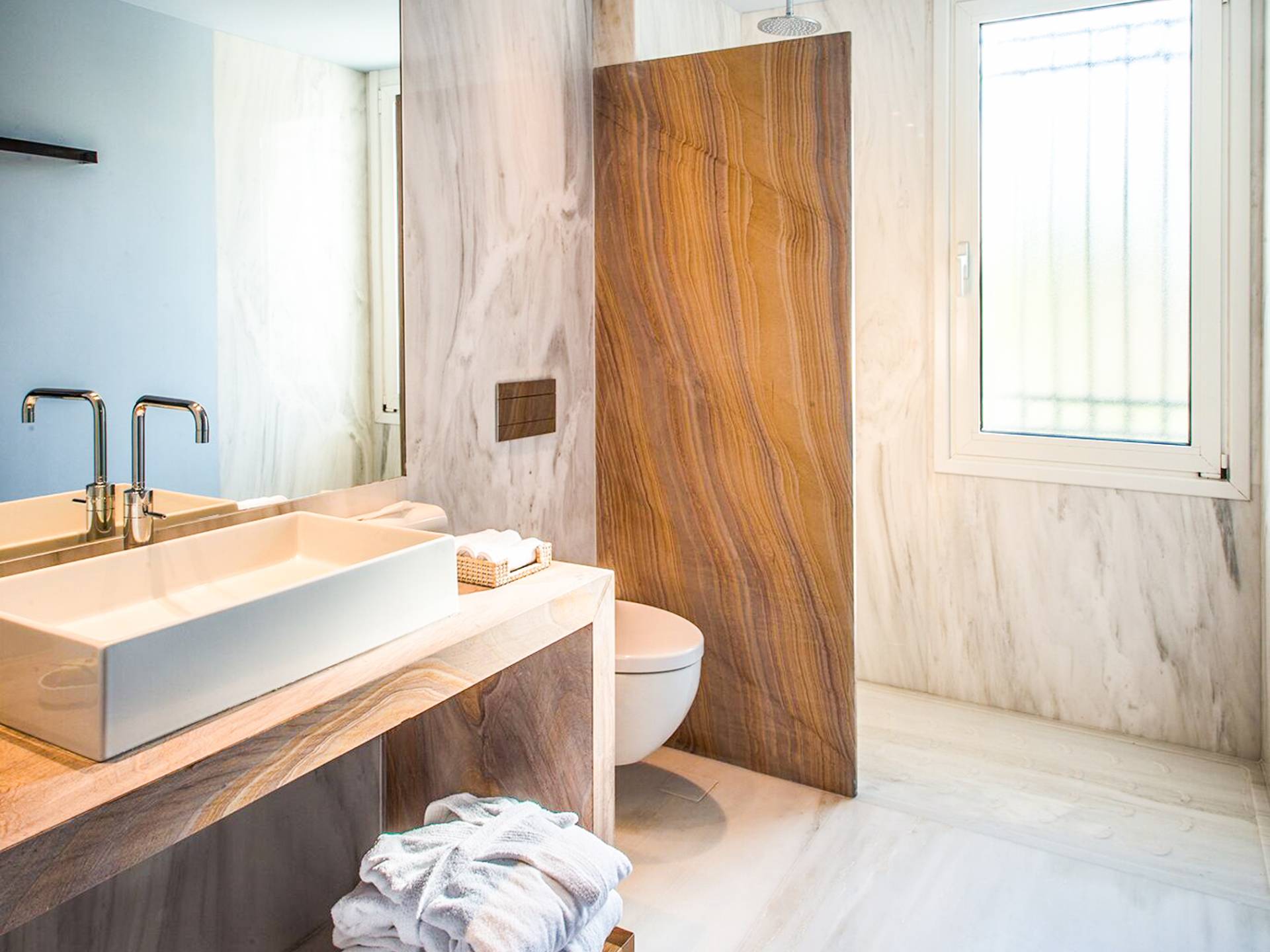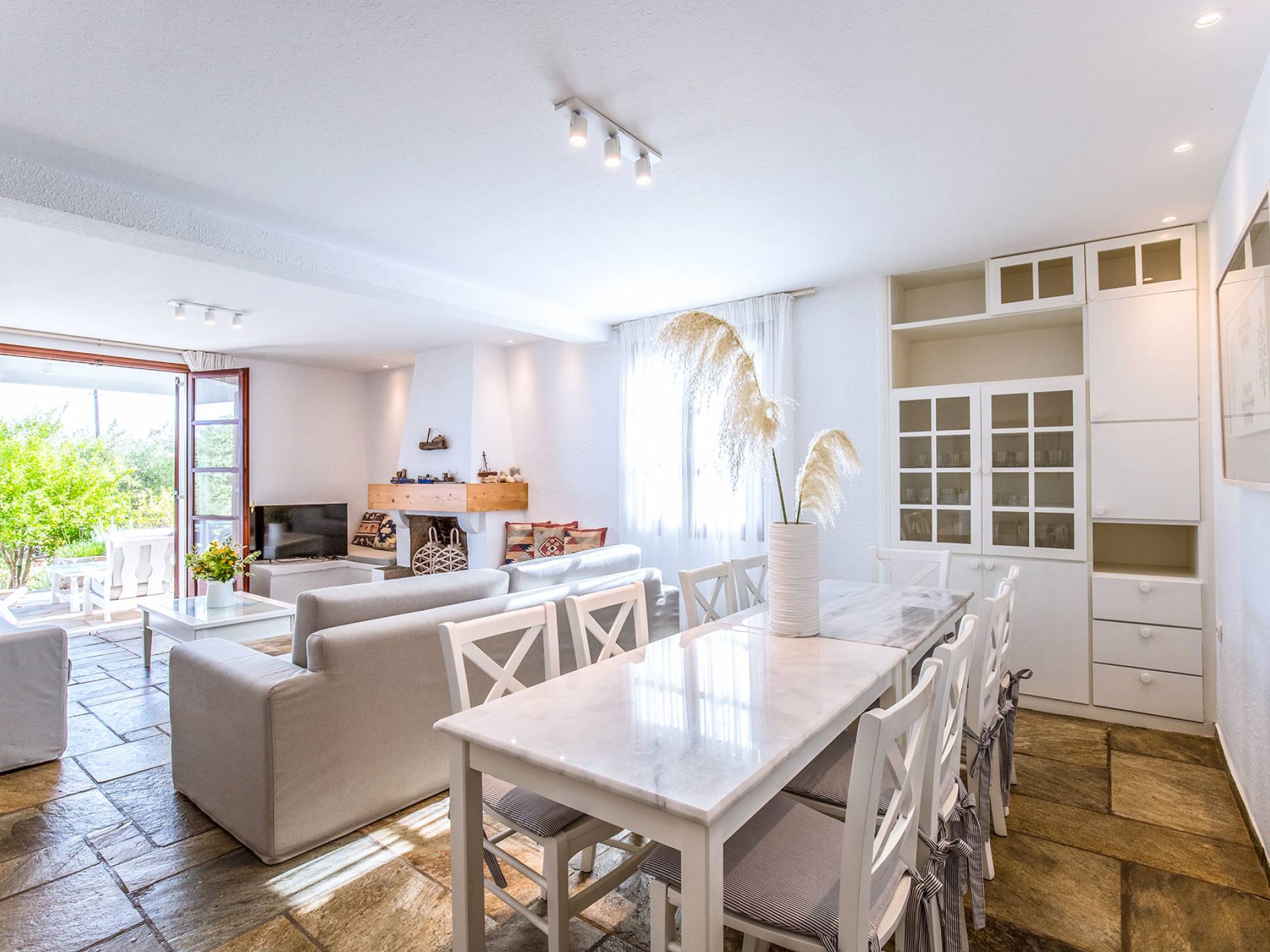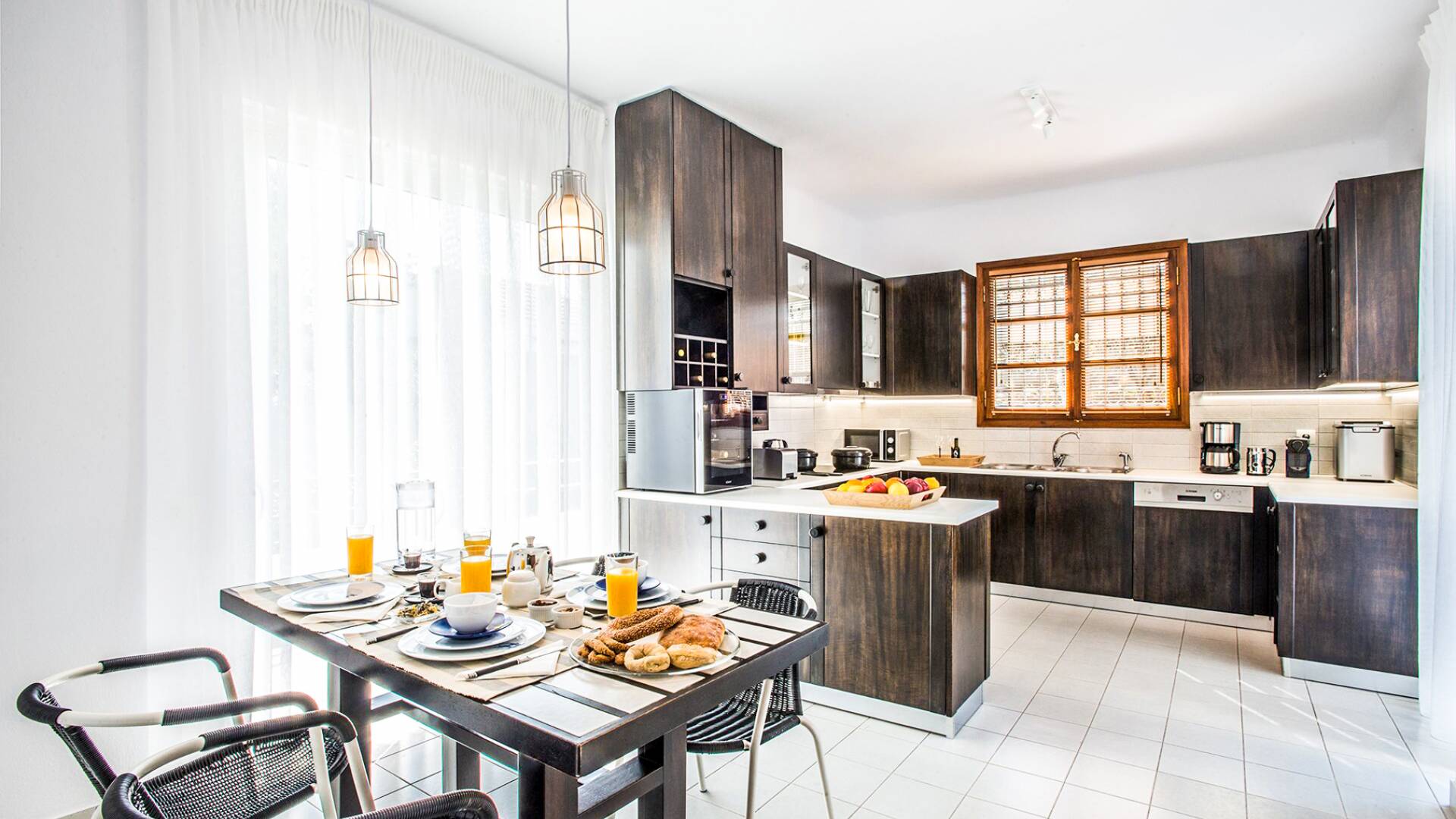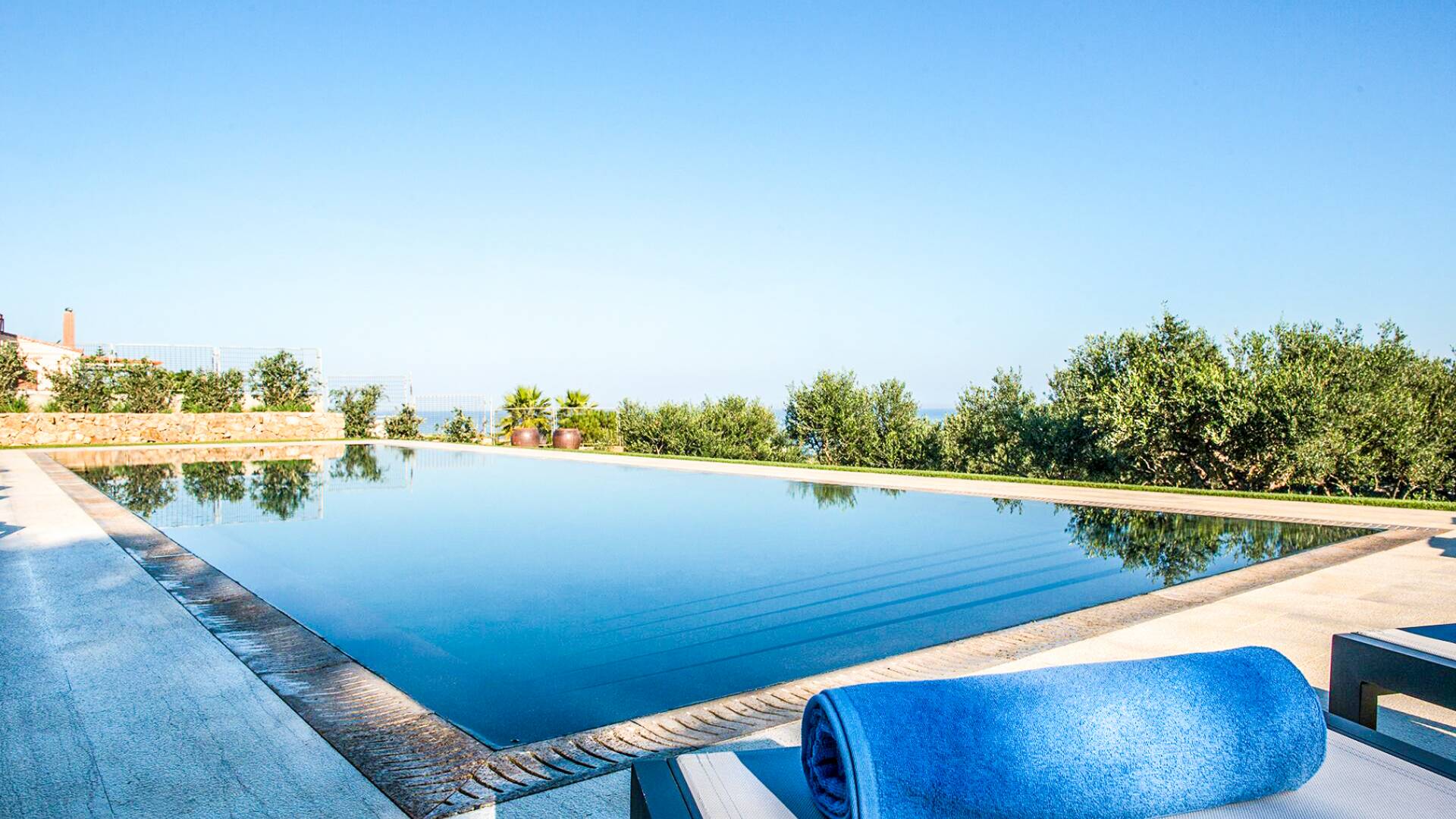 Villa Verdea Chania besteht aus zwei Etagen, von denen jede ein eigenes, unabhängiges Gästehaus mit 3 verschiedenen Eingängen zur Förderung der Privatsphäre beherbergt und letztendlich 7 Schlafzimmer und 4 Badezimmer bietet. Beide Ebenen verfügen über große, offene Wohnbereiche mit Kamin und Essbereich; Es gibt drei Wohnbereiche. Jede Etage verfügt über eine eigene voll ausgestattete Küche und zwei Badezimmer. Von allen Zimmern und Wohnbereichen besteht zudem ein direkter Zugang entweder zum Garten oder zu den Terrassen. Darüber hinaus gibt es zahlreiche Balkone und private Terrassen, hohe Decken, luftige Räume und helle, komfortable Küchen mit direktem Zugang sowohl zum Innen- als auch zum Außenbereich. Die Trennung der einzelnen Bereiche wurde bewusst vorgenommen, um den Gästen absolute Privatsphäre zu gewährleisten. Seine praktische Aufteilung macht den Sommer angenehmer und unterhaltsamer, während der beheizte Salzwasserpool (14,40 x 4,10) Kinder und Erwachsene gleichermaßen anzieht. Sie können von den Terrassen aus zwischen Meer- und Gartenblick wählen, was eine passende Kulisse für den Pool bietet, kombiniert mit der idealen Atmosphäre der umliegenden Landschaft. Direkt neben dem Schwimmbad gibt es einen mit Pergola überdachten Bereich, so dass 14 Personen draußen speisen können. Es gibt auch einen Grill und ausreichend Platz zum Parken.