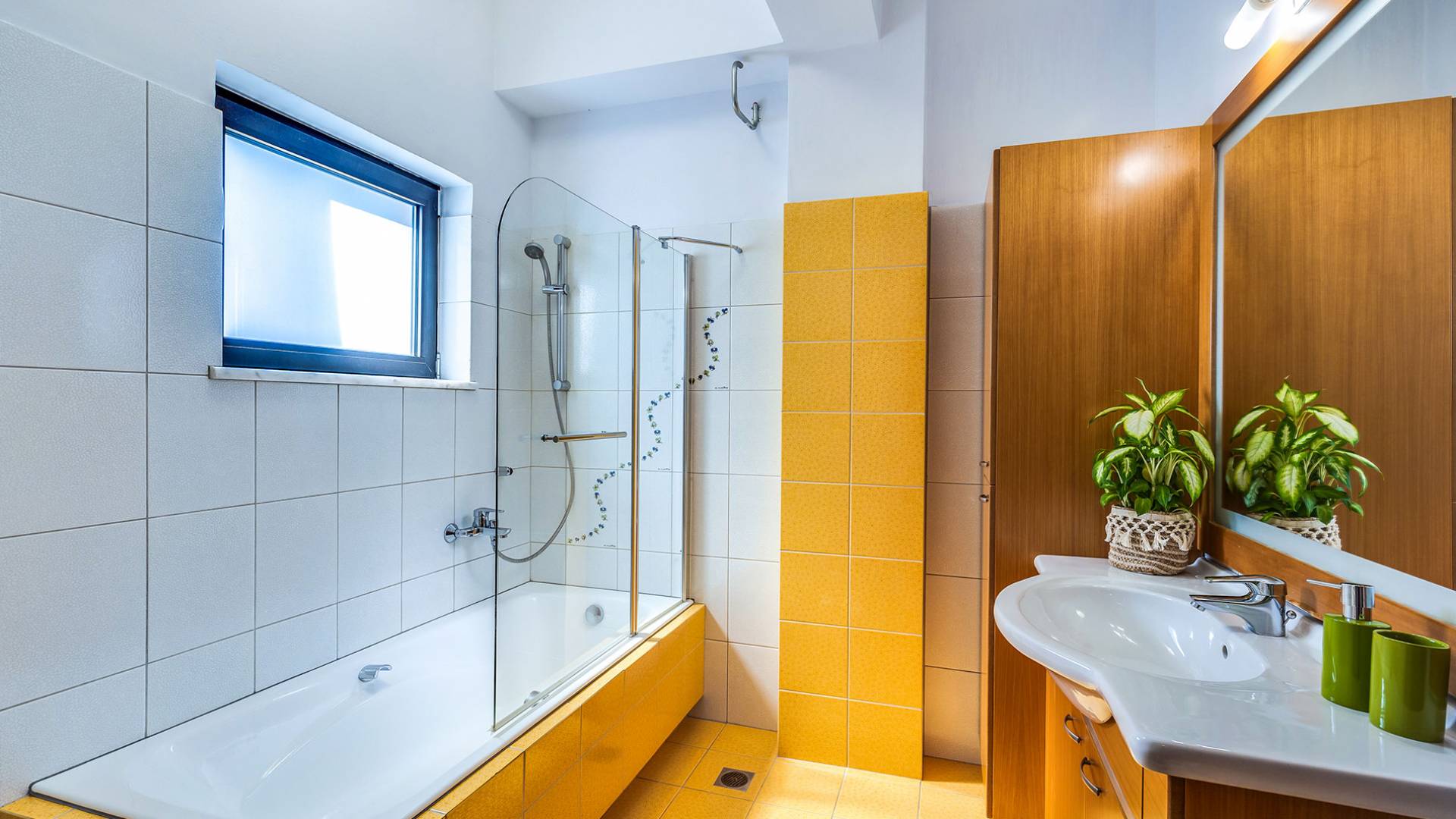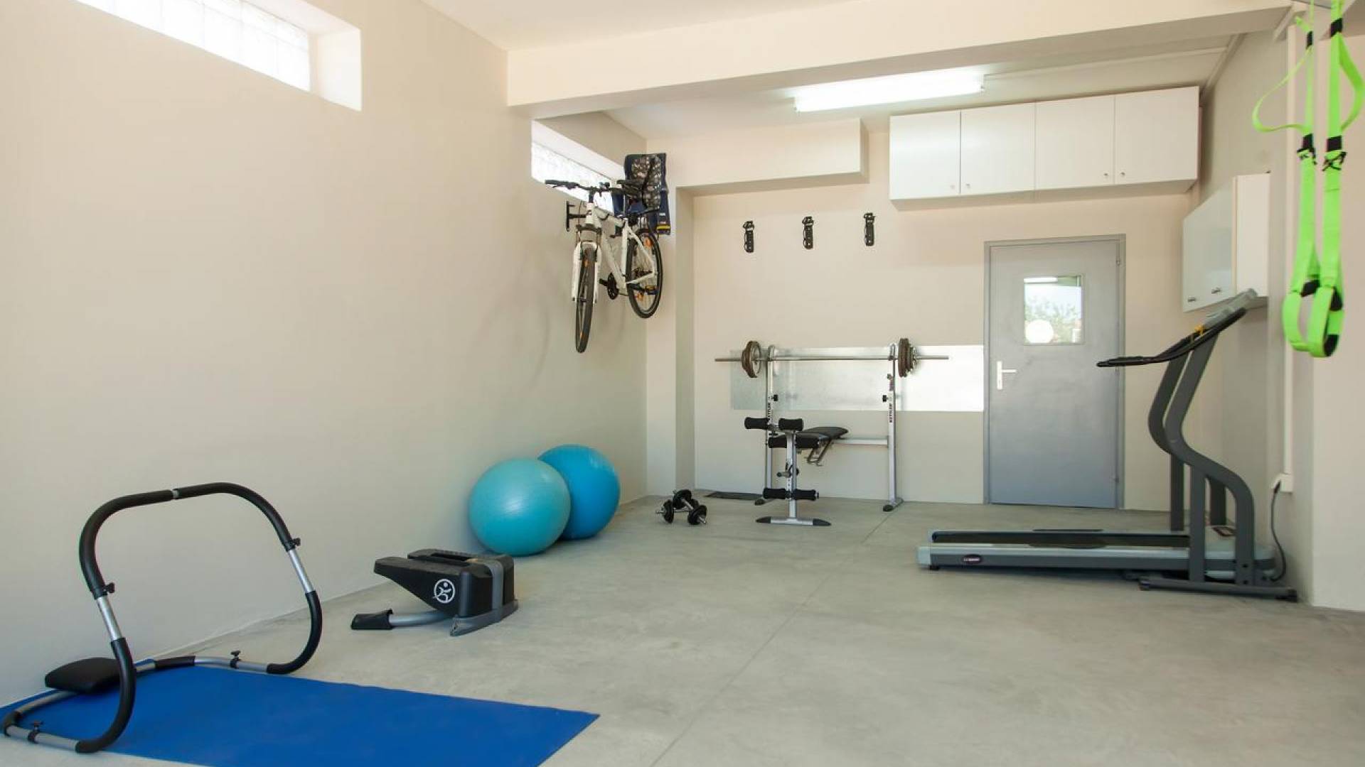 Eine Treppe im Erdgeschoss führt Sie in die untere Etage. Auf dieser Etage befindet sich ein Fitnessraum und ein Spielzimmer, das mit dem Hinterhof der Villa verbunden ist, wo sich ein Grillplatz, ein Essbereich im Freien unter der Pergola, ein Spielplatz für kleine Kinder und ein Basketballnetz befinden. Unser Fitnessstudio verfügt über eine große Auswahl an Fitnessgeräten wie Laufband, Bauchmuskelgeräten, Gymnastikbällen und Bankdrücken. Der Spielzimmerbereich verfügt über einen 50-Zoll-HD-TV, Playstation 3 mit Spielen und Tischtennis.