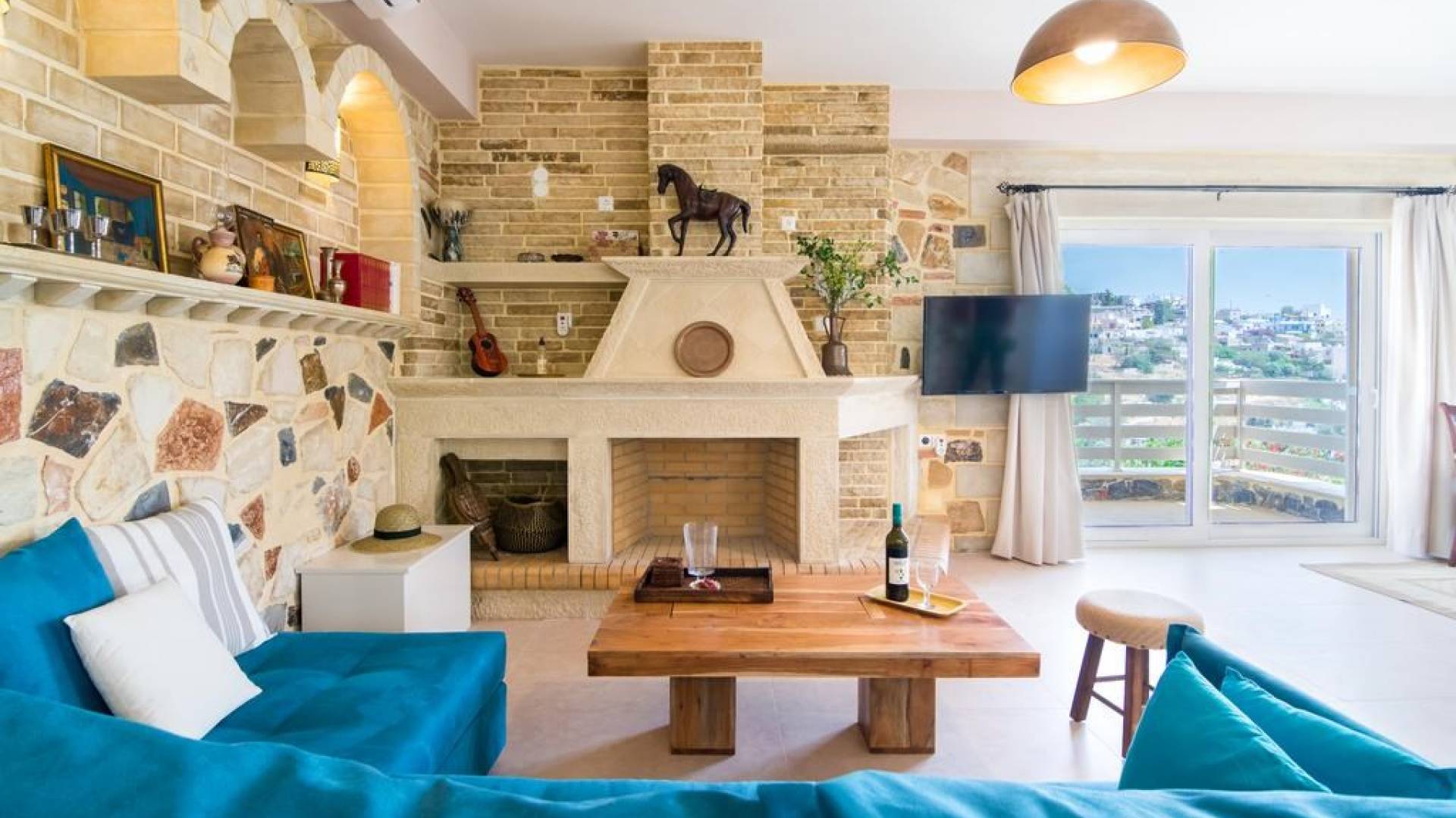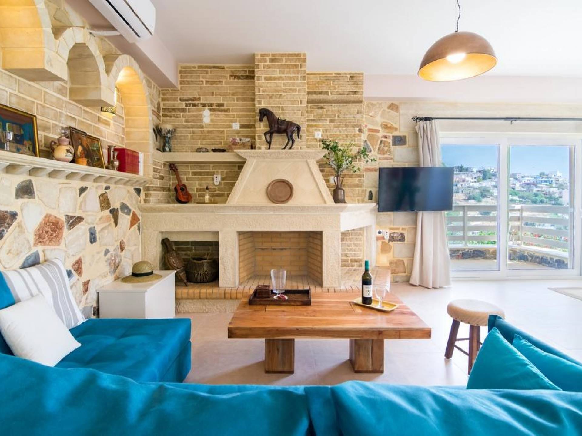 Efrosini Villa bei Anesis Family Villas Kreta ist eine Luxusvilla mit 2 Schlafzimmern. Die Villa Efrosini bietet ein entspannendes Wohn- und Esszimmer, eine voll ausgestattete Küche und einen Kamin. Außerdem geräumige Doppelzimmer und große Badezimmer Genießen Sie die herrliche Aussicht auf die Umgebung und das Libysche Meer.