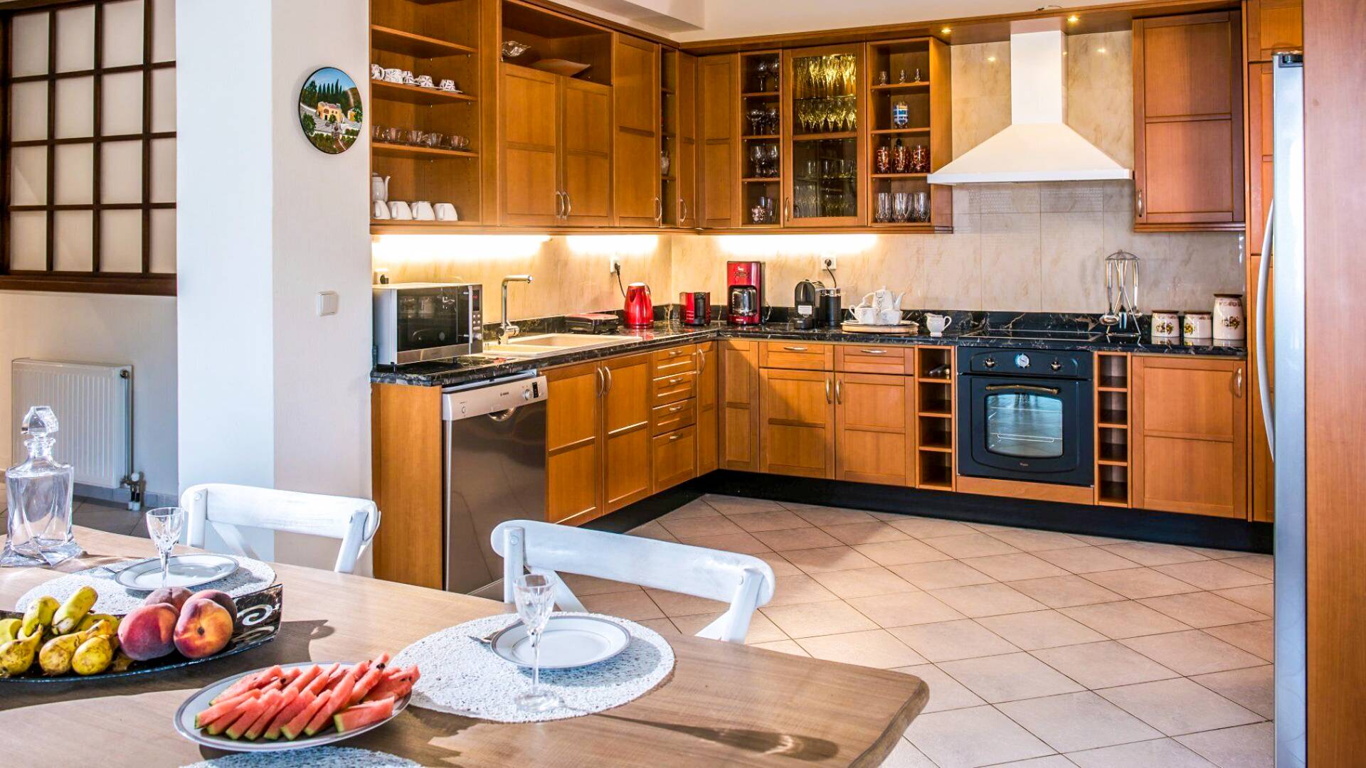 In der Artemis Villa Crete finden Sie 2 voll ausgestattete Küchenbereiche auf verschiedenen Etagen, die es bequem machen, bis zu 10 Personen zu verpflegen. Die geräumigen Wohnbereiche sind elegant eingerichtet und bieten einen atemberaubenden Blick auf das Meer. Die Schlafzimmer sind wunderschön eingerichtet, verfügen über alle notwendigen Einrichtungen und Sie können sich entspannen, während Sie die atemberaubende Aussicht auf das Meer und die Umgebung genießen.