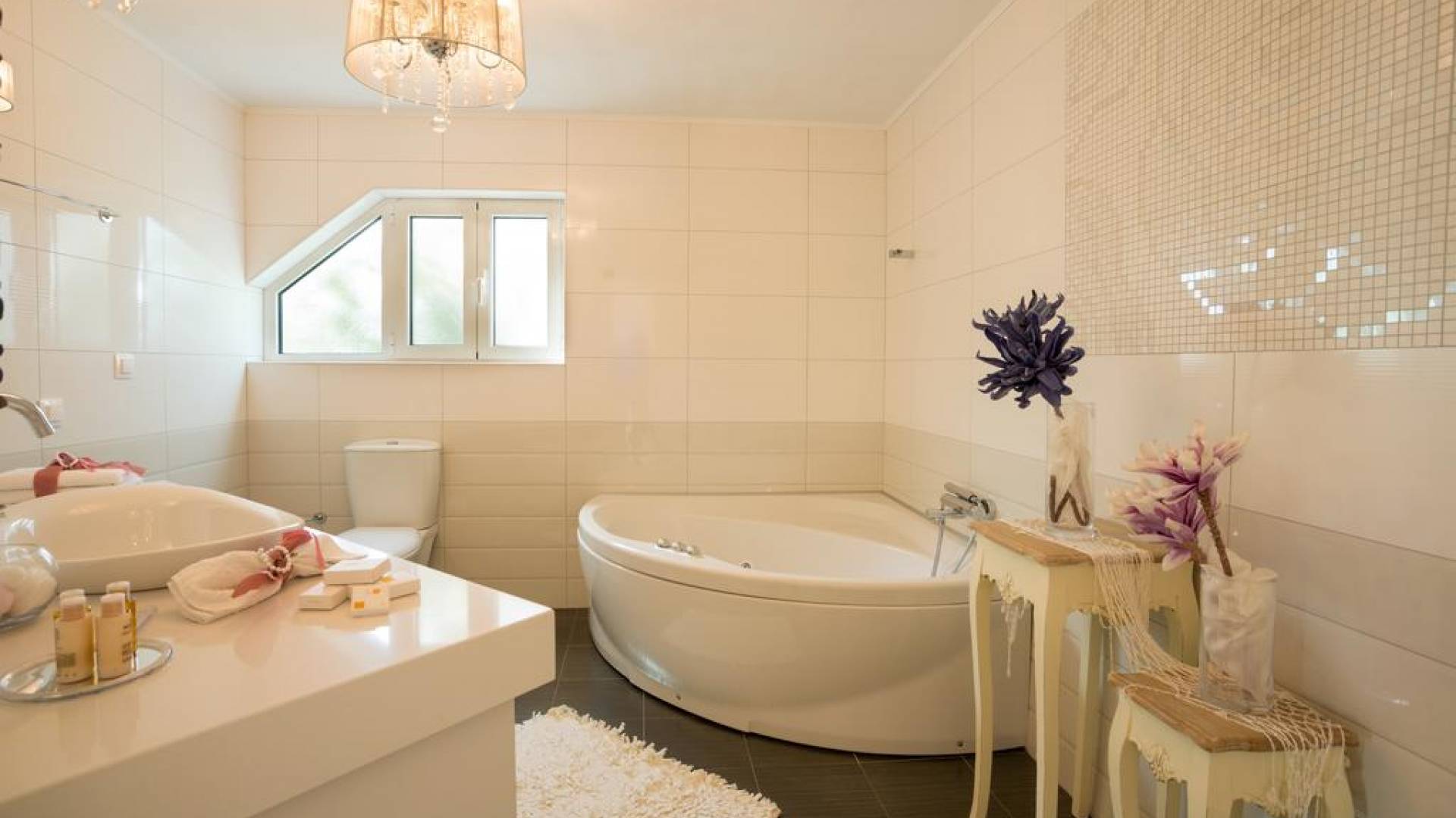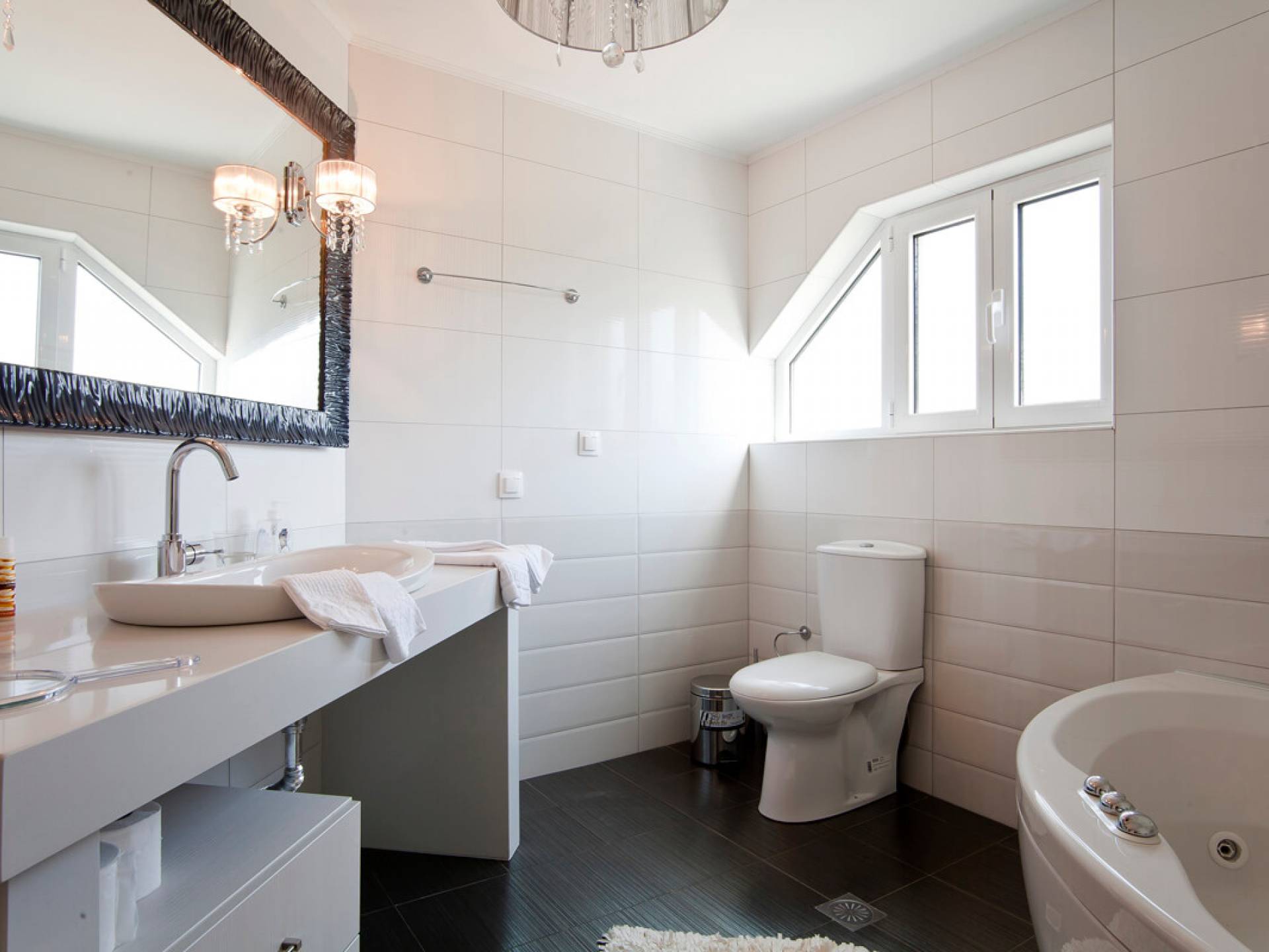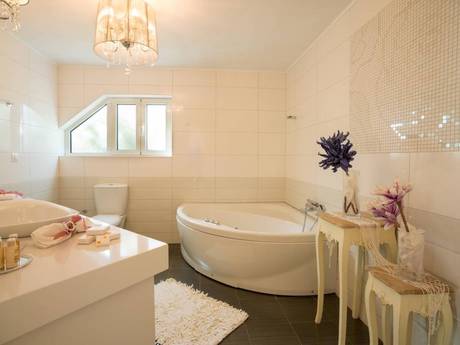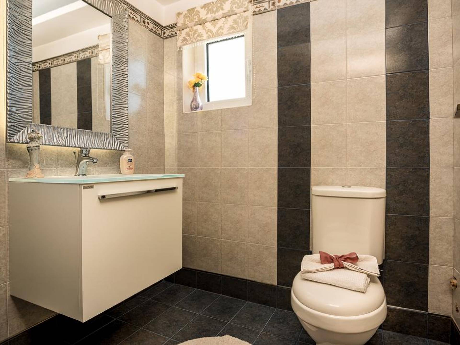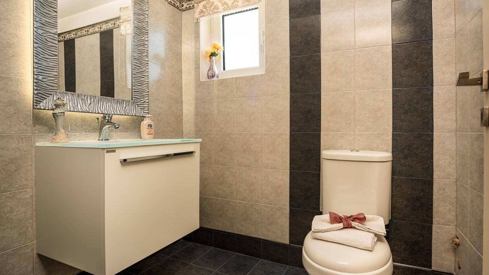 Es gibt ein Gäste-WC und einen Balkon mit Blick auf den Hintergarten der Villa. Im 1. Stock befinden sich 4 sehr geräumige Zimmer mit Doppelbetten, WC, TV, Ankleidezimmer und Balkon mit fantastischem Blick auf Berge und Meer. Auf derselben Etage gibt es einen modernen und organisierten Bereich mit einer Waschmaschine und einem Trockner. Gegenüber liegt ein privater Pool, Rasen und zahlreiche Pflanzen, wo man sitzen und ein Getränk und ein Bad genießen kann. Für mehr Komfort stehen ein Außen-WC und eine Außendusche zur Verfügung.
